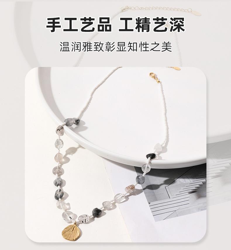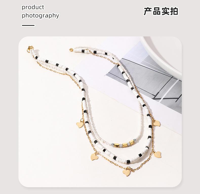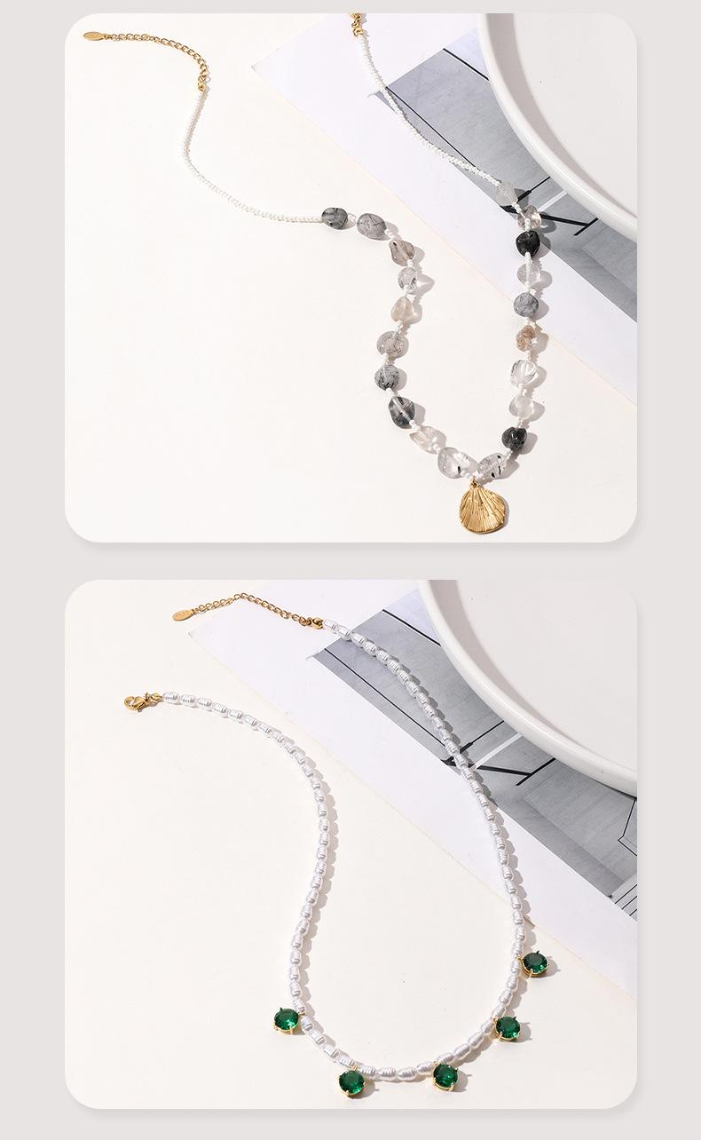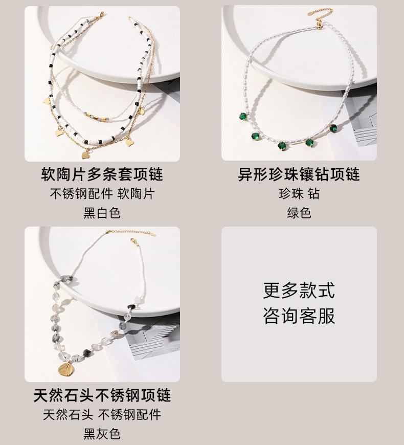Natural stone stainless steel necklace, Special shaped pearl and diamond necklace, Stainless steel soft clay multi-piece necklace