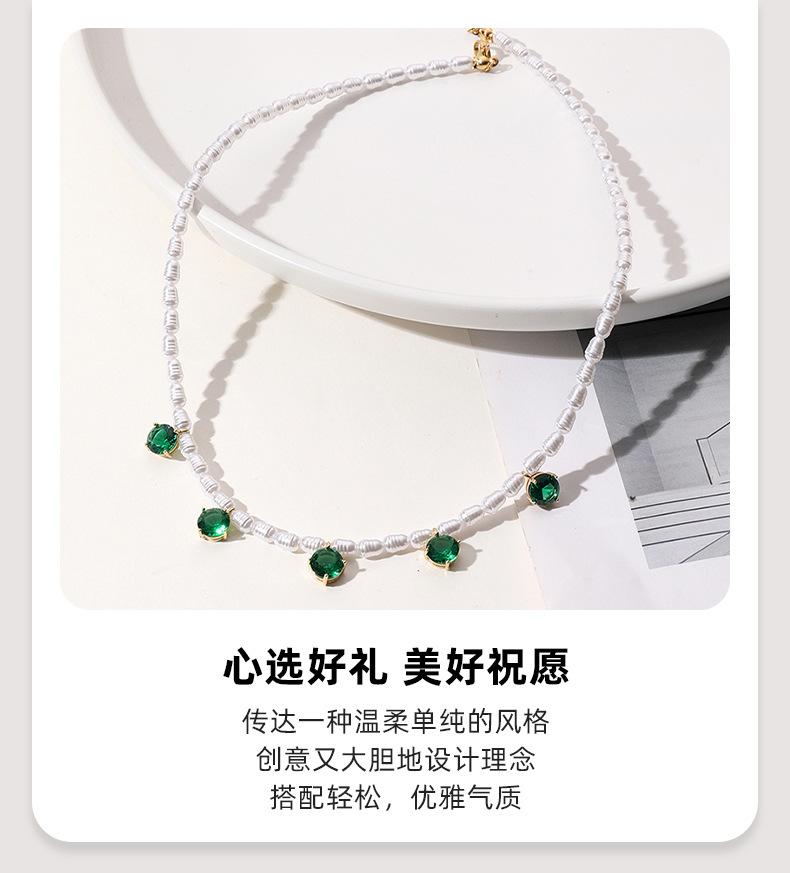 Fabricante de Joyería Transfronteriza Personalizada Collar de Piedra Natural Estilo Frío Cadena Clavicular de Perla Francesa Diamante Cadena para Suéter