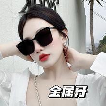 Lentes de sol verticales de ojo de gato para mujer, dientes de metal, versión coreana, montura cuadrada, lentes de sol de montura grande para hombres y mujeres, mismo estilo, anti-ultravioleta, de alta gama |
