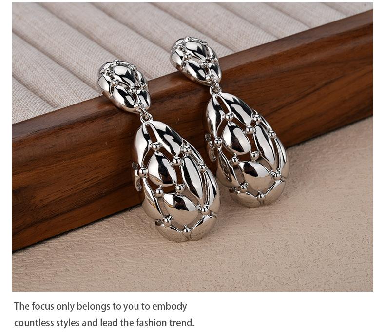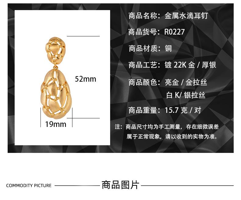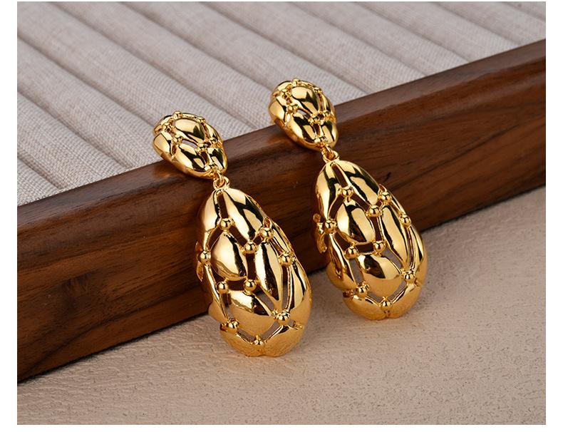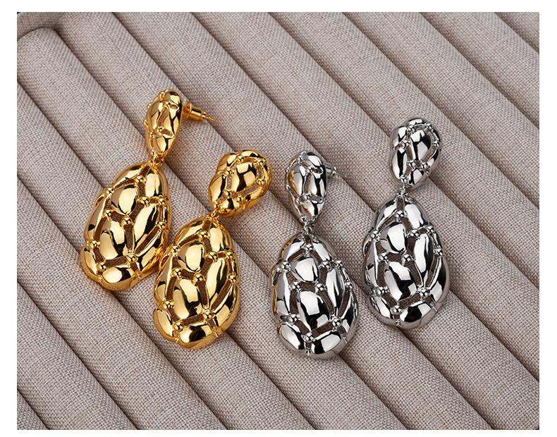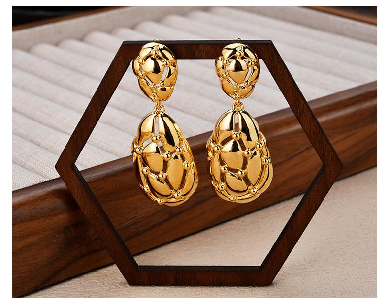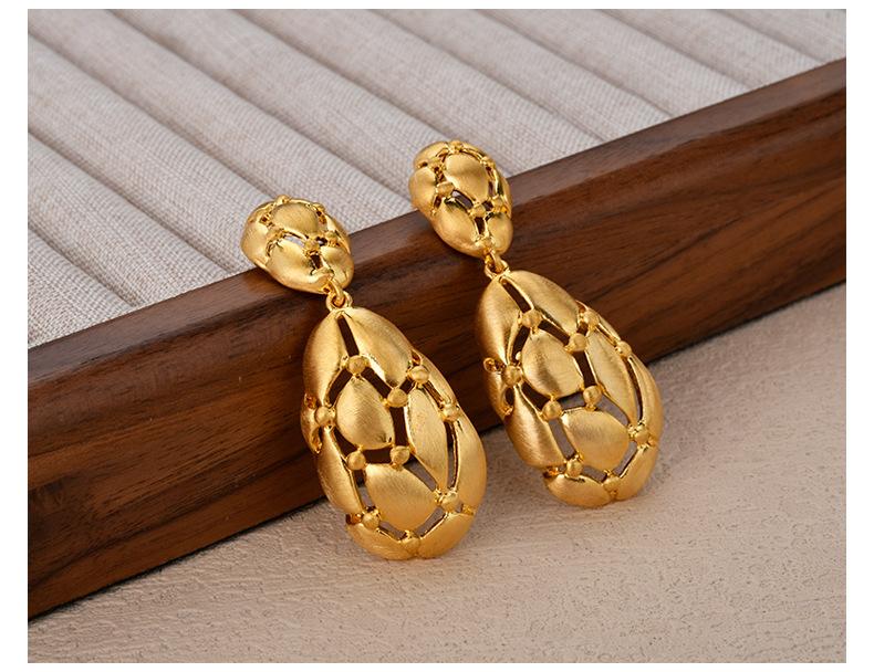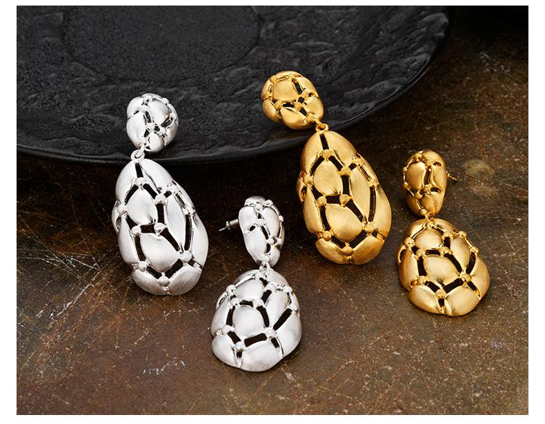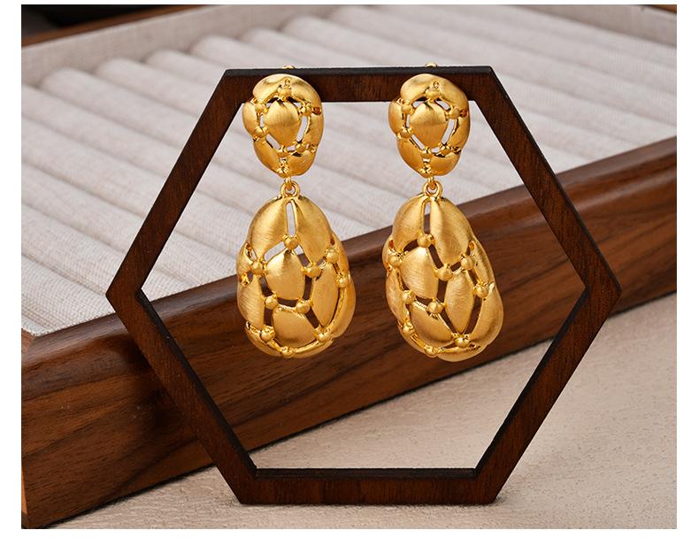 Aretes huecos vintage cepillados dorados europeos y americanos diseño de nicho personalidad en forma de gota exagerados transfronterizos aretes aretes mujer