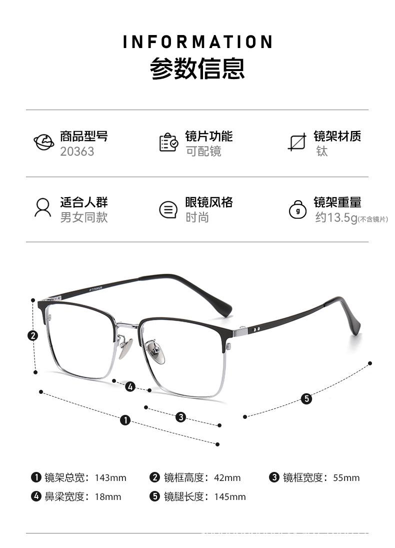 2025 Nuevos Lentes Danyang Retro Medio Titanio Marco Línea Ceja Moda Trendy Look Adelgazante Marco de Lentes Miopía Hombres 20363