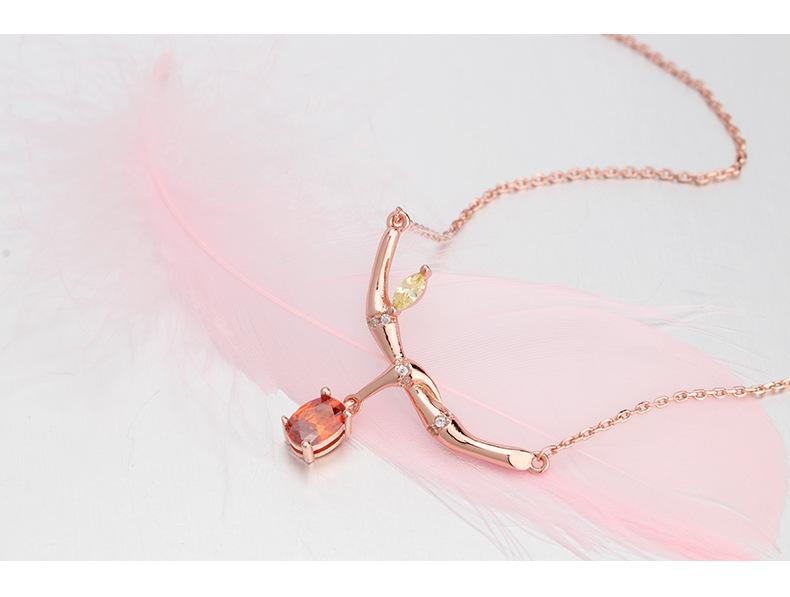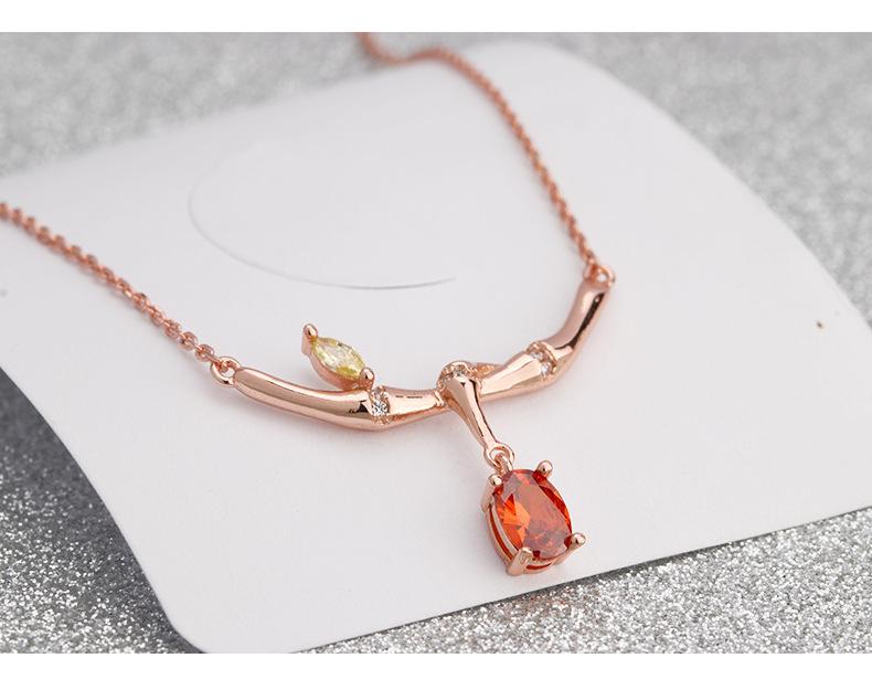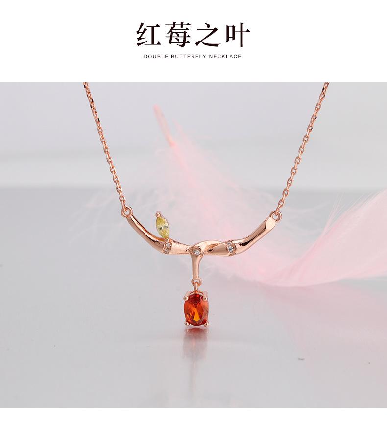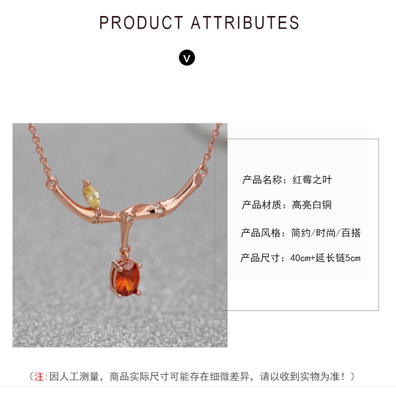 Collar de Hoja de Frambuesa para Mujer Cadena Corta de Clavícula de Celebridad de Internet Moda Elegante Colgante de Diamante Rojo Collar de Hoja Fresca Estilo Coreano