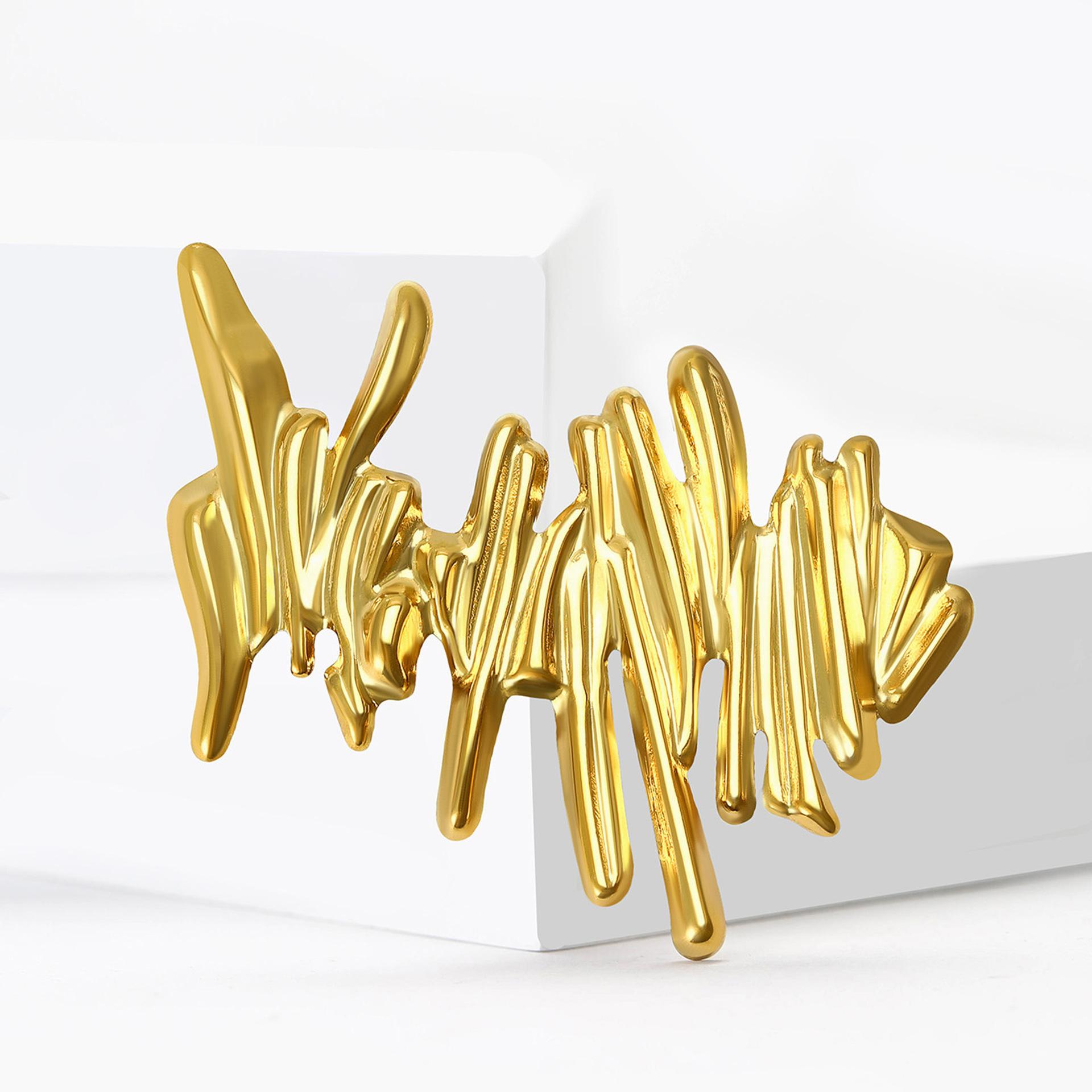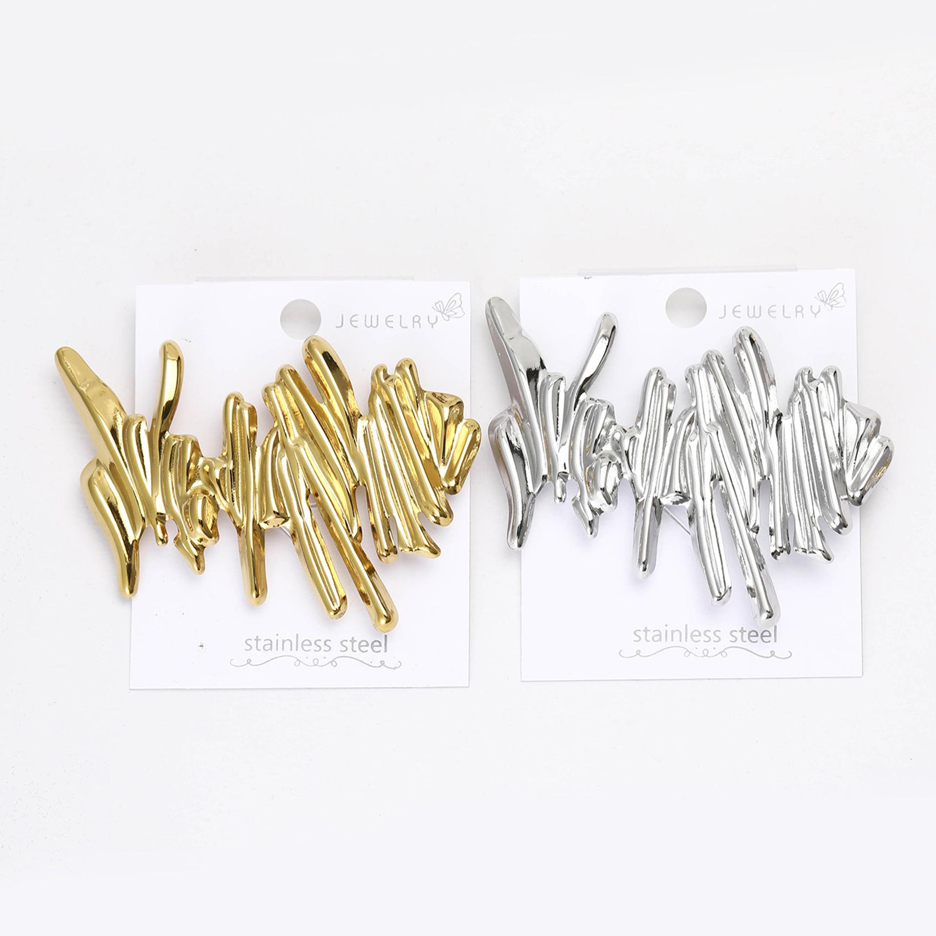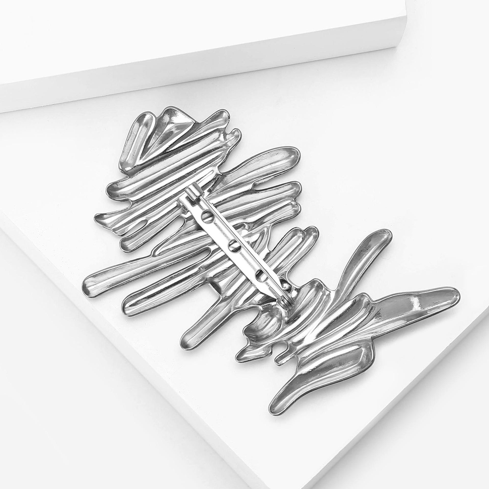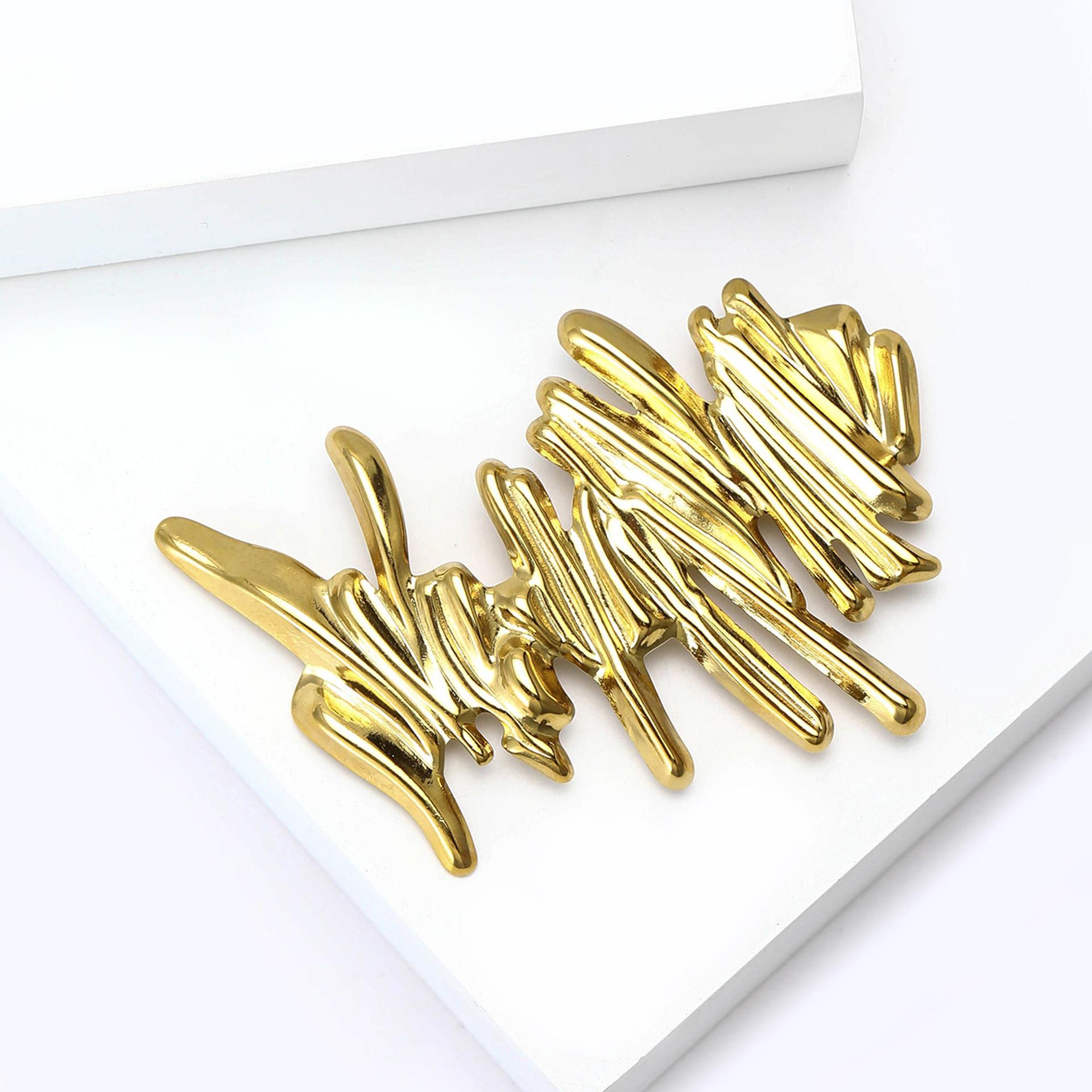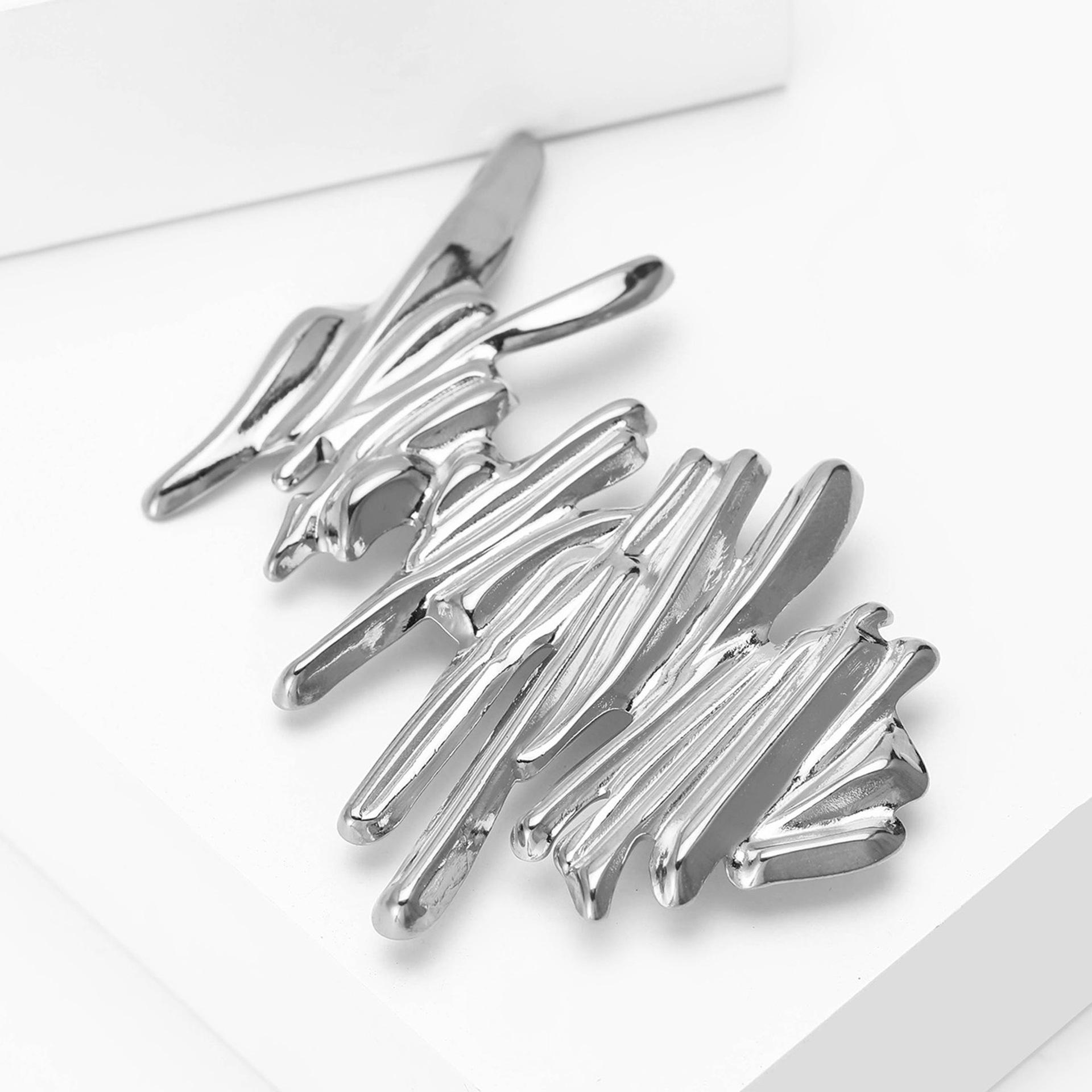 Nuevo Estilo Personalizado Simple Acero Inoxidable Textura de Pliegue Ondulado Sentido del Diseño Broche Corsage Pin Joyería Broche con Forma Especial