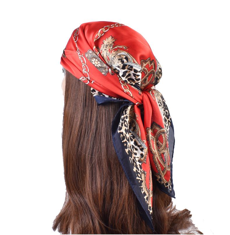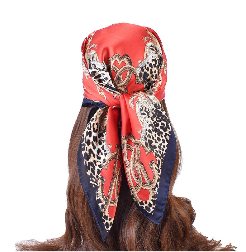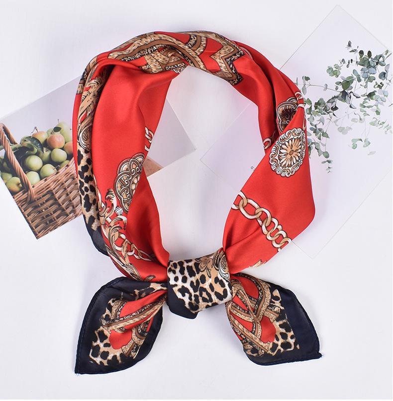 Primavera y Verano Nuevo Popular Patrón de Cadena Estampado Imitación Seda Bufanda 70 Bufanda Cuadrada Venta al por Mayor Suministro Transfronterizo