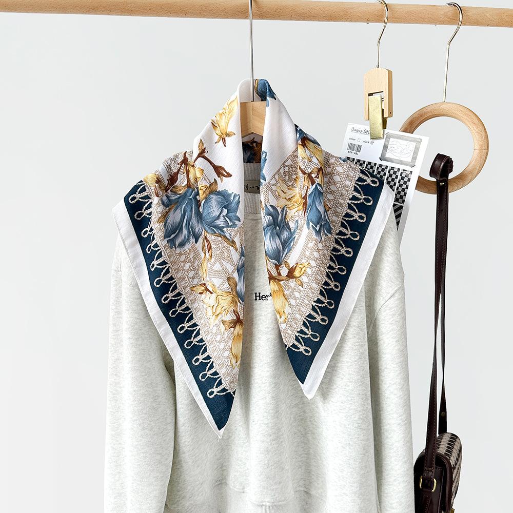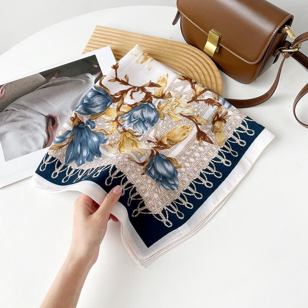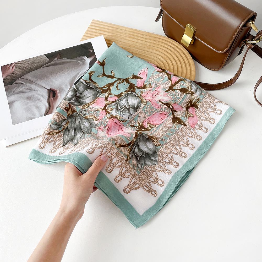 Bufanda Cuadrada Estilo Étnico Primavera y Otoño Bufanda de Seda Estampada a Doble Cara 65cm Bufanda Chal con Pañuelo Decorativo Bufanda Cuadrada para Mujer