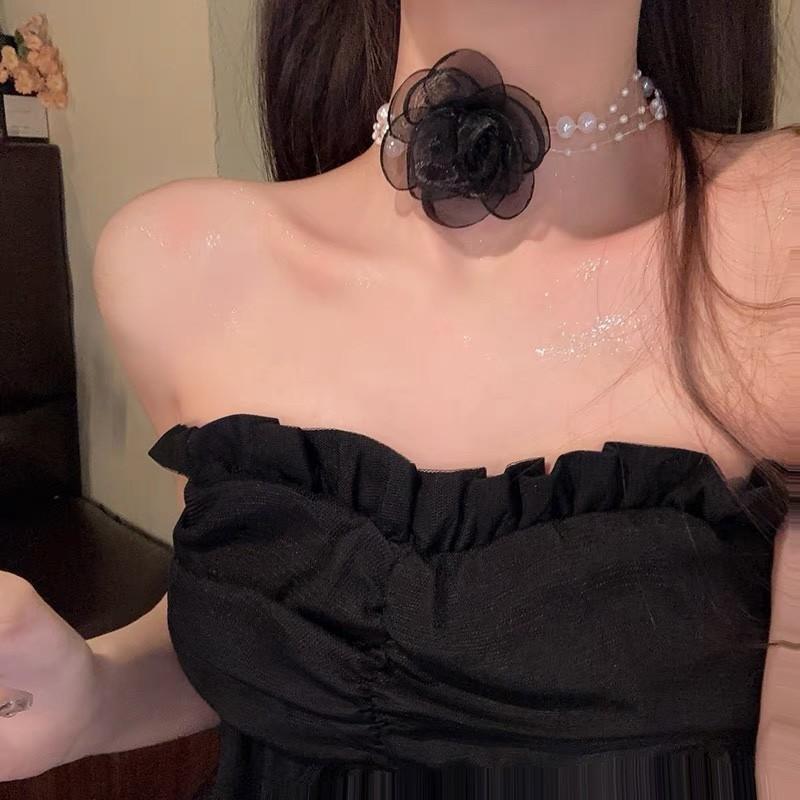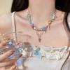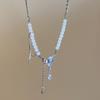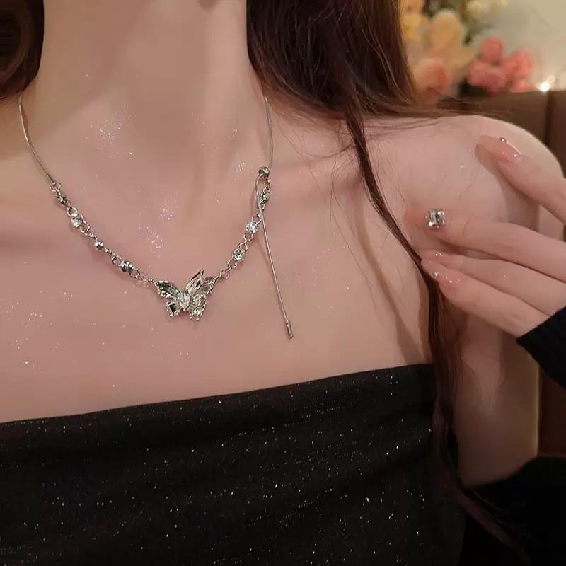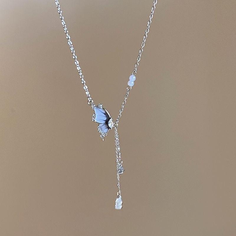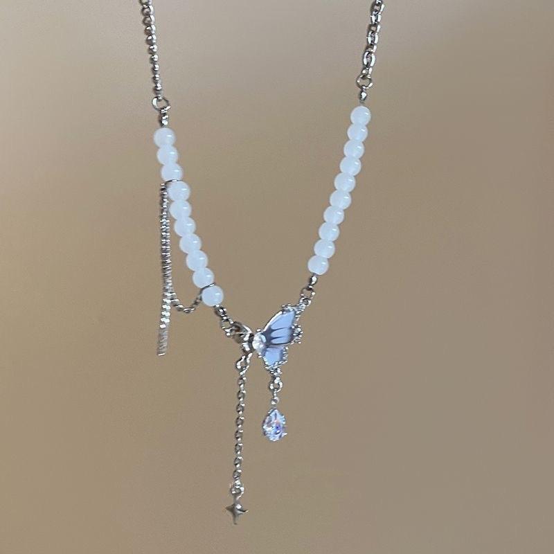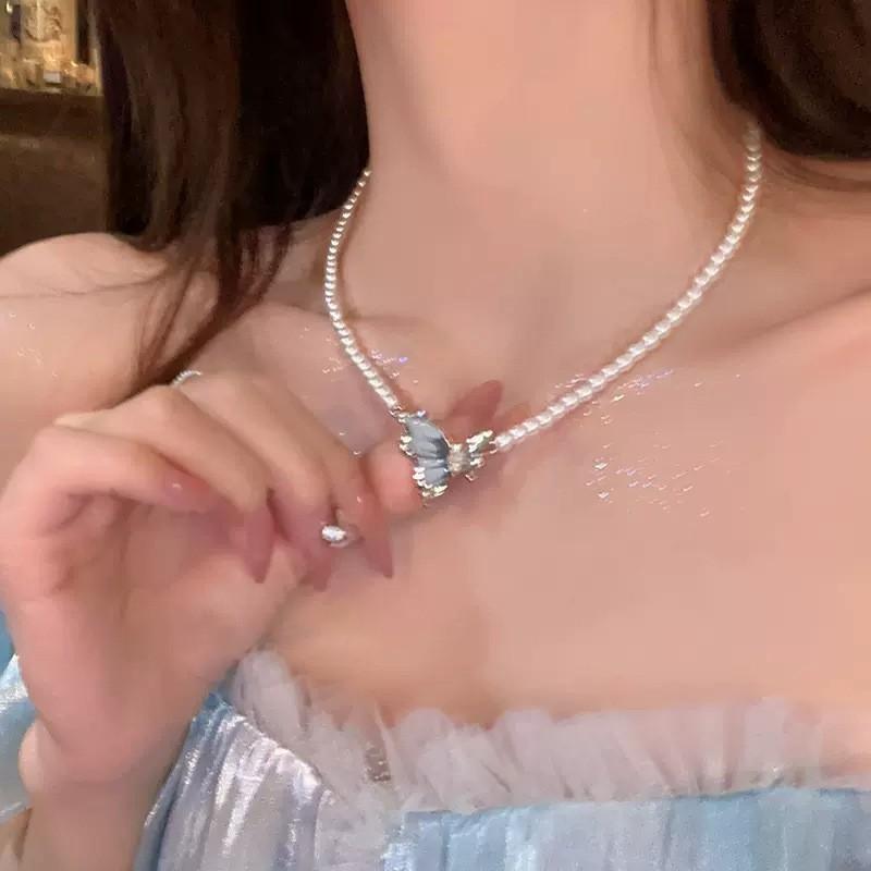 Single gray pearl zircon necklace, Single silver pearl zircon necklace, Black butterfly necklace, Opal pearl n...