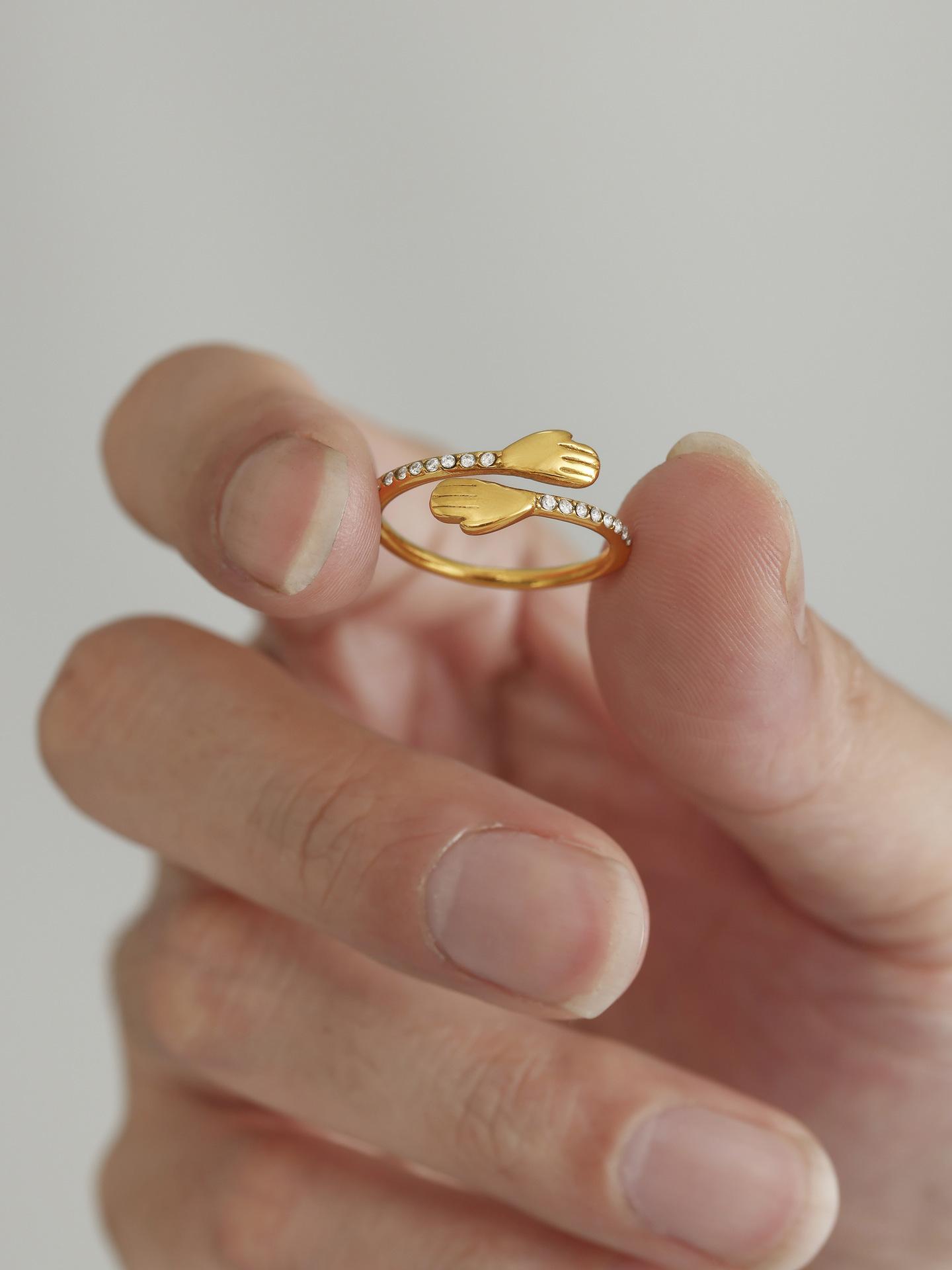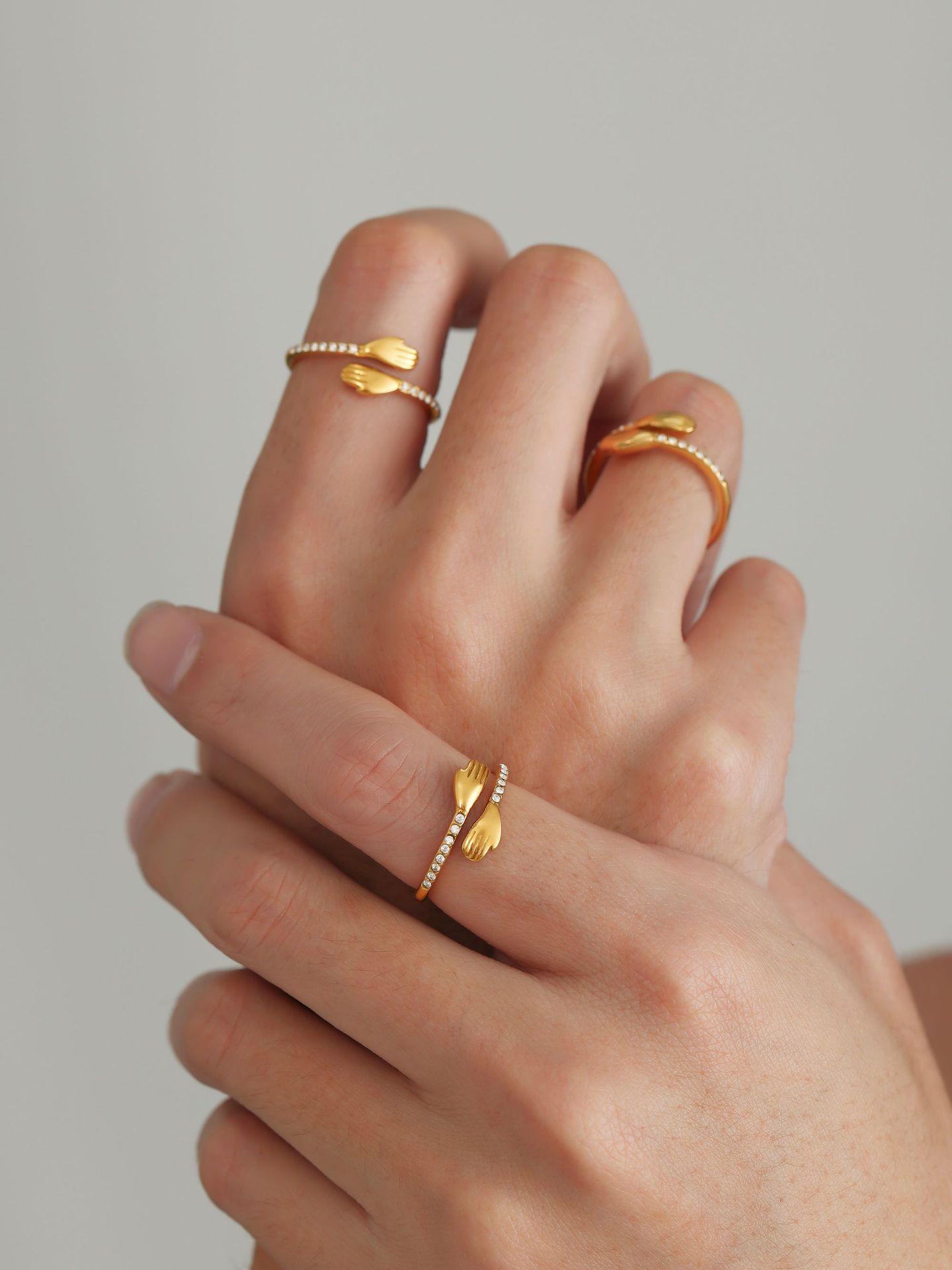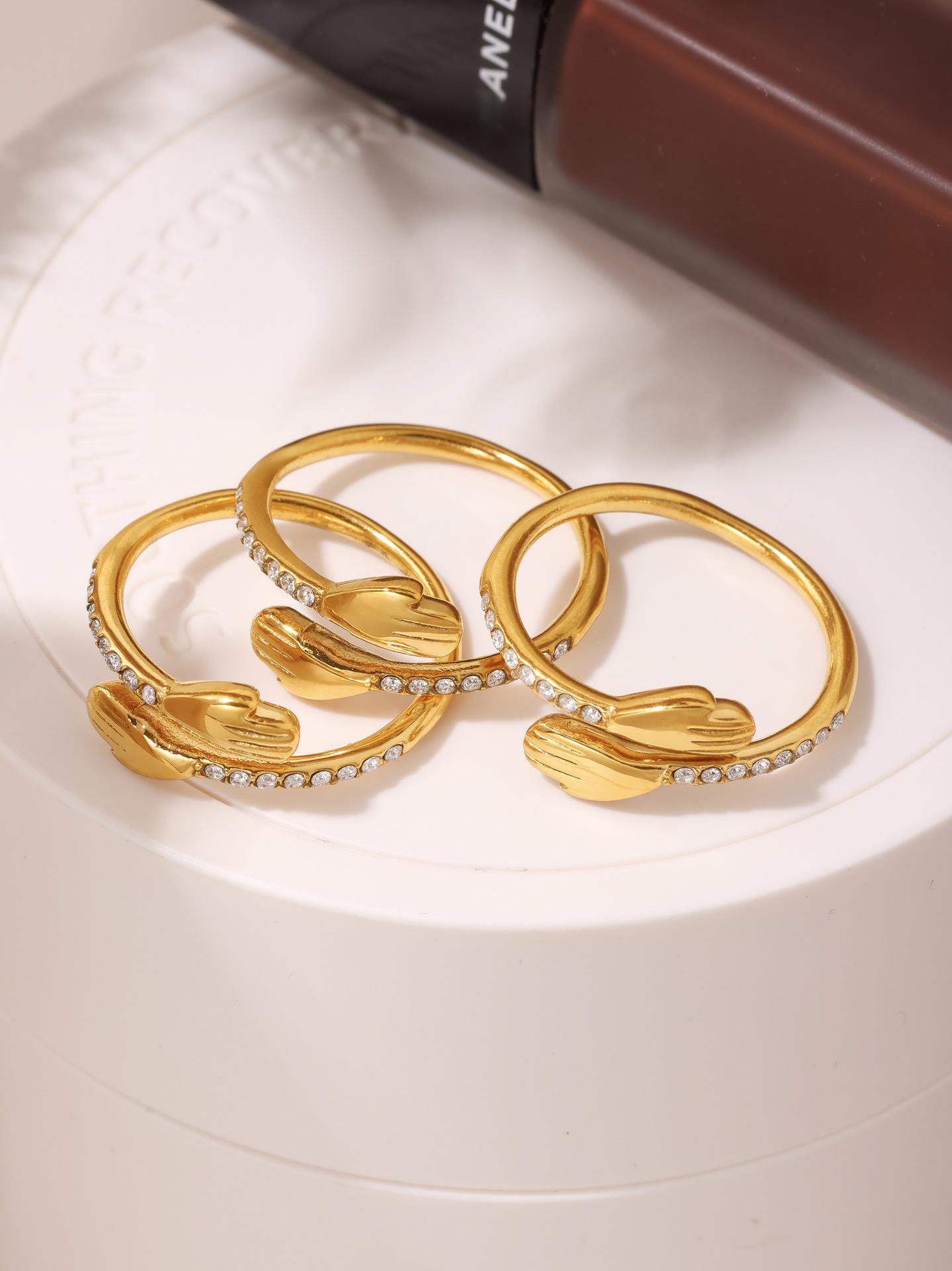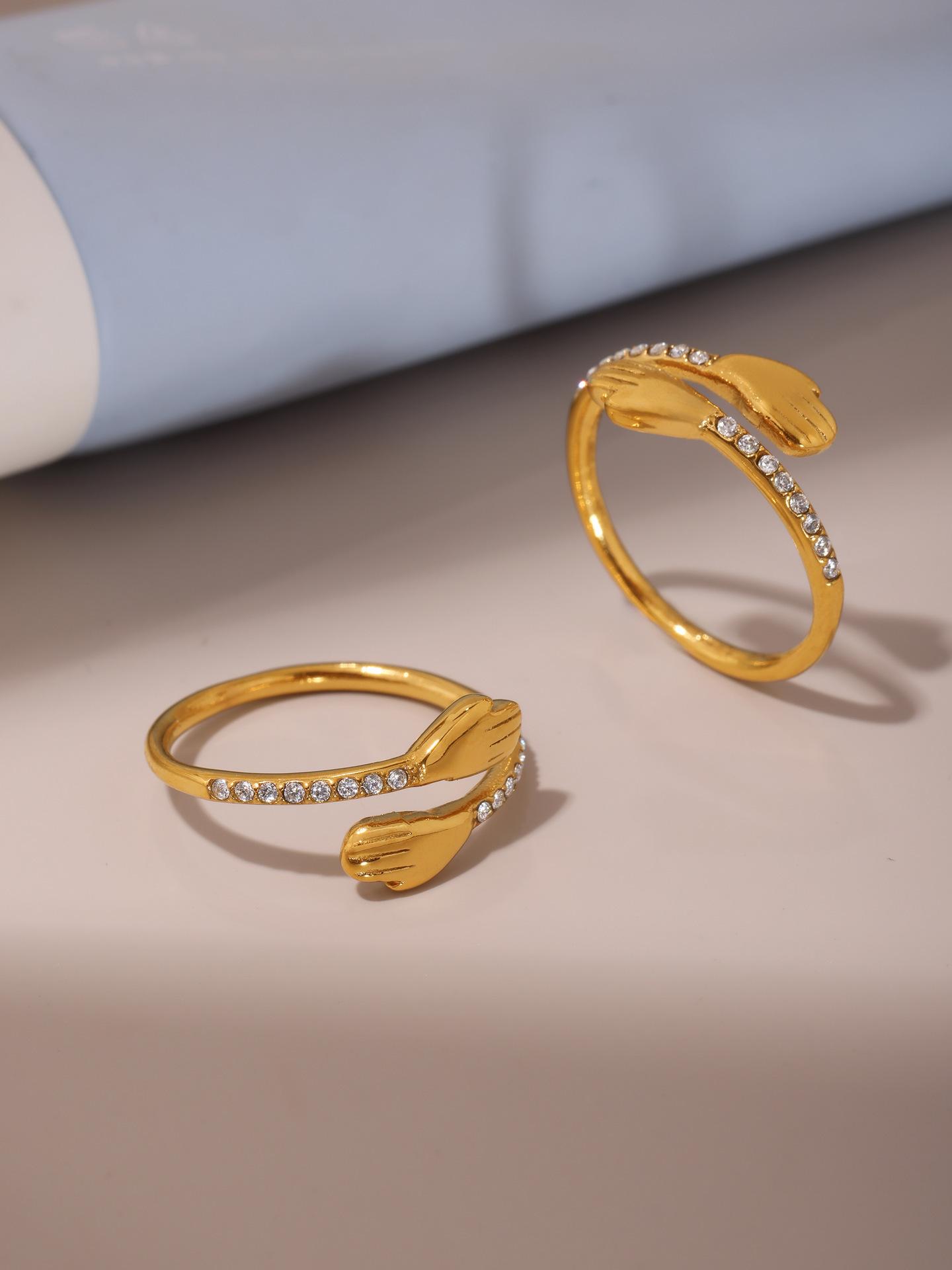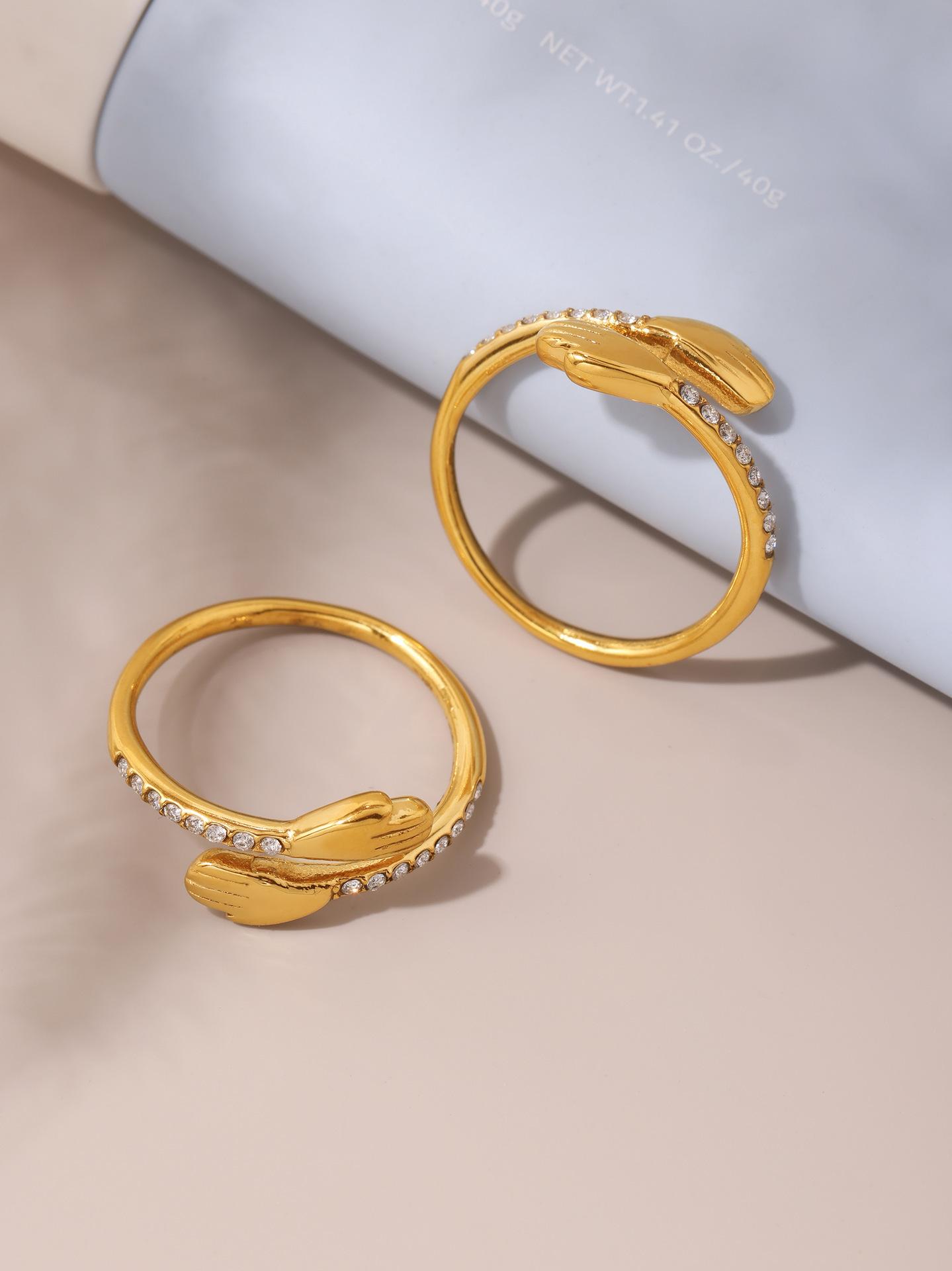 Anillo Xinyixin Abrazo de Amor Zirconia Estilo Europeo y Americano Diseño Simple Anillo Abierto Acero Inoxidable Chapado en Oro Joyería