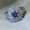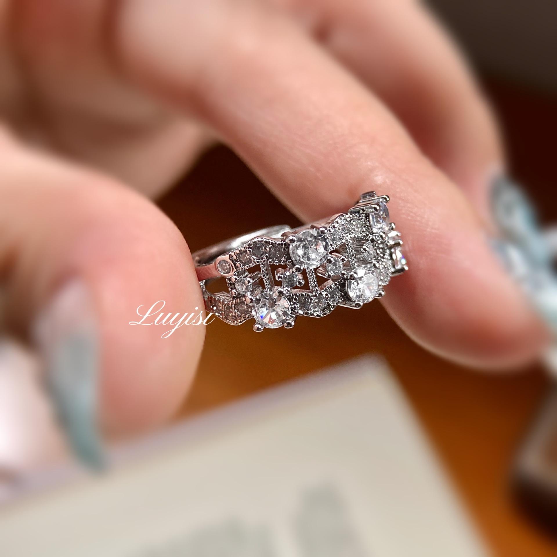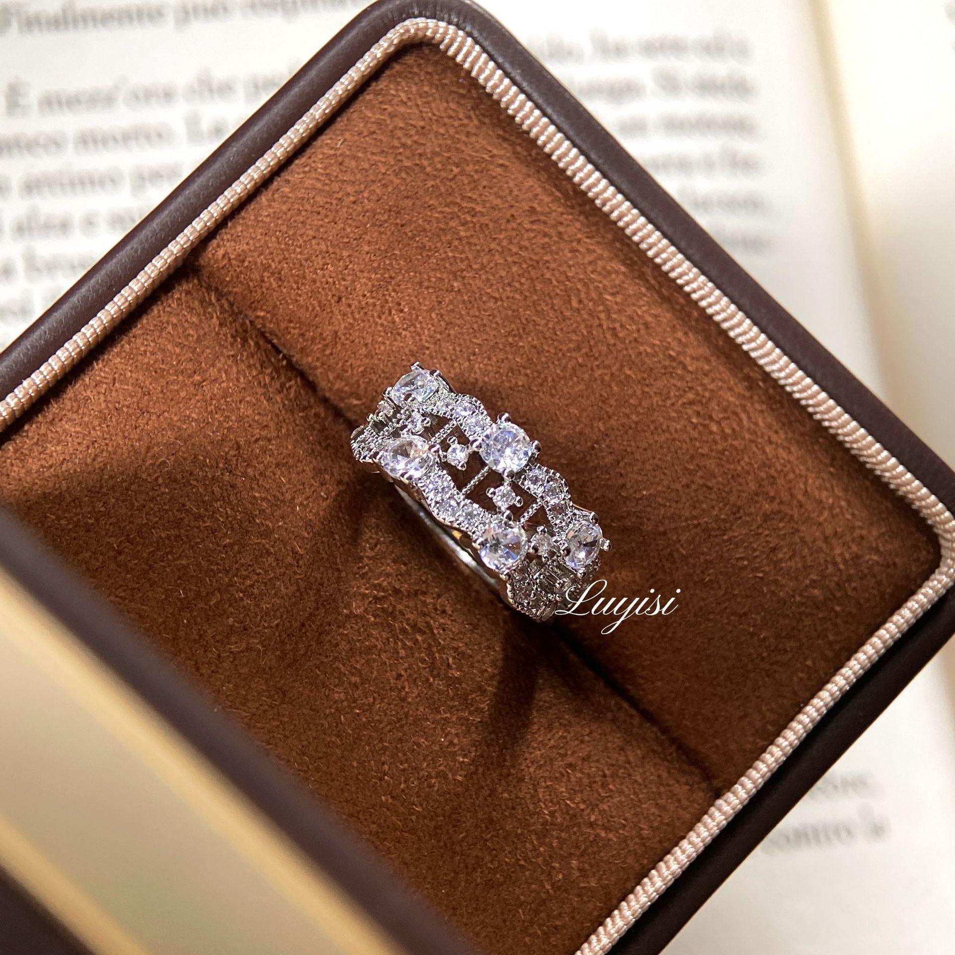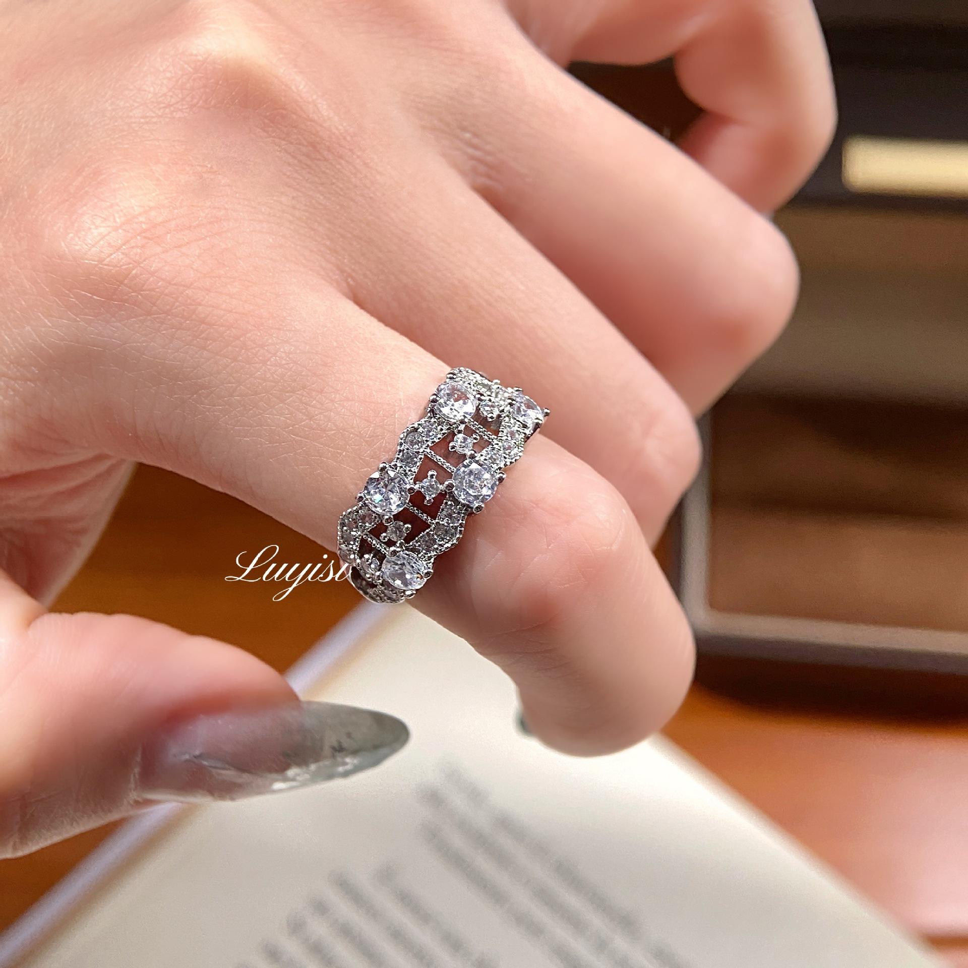 Anillo de fila de encaje de arpa de circón transfronterizo europeo y americano con diamantes completos, lujo ligero de alta gama, simple, versátil, hueco, con diamantes para mujer