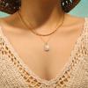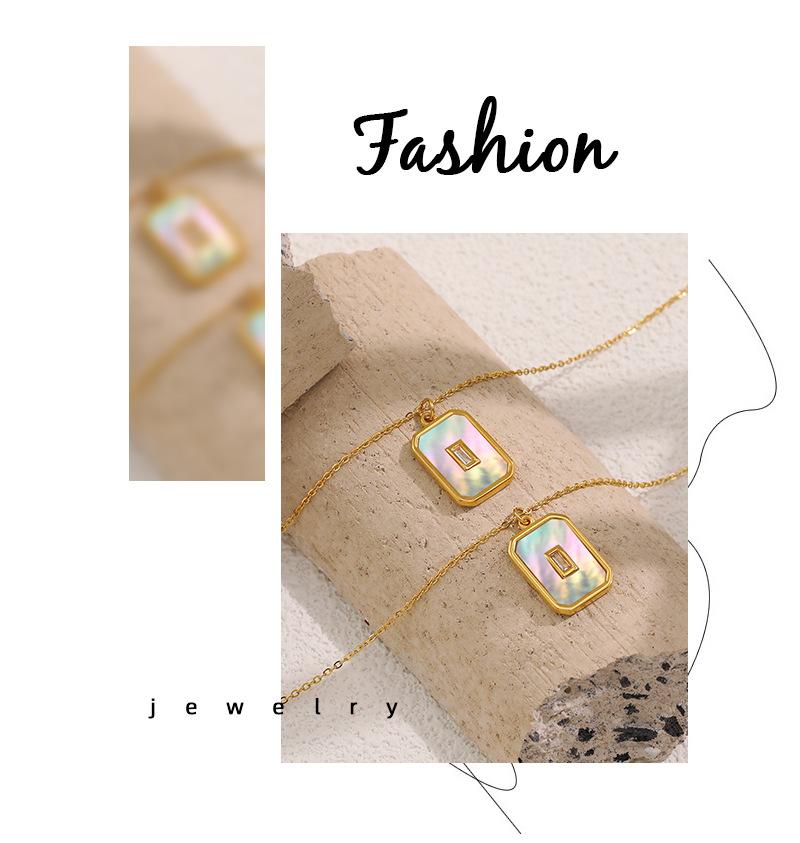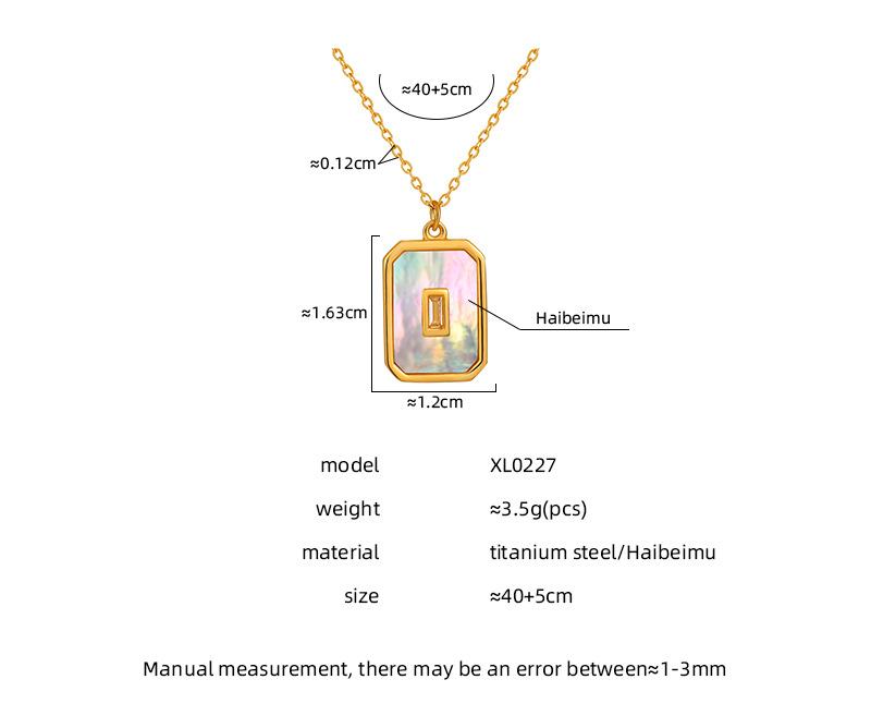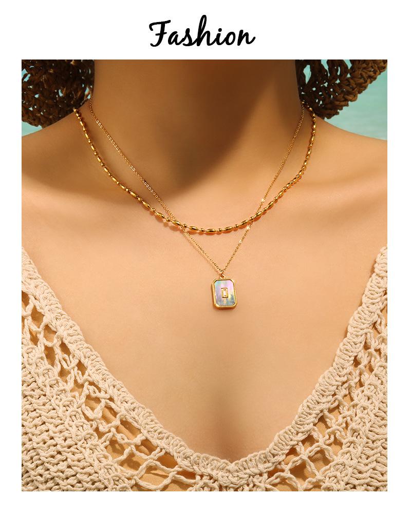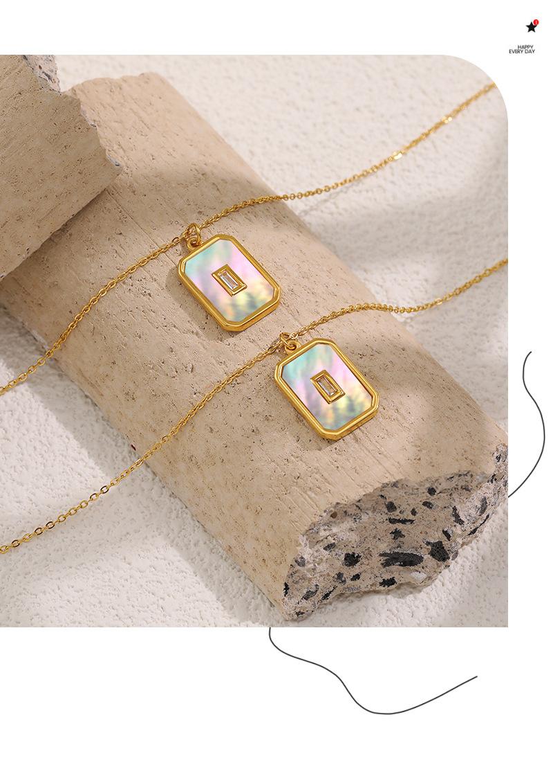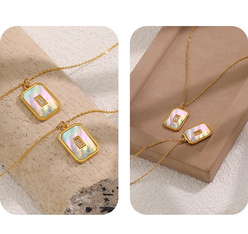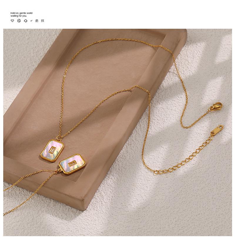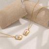 Collar con colgante cuadrado retro de nácar blanco estilo Ins europeo y americano para exportación, cadena de clavícula de moda de acero de titanio chapado en oro