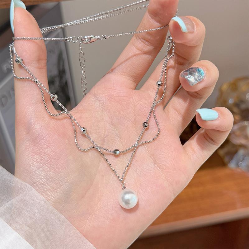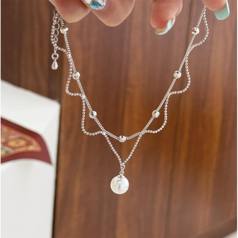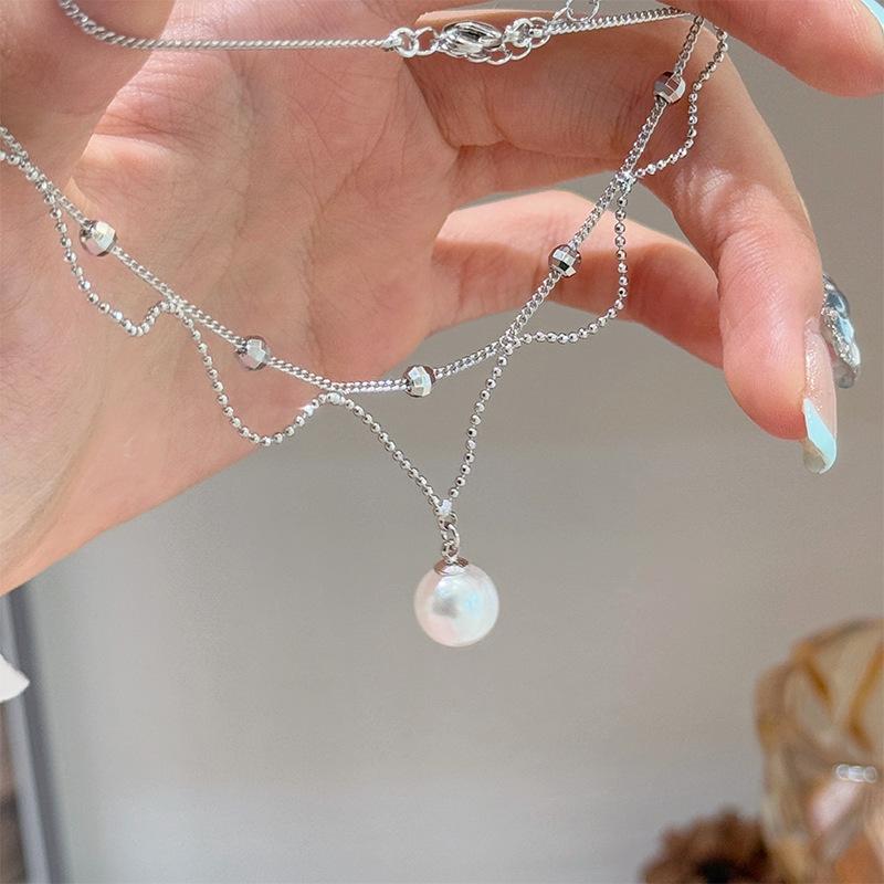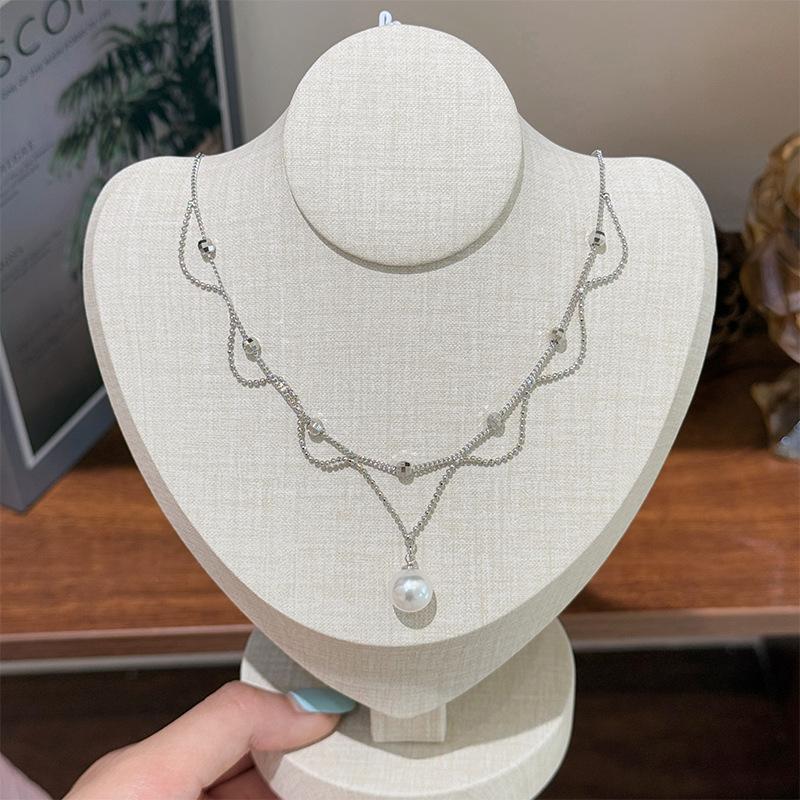 Moda Estilo Palacio Retro Exquisito Temperamento Versátil Collar con Colgante de Perlas Lujo Ligero Nicho Cadena Clavicular de Alta Gama para Mujeres