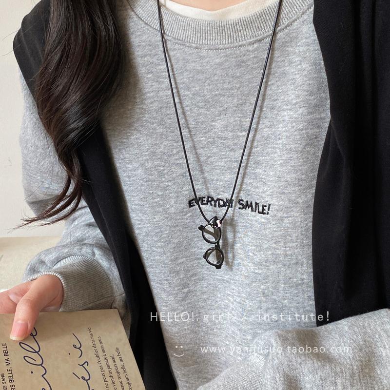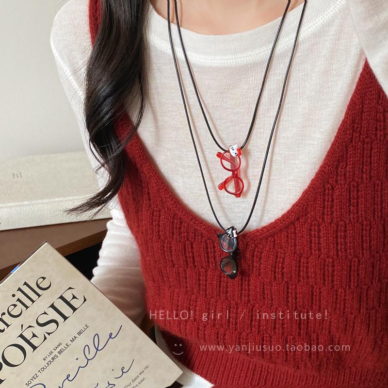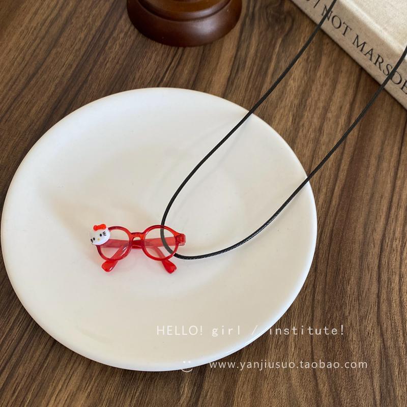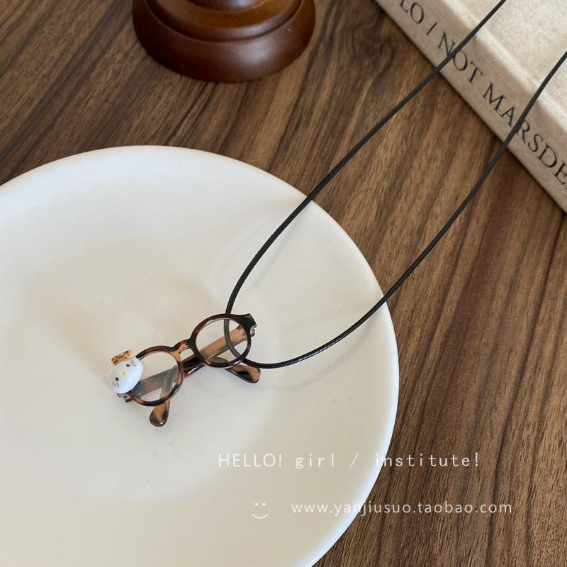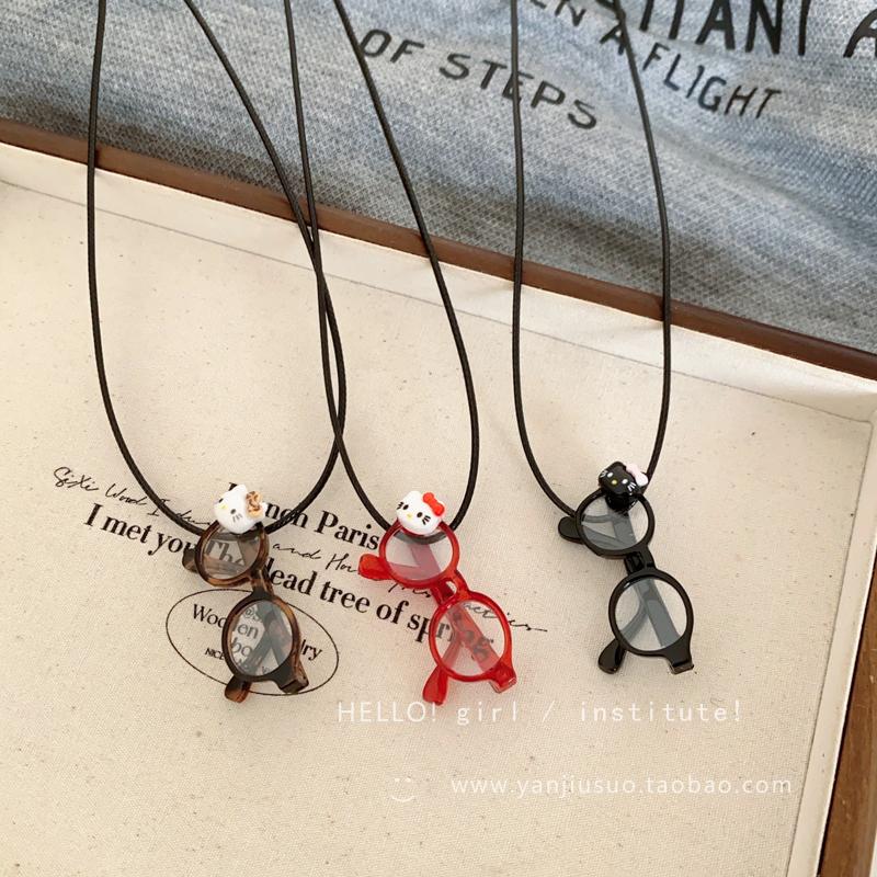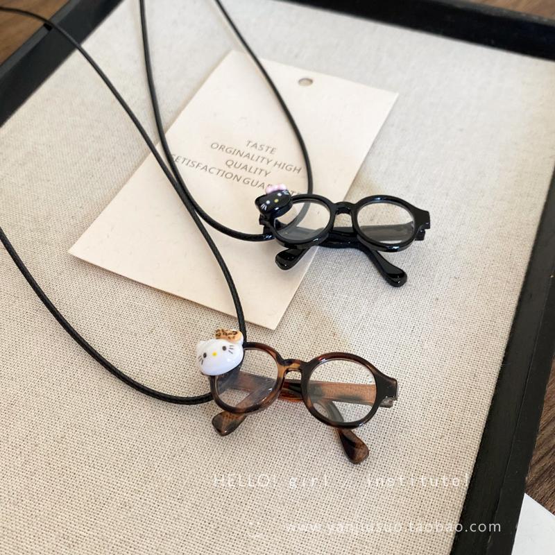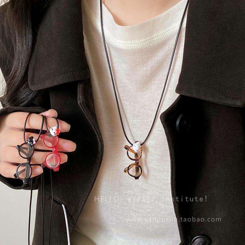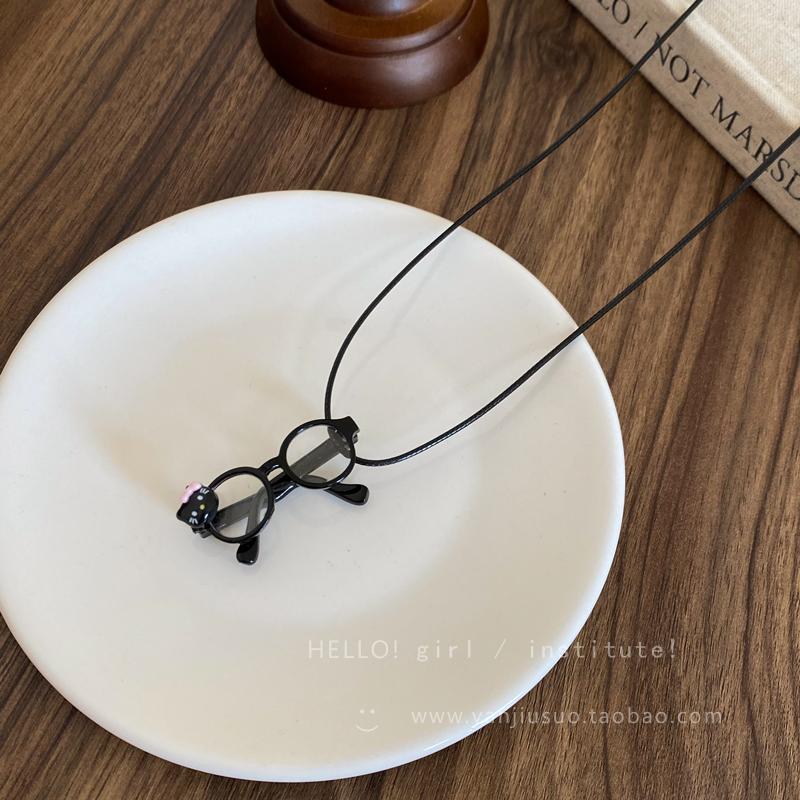 Collar con colgante de gafas de gato Kt creativo para mujer, lindo de dibujos animados, nicho, cadena para sudadera, suéter, largo, halter, accesorios