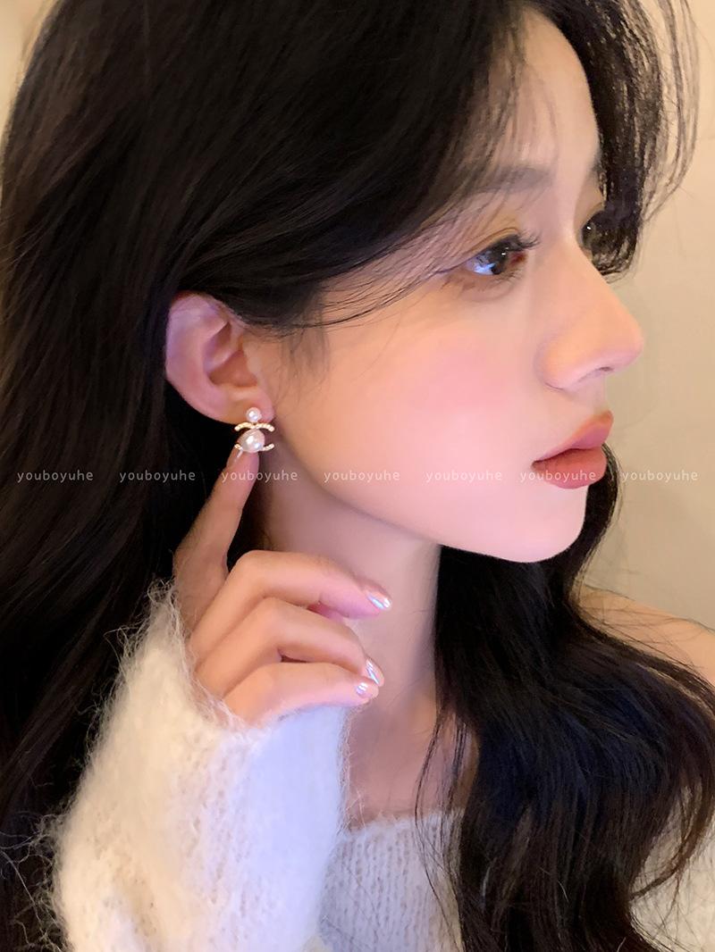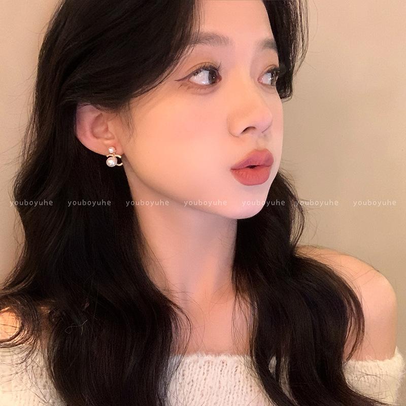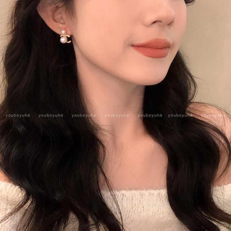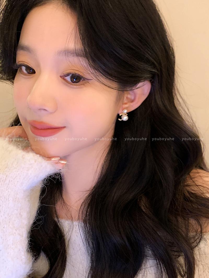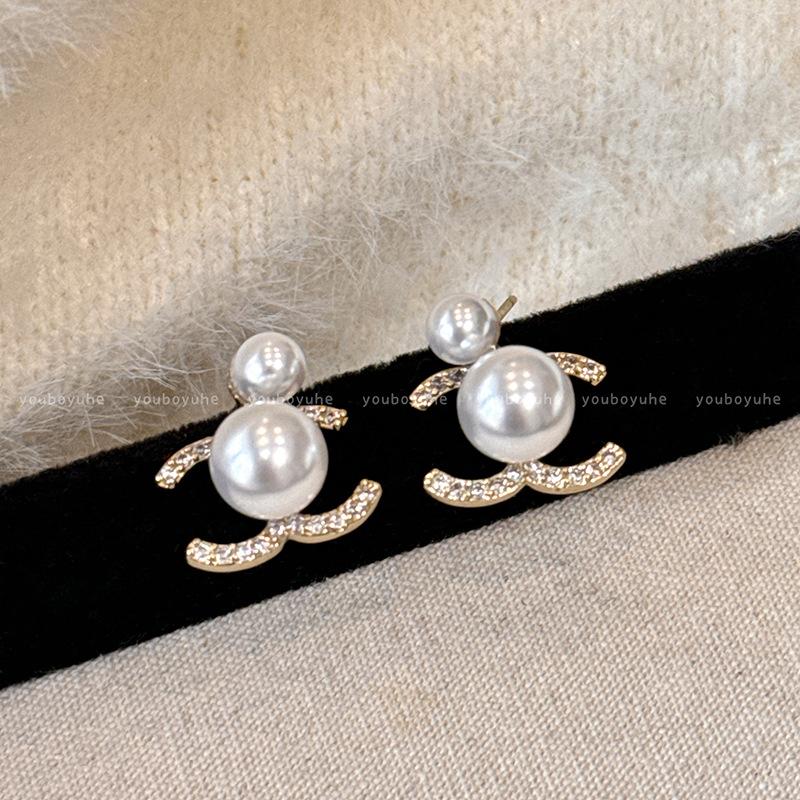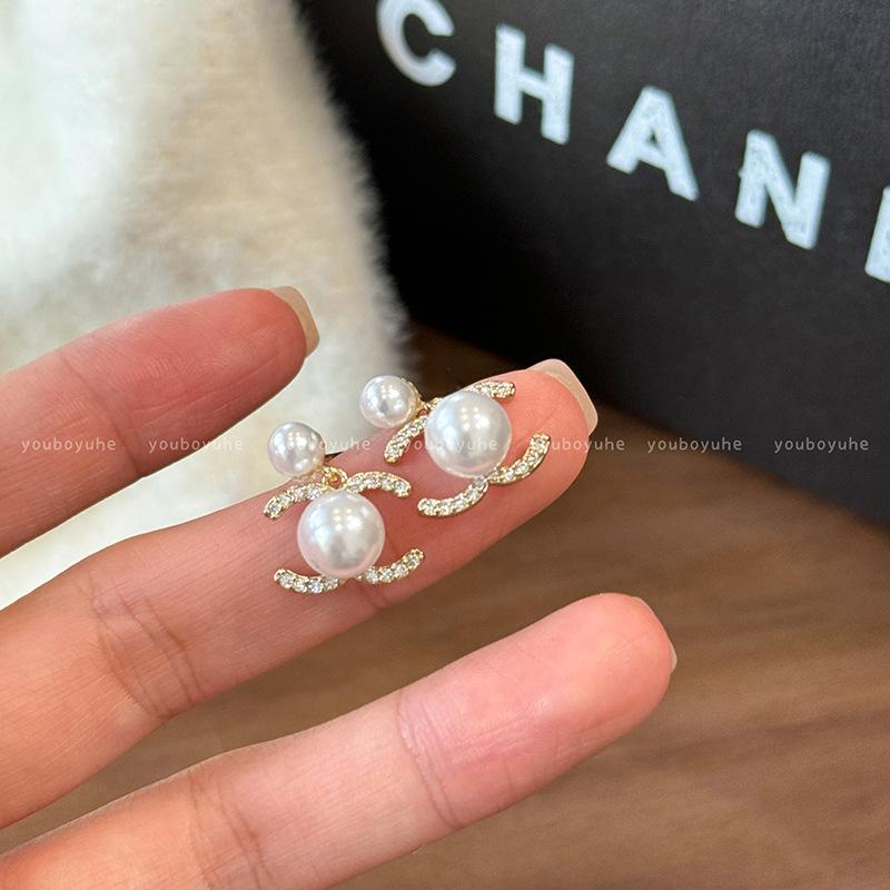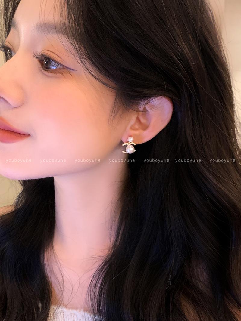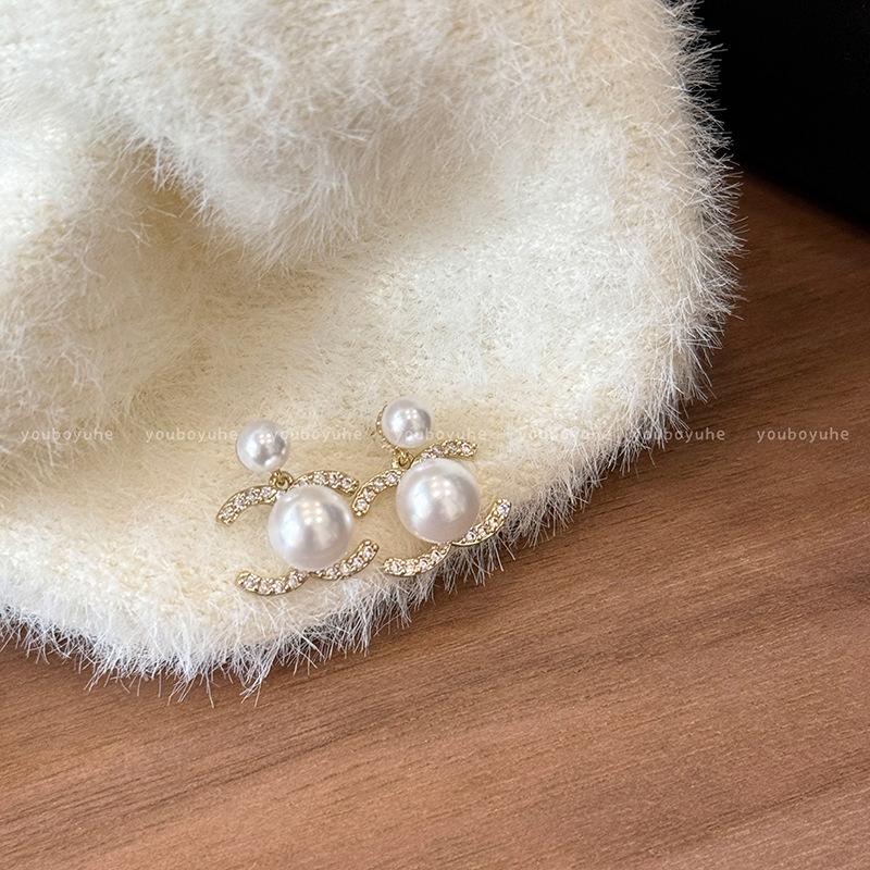 Aretes de perlas retro estilo Chanel 2024 nuevo estilo caliente nicho minimalista aretes joyería para la oreja lujo ligero sensación de alta gama aretes colgantes