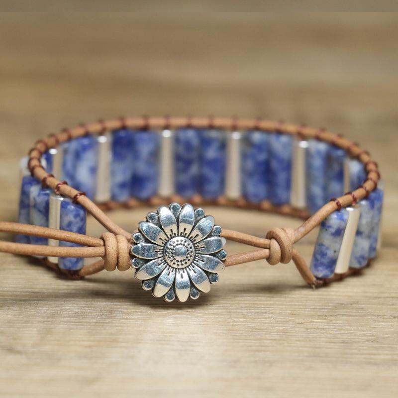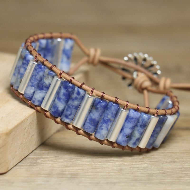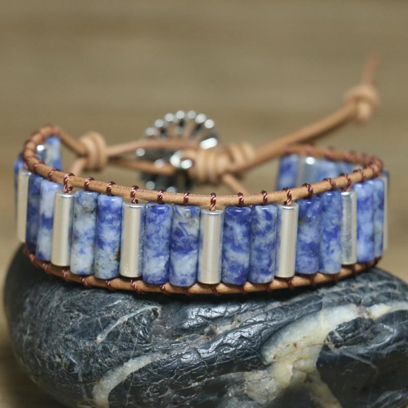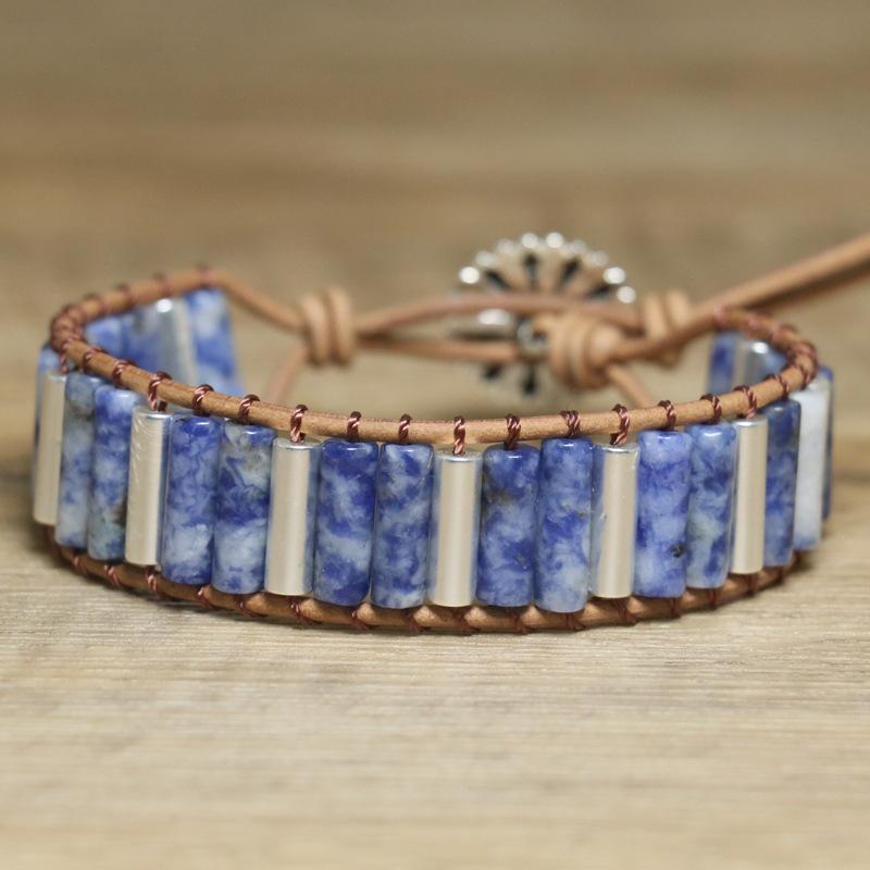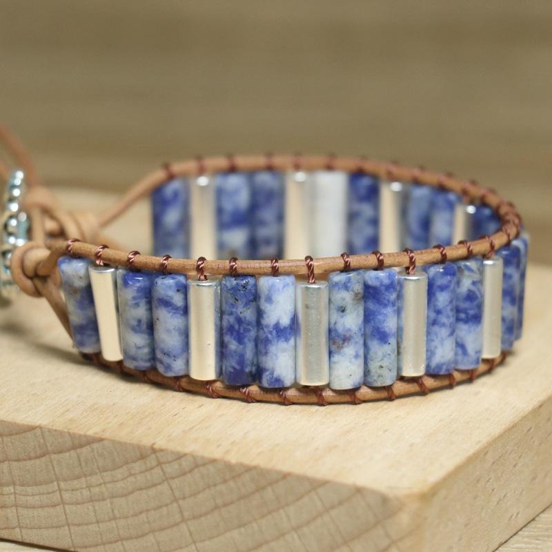 Pulsera de Moda Retro Personalizada Larga de Piedra de Punto Azul para Mujer y Hombre Exquisita Tejida Ajustable de Enrollamiento
