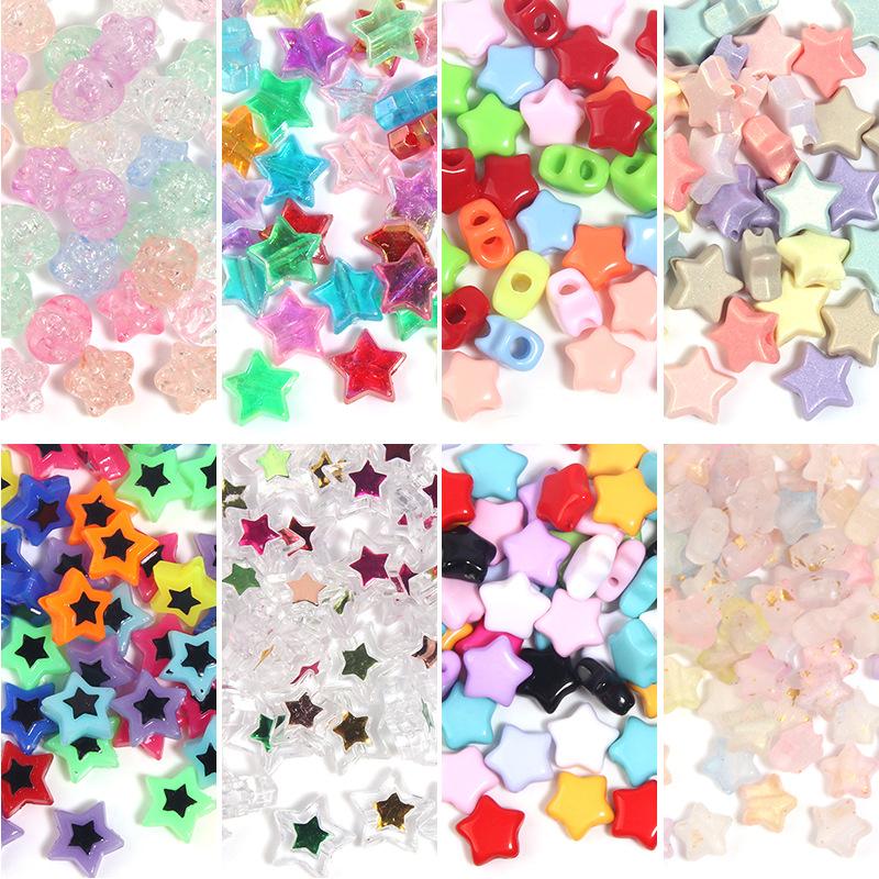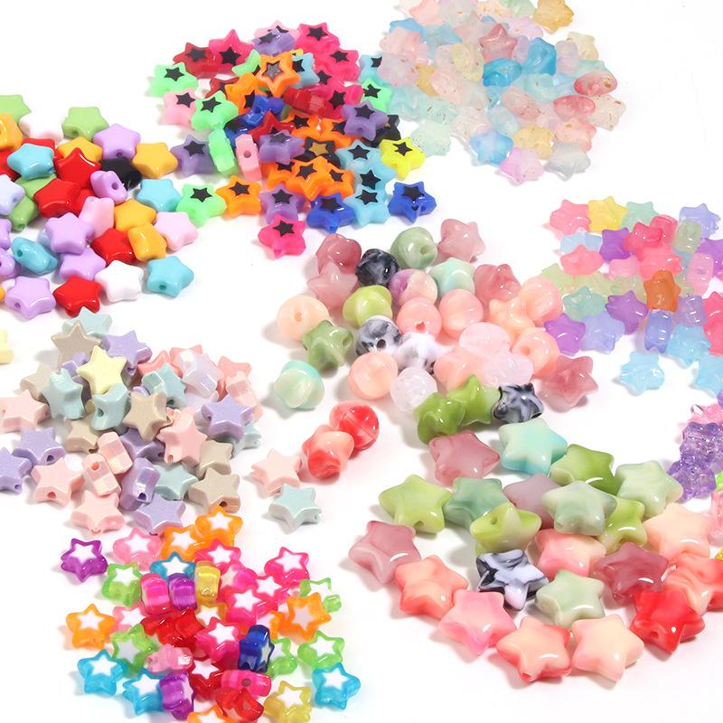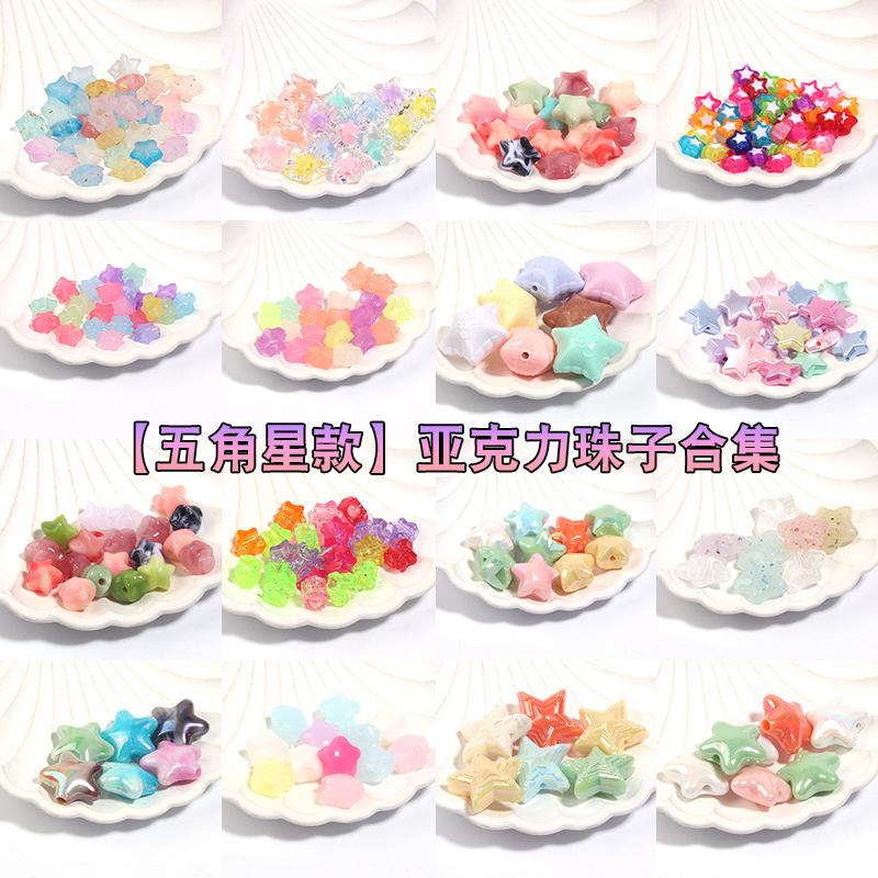 Cuentas acrílicas UV transparentes coloridas de dibujos animados en las cuentas cuentas de estrella de cinco puntas diy colgante de cadena para teléfono móvil pequeños accesorios de joyería