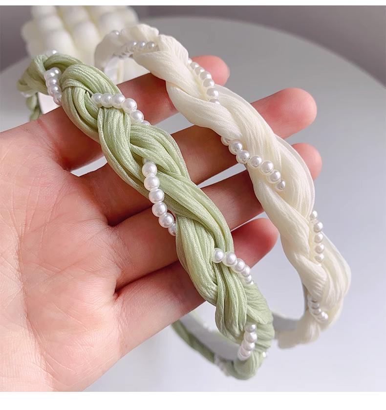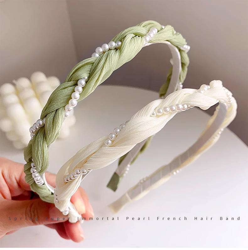 Diadema con perlas retorcidas para mujer, elegante diadema de verano con pelo prensado, estilo hada del bosque, accesorios para el cabello frescos y de alta gama.