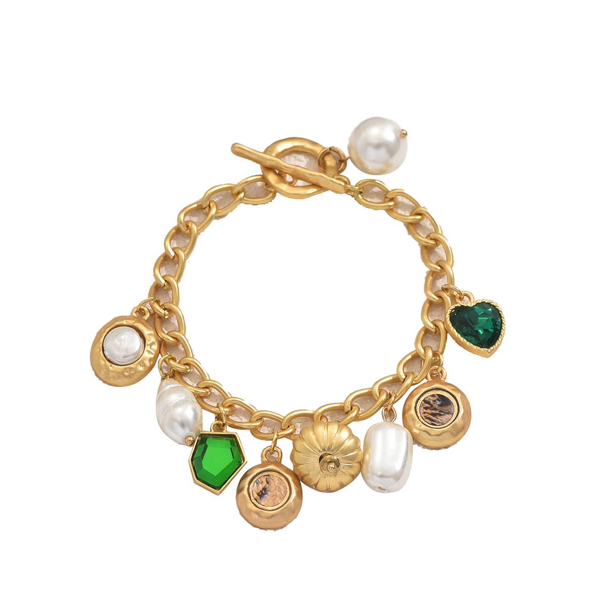 Pulsera de mujer estilo europeo y americano transfronterizo superventas de Amazon diseño geométrico con incrustaciones de diamantes elemento de corazón brazalete versátil