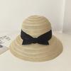 Khaki large brim hat with black bow tie