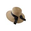Khaki large brim hat with black ribbon bow