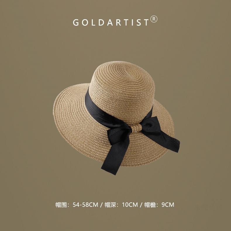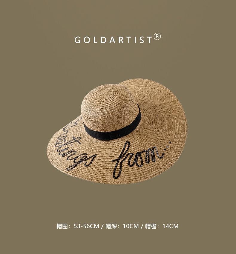 khaki large brim sequin black ribbon