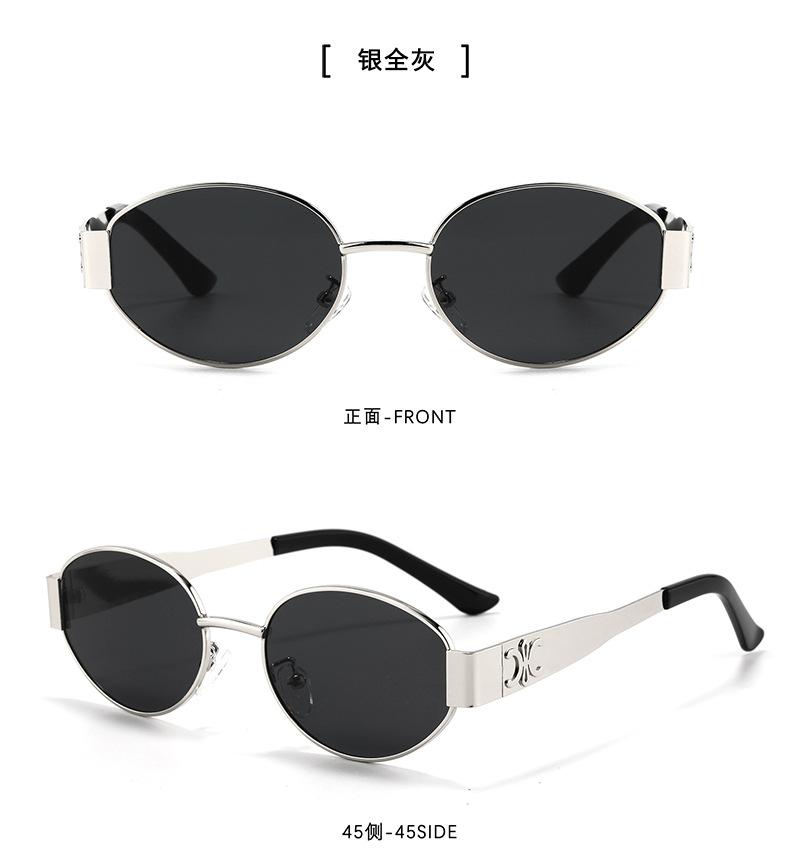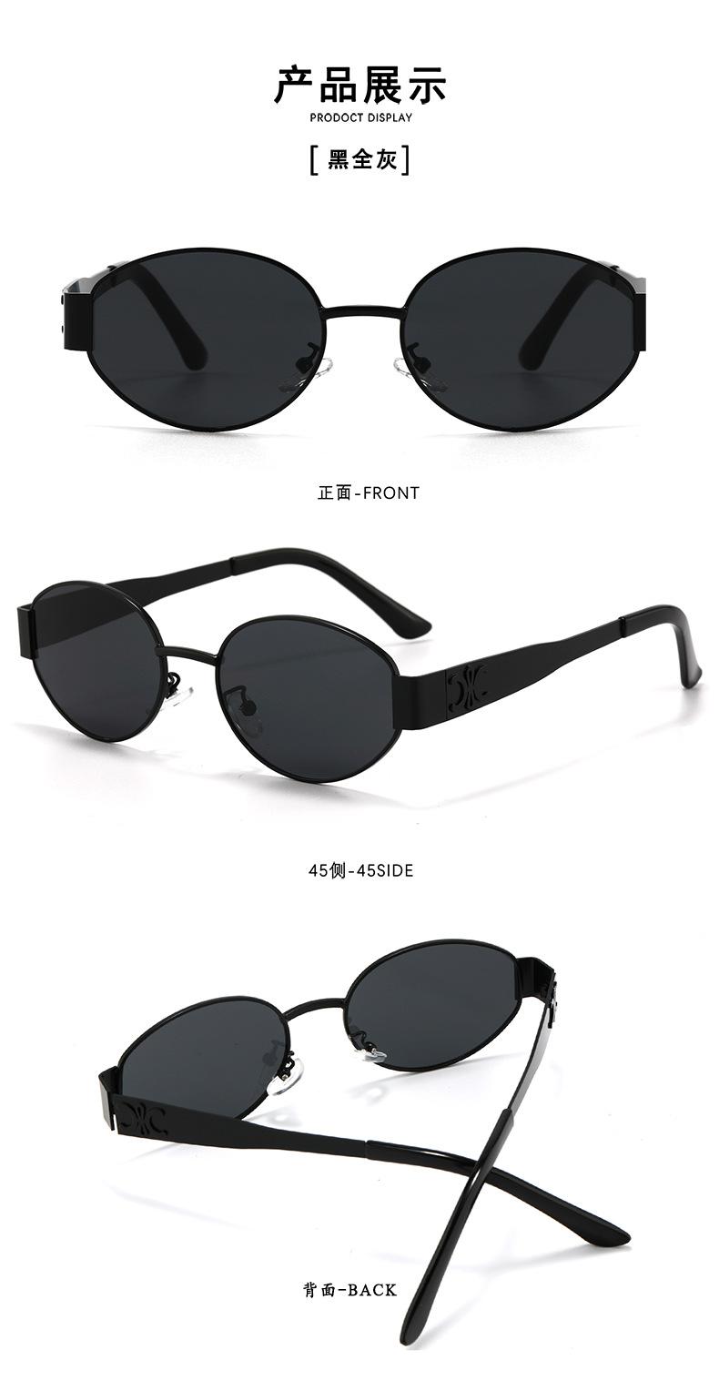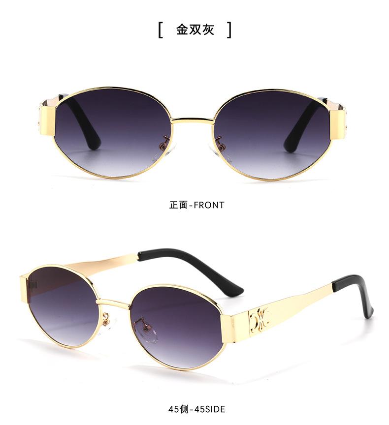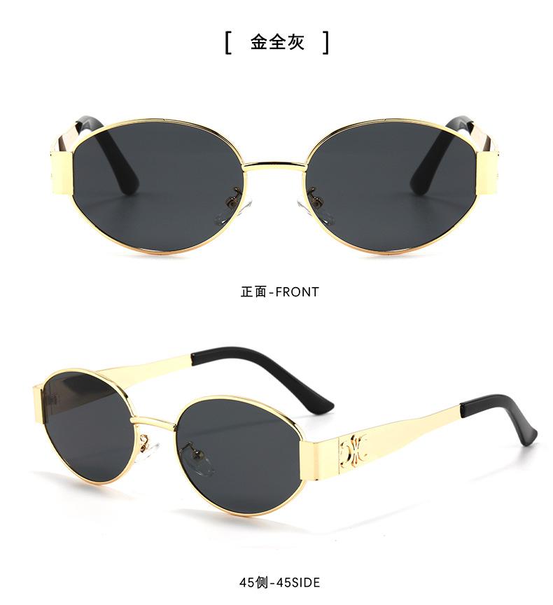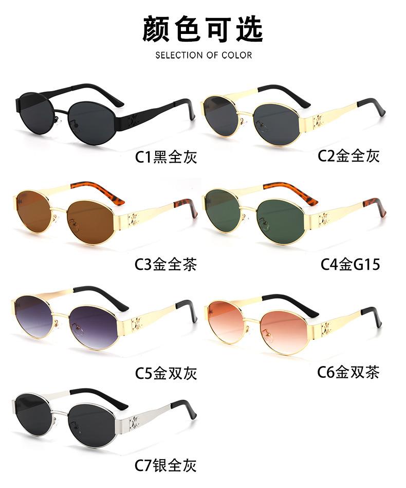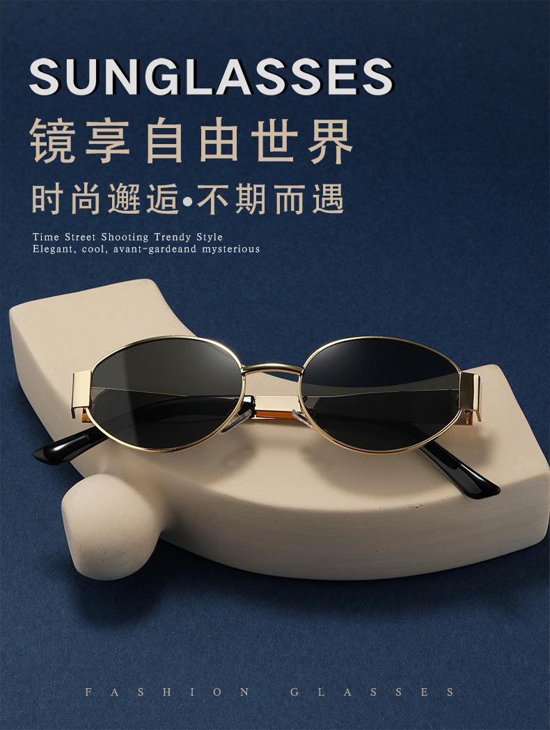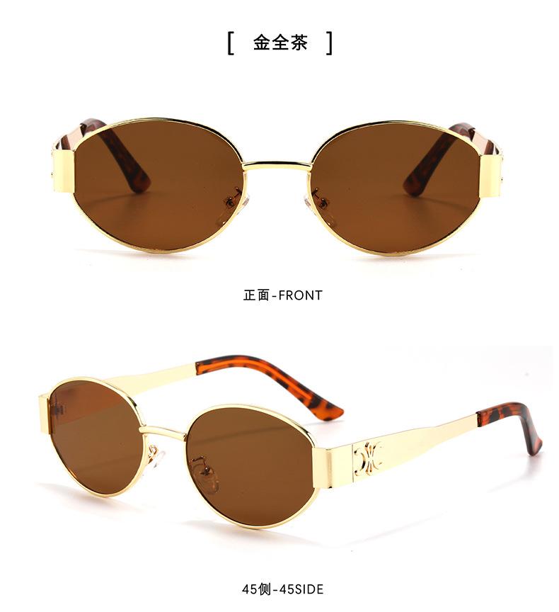 Nuevas gafas de sol ovaladas transfronterizas Amazon lentes calientes pequeñas redondas de metal moda gafas de sol hombres y mujeres 3-9521