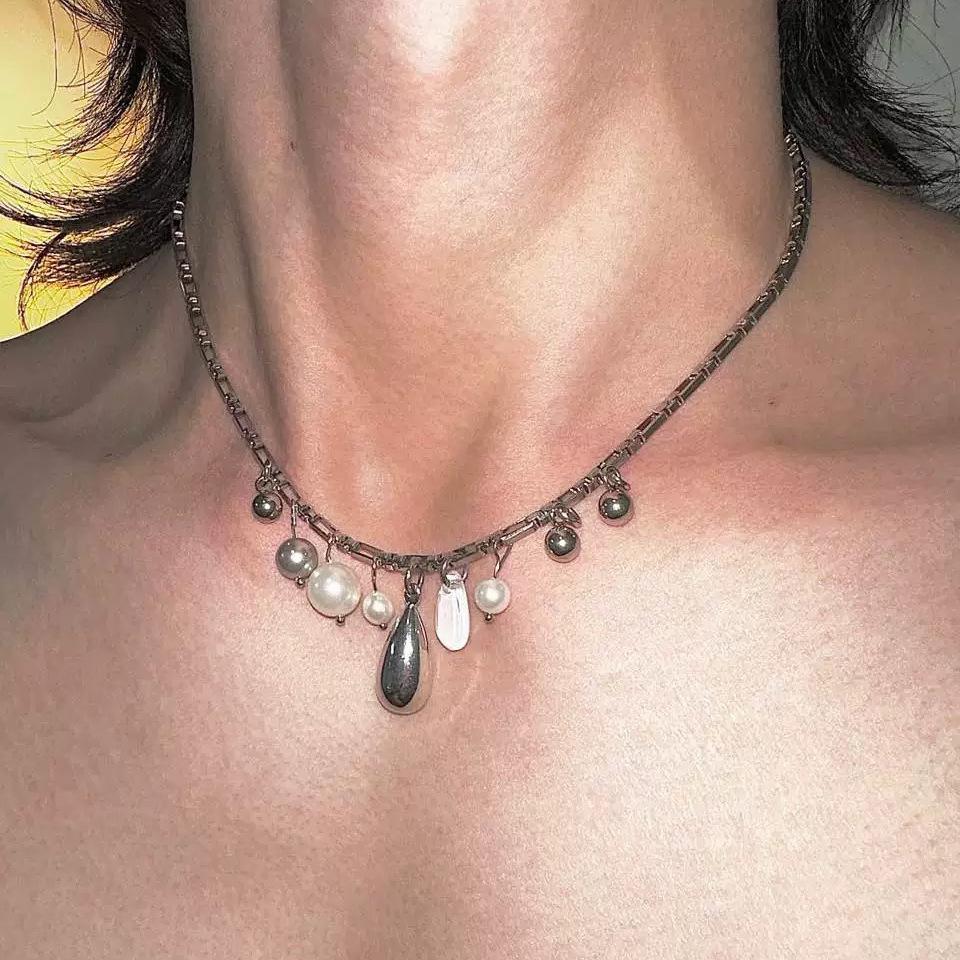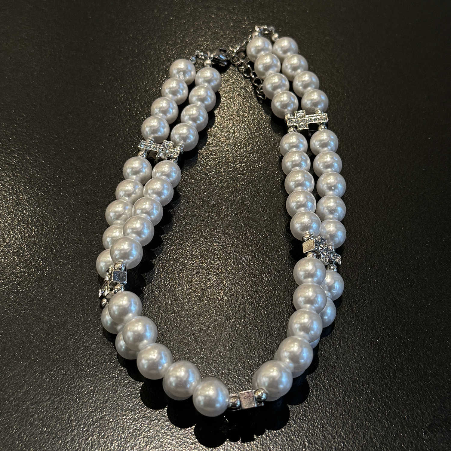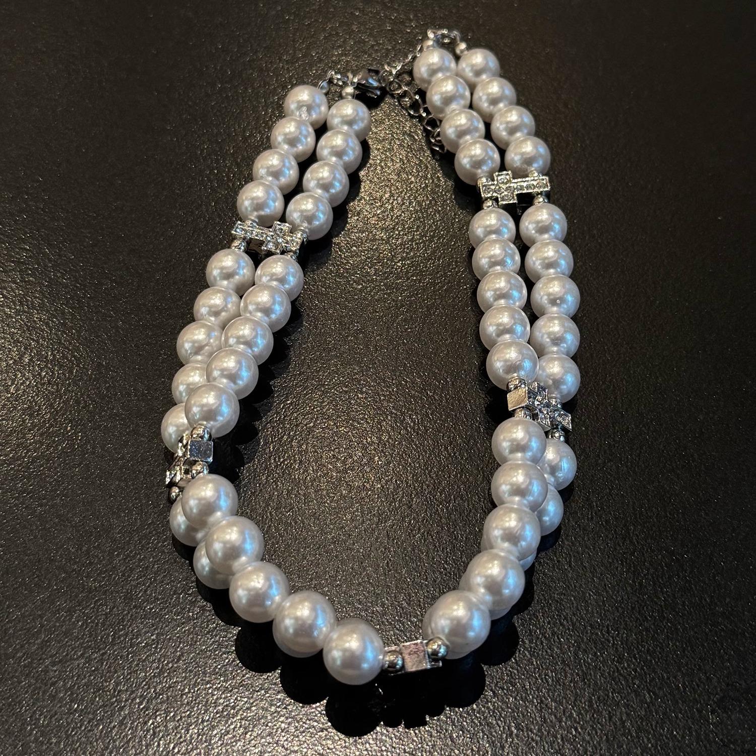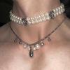 Water drop necklace, White cross pearl necklace, Stacked two-piece set