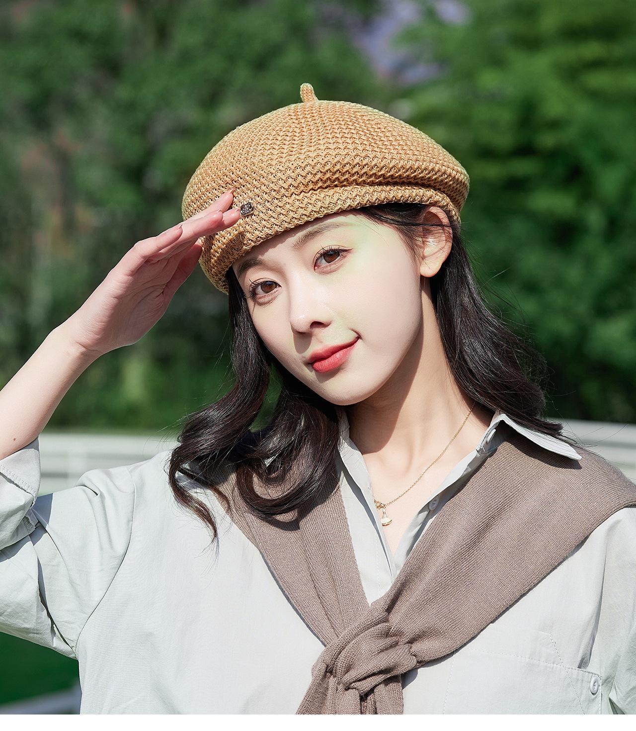 Gorro de capullo de calabaza vintage británico sombrero de primavera y verano tejido transpirable boina plisada para mujer gorro de pintor artístico venta al por mayor