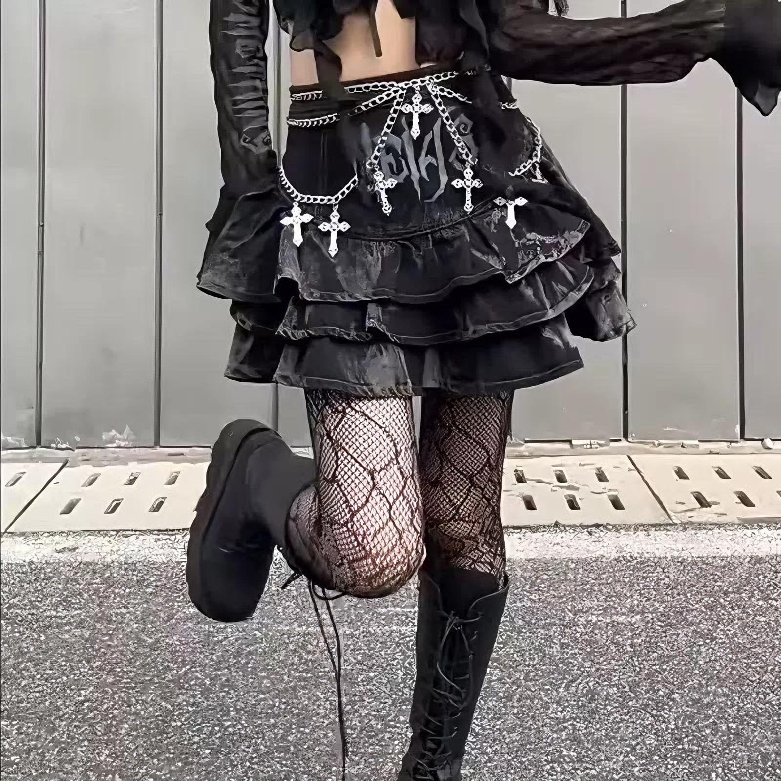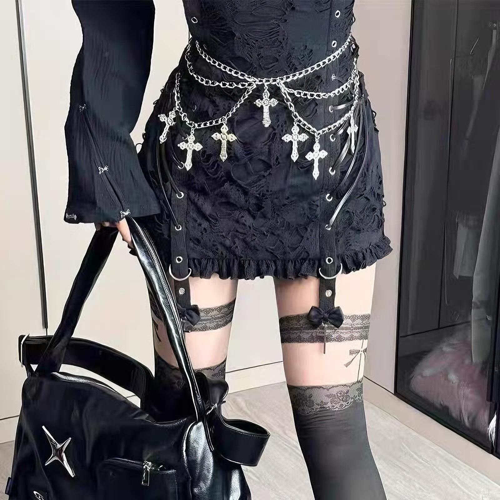 Cinturón Gótico Cruz Multicapa Oscuro con Cadena de Cintura Sexy Cosy2K Metal Punk Subcultura Apilamiento