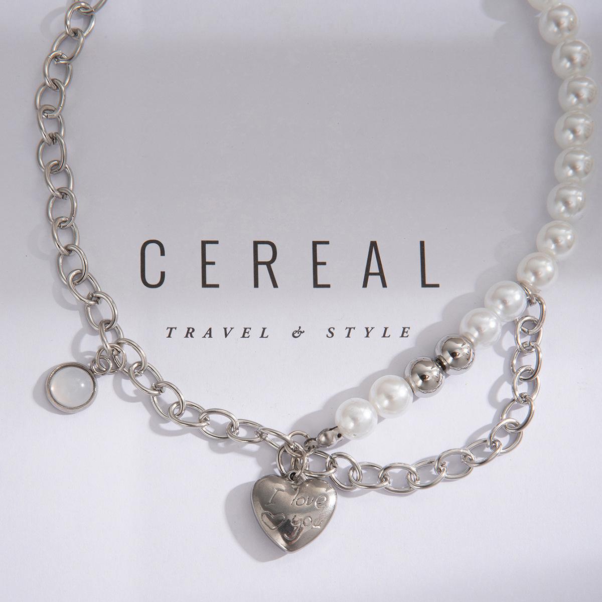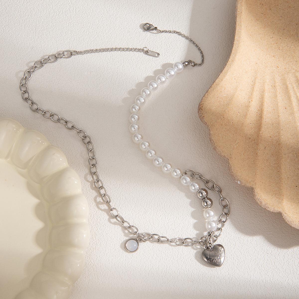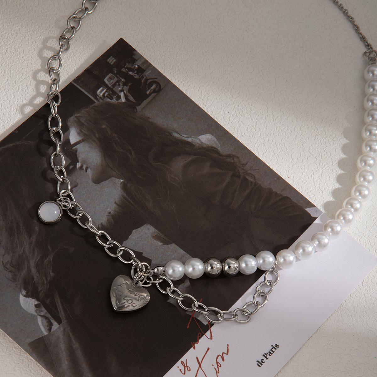 Collar colgante de amor transfronterizo europeo y americano con perlas empalmadas, ligero de lujo, de alta gama, versátil, con personalidad, cadena para clavículaSuministro al por mayor de joyas