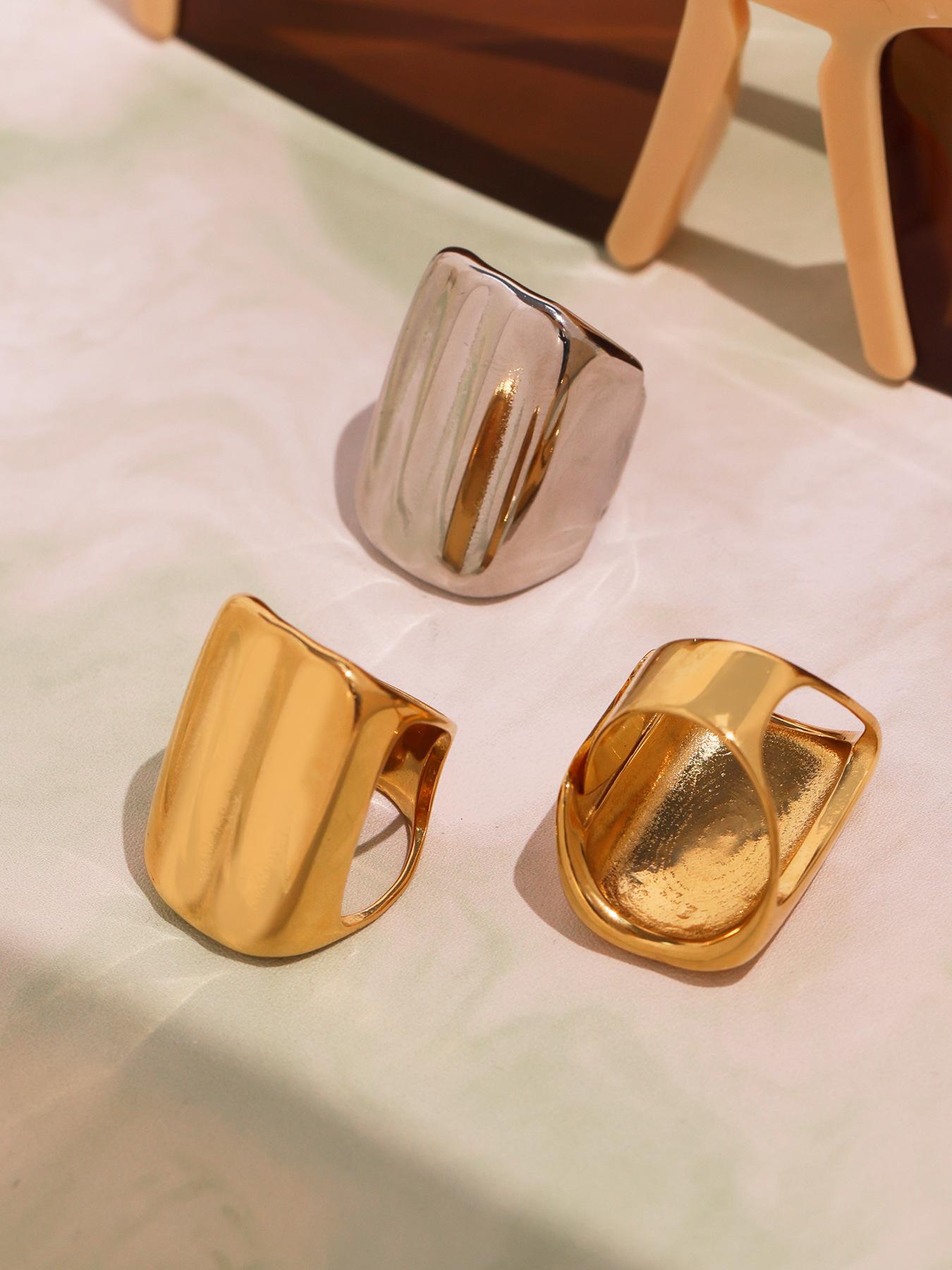 Azúcar Ins Anillo Irregular Exagerado Estilo Europeo y Americano para Mujer Acero Inoxidable Chapado en Oro al Vacío Pulsera de Anillo Joyería Transfronteriza