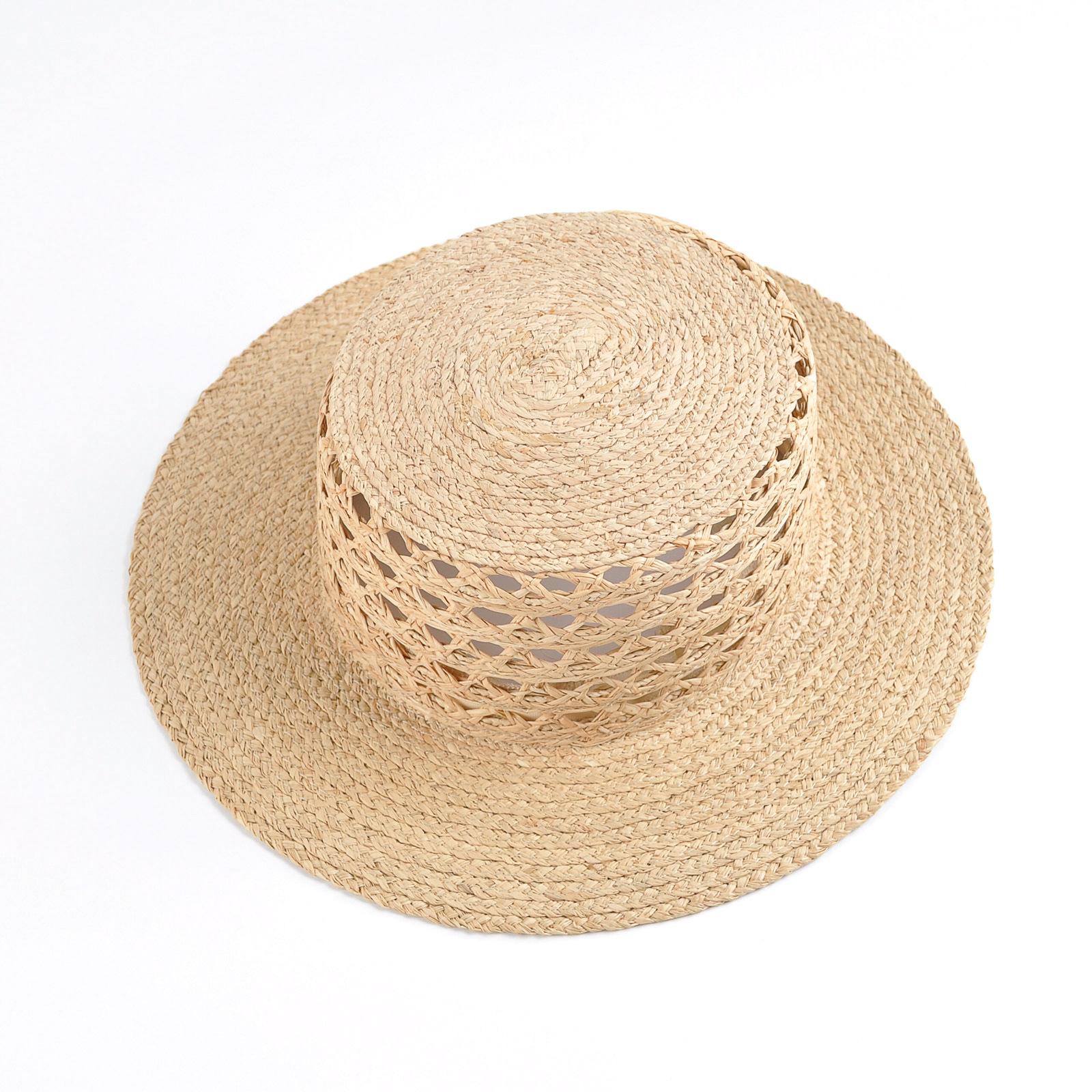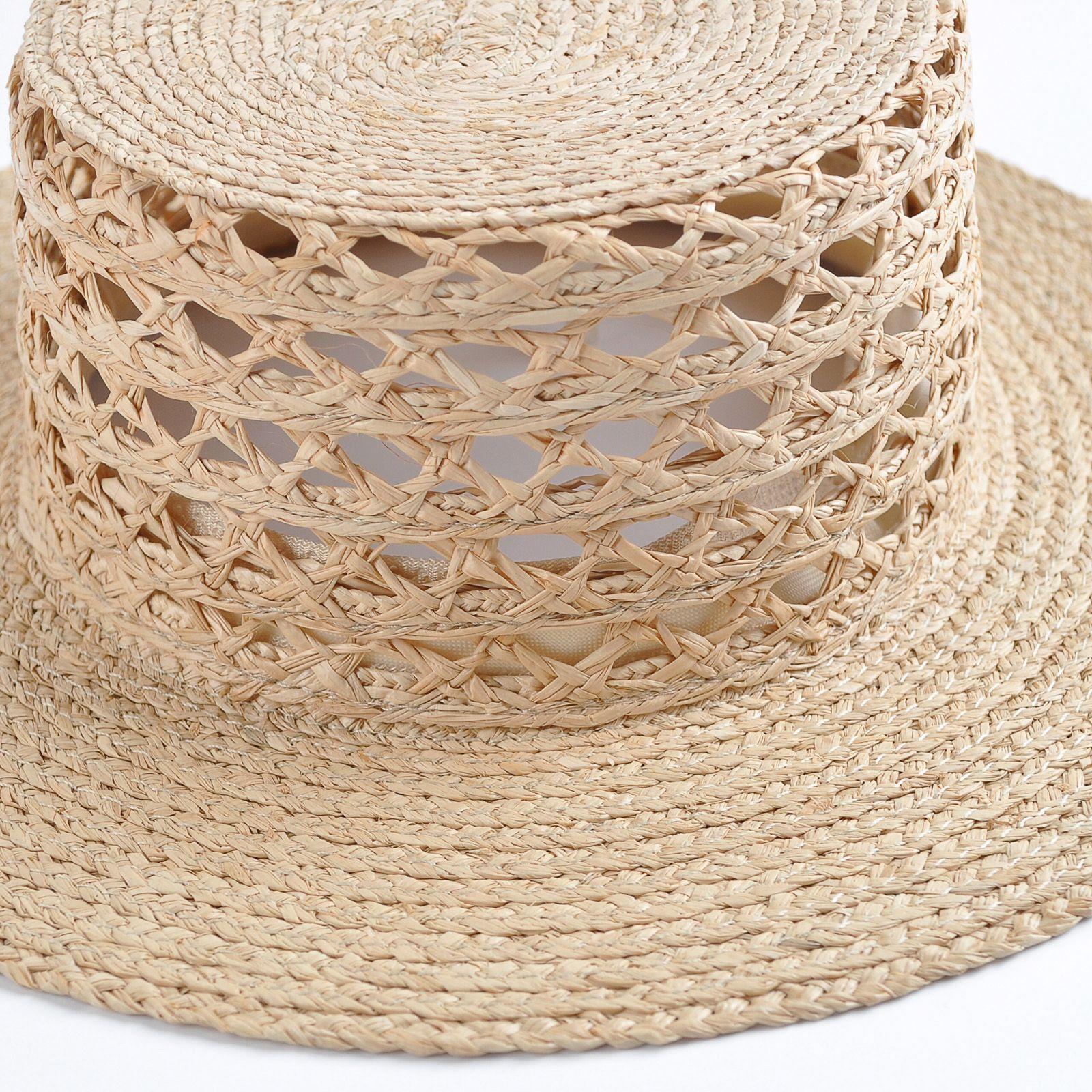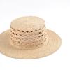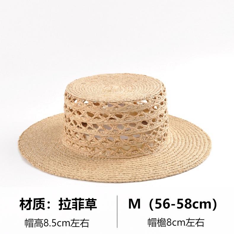 Sombrero de Sol de Nuevo Estilo Resort Francés de Primavera y Verano para Mujer, Sombrero de Paja de Rafia Hueco de Copa Plana Versátil y a la Moda