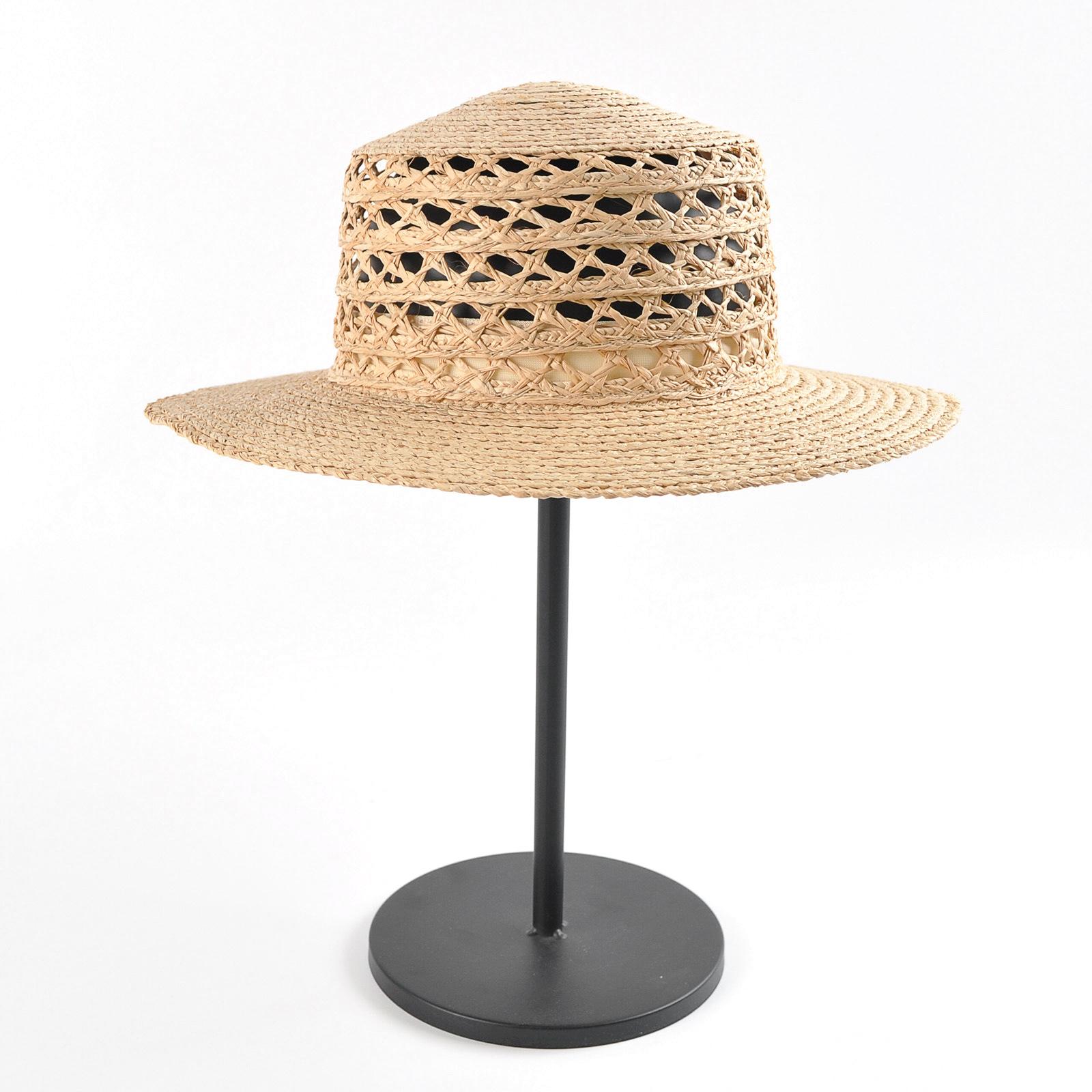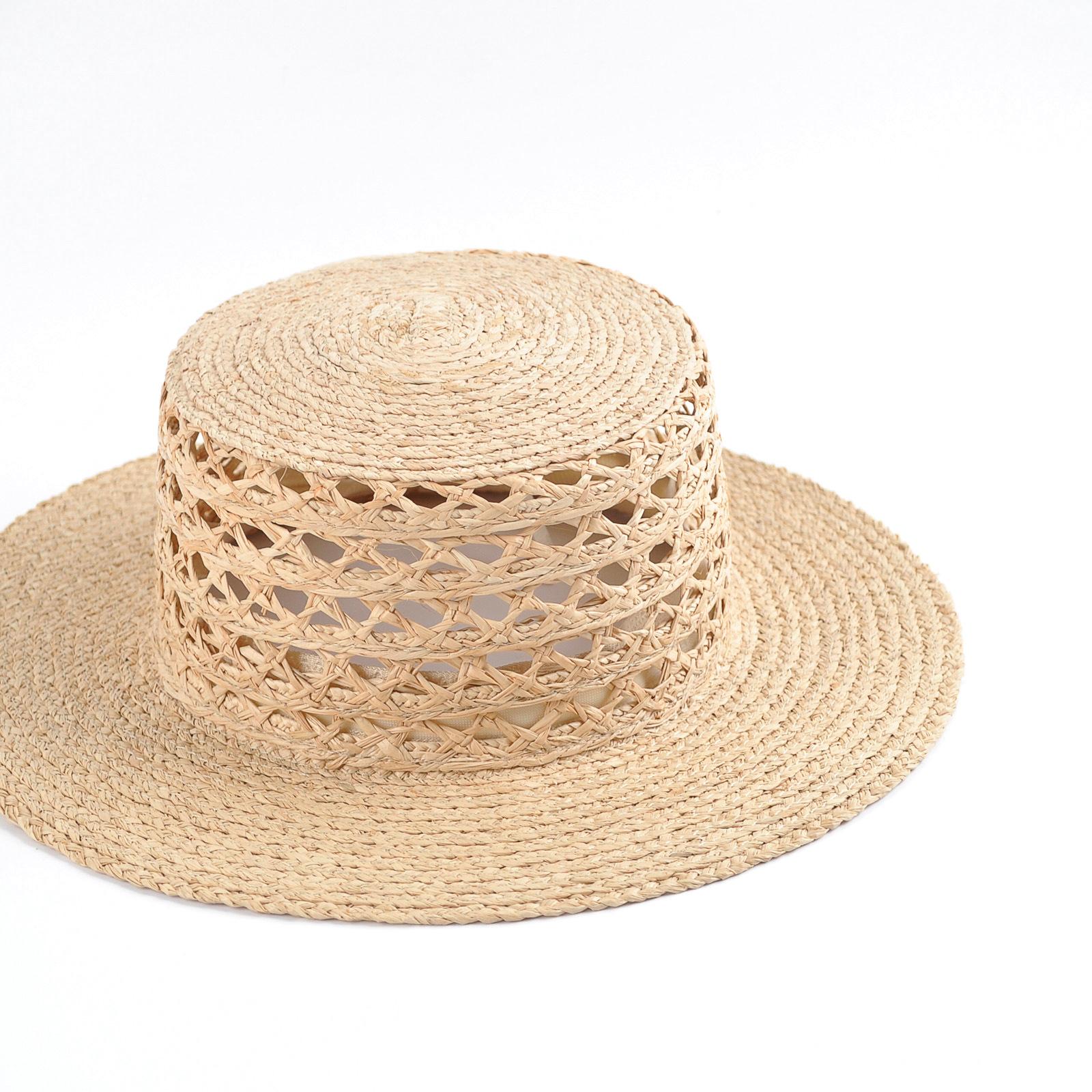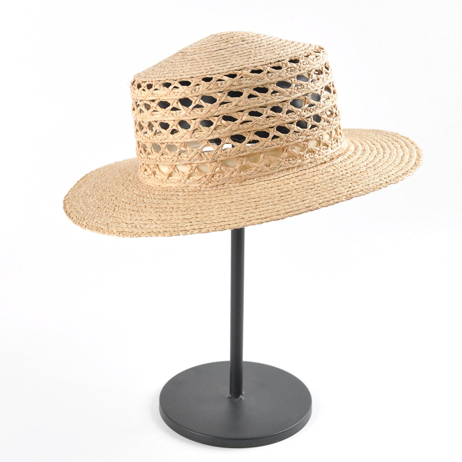 Sombrero de Sol de Nuevo Estilo Resort Francés de Primavera y Verano para Mujer, Sombrero de Paja de Rafia Hueco de Copa Plana Versátil y a la Moda