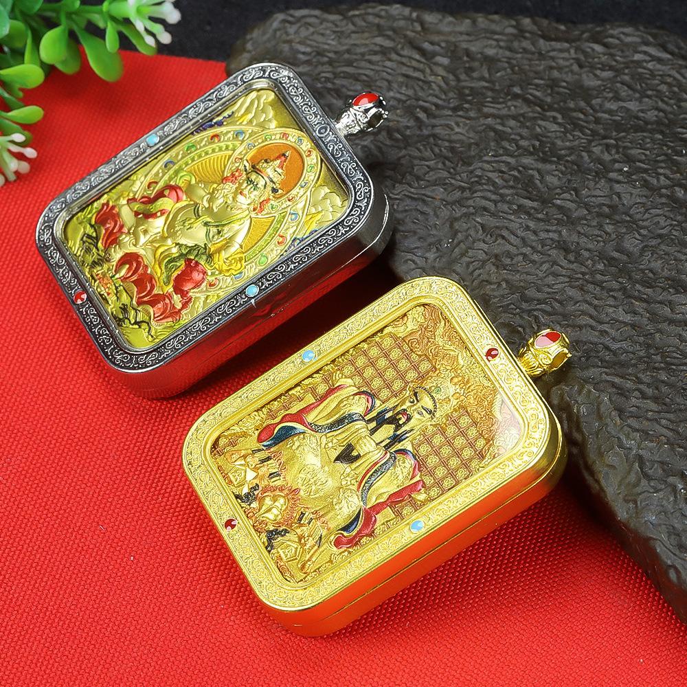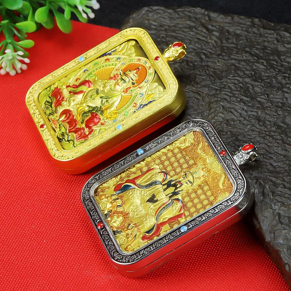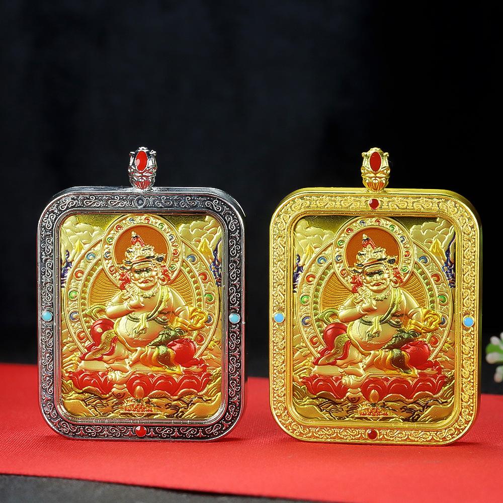 Colgante Tangka Xizang Pintado a Mano Amuleto de Buda Portátil Dios Amarillo de la Riqueza Wuye Ocho Santos Patronos Colgante Amuleto de Buda