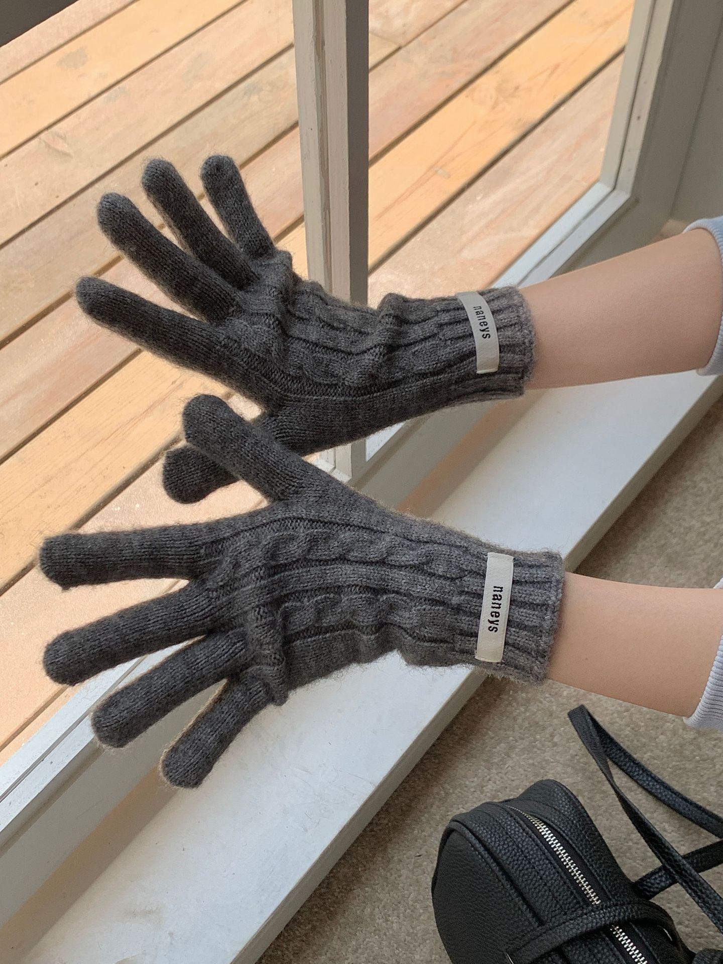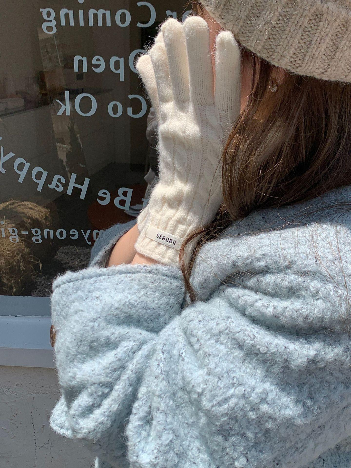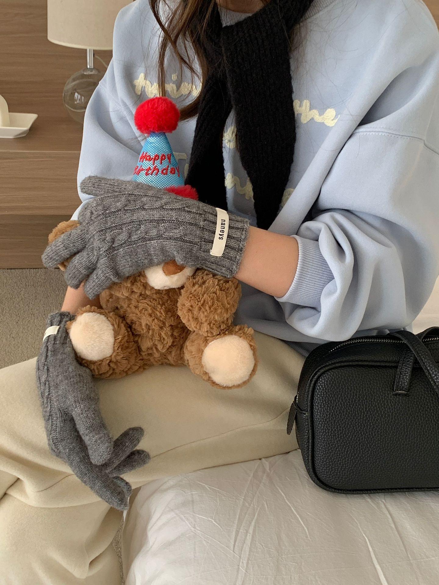 Guantes de Punto Coreanos Invierno 24 Nuevo Color Sólido Dedo Abierto Pantalla Táctil Cálidos Para Exterior Equitación Guantes de Lana para Estudiantes