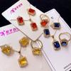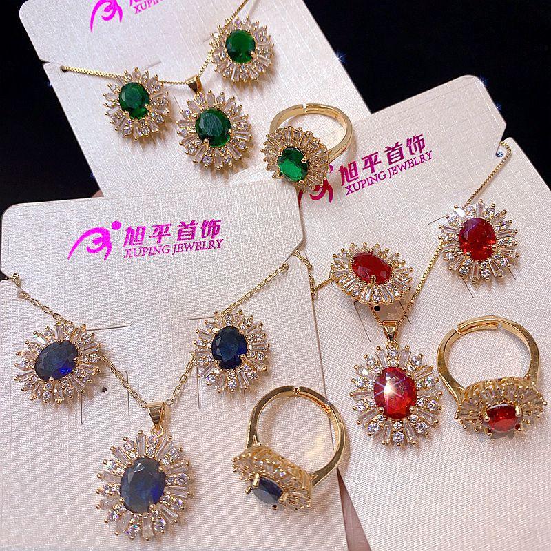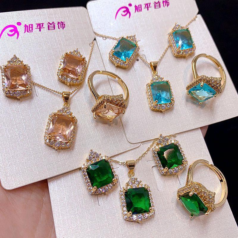 Lujoso Set de Tres Piezas de Collar, Aretes y Anillo de Circonita Brillante de Industria Pesada de Alta Gama con Incrustaciones de Gema de Cristal