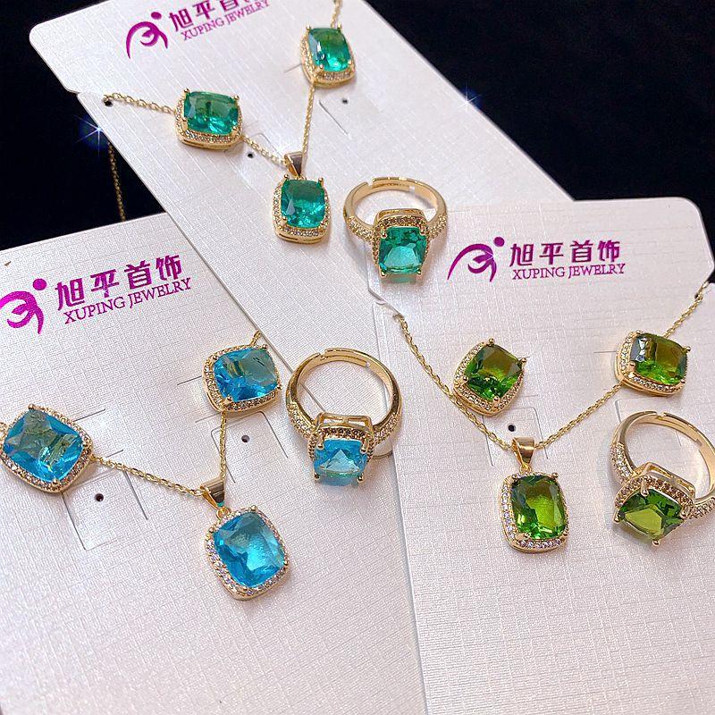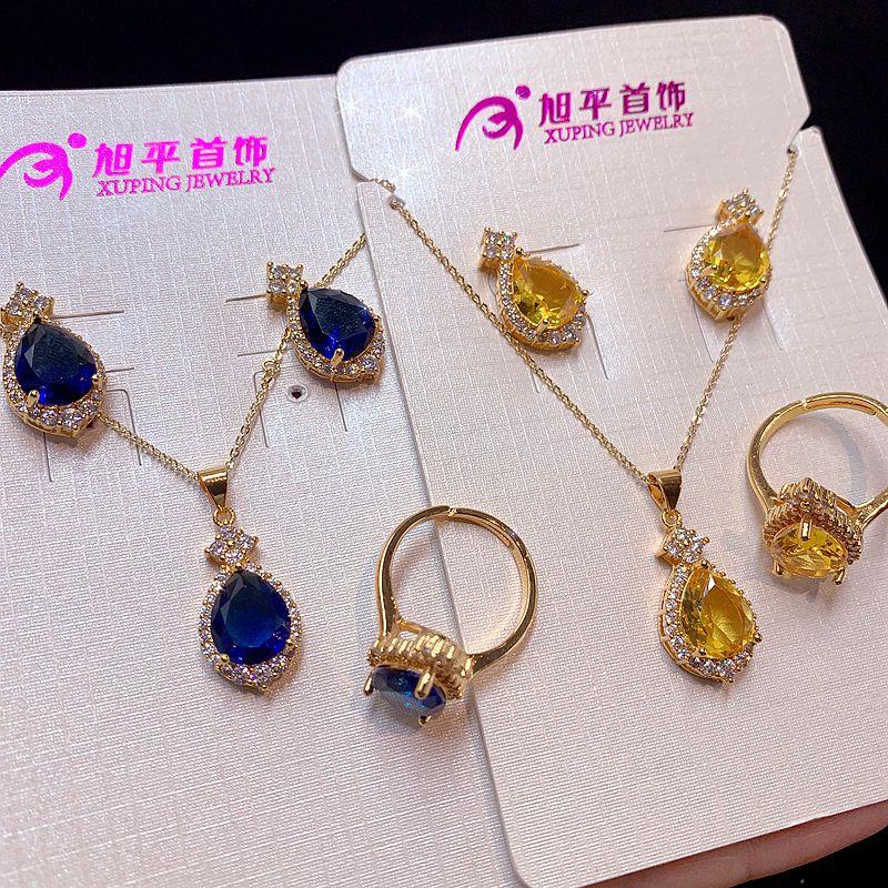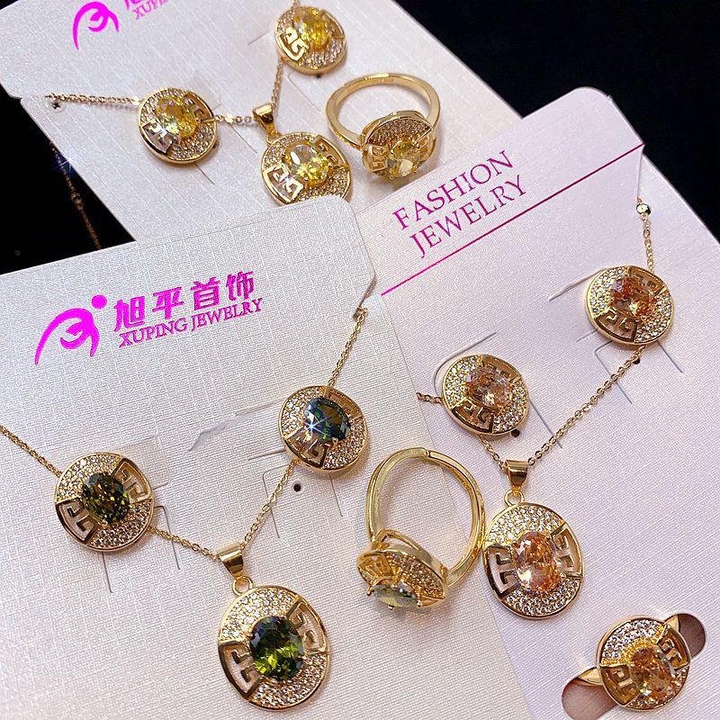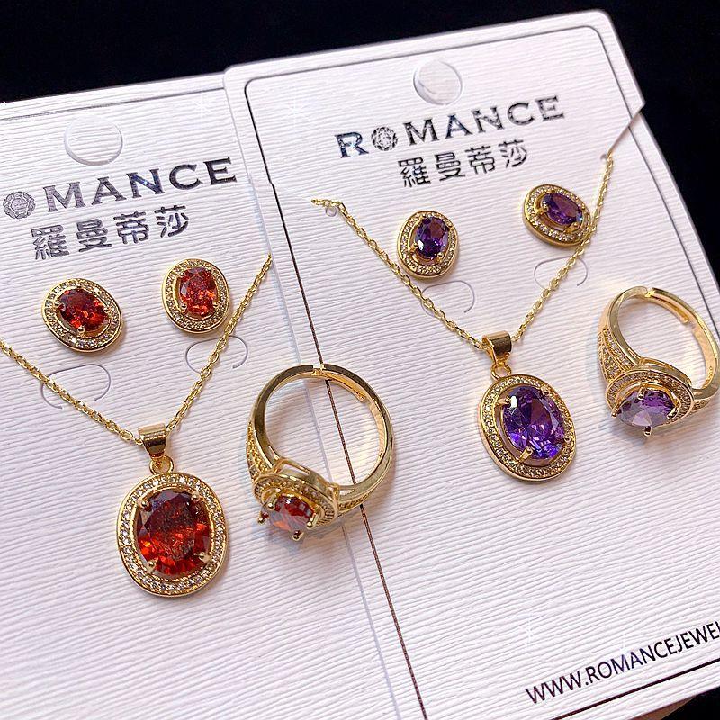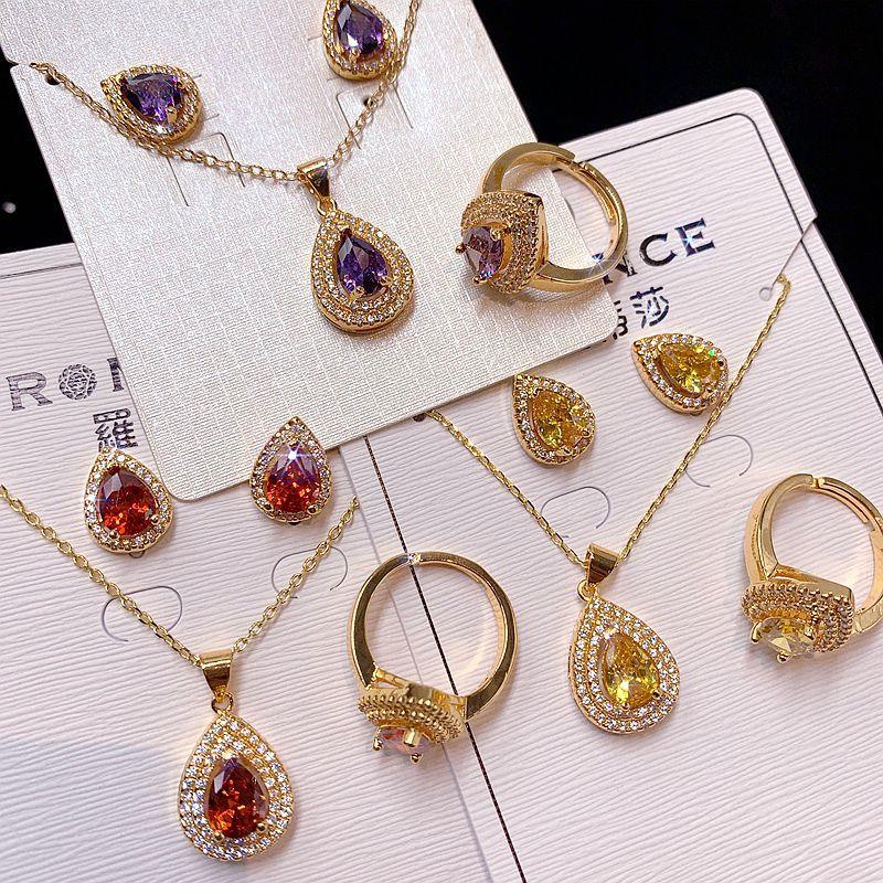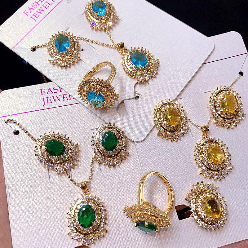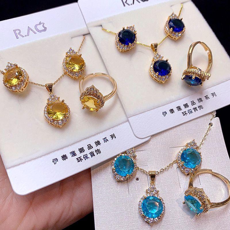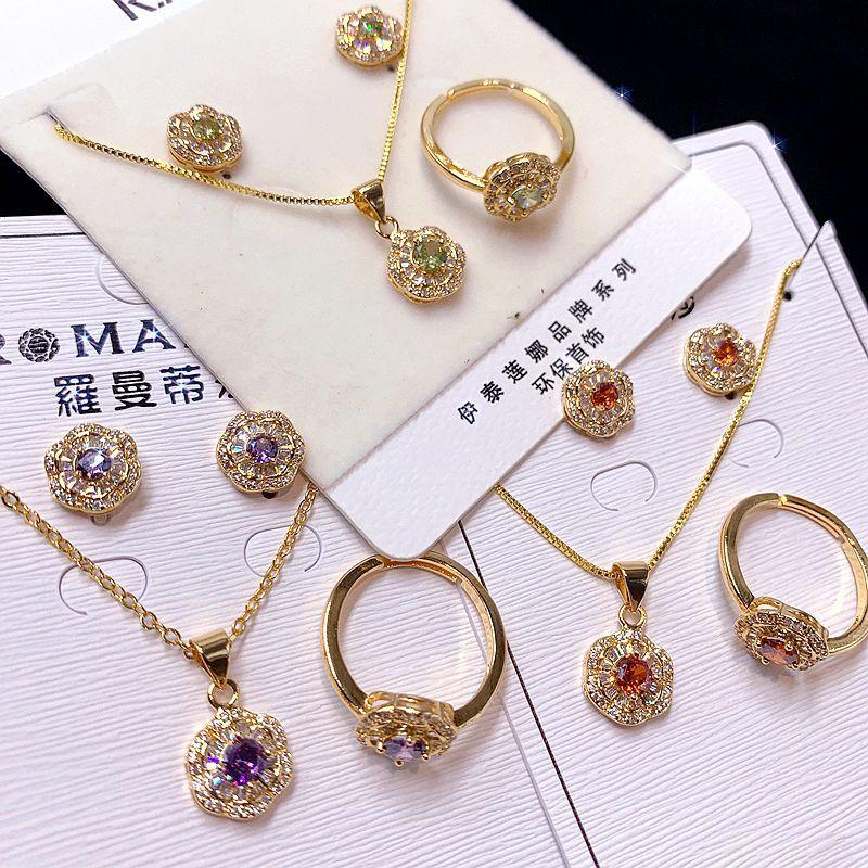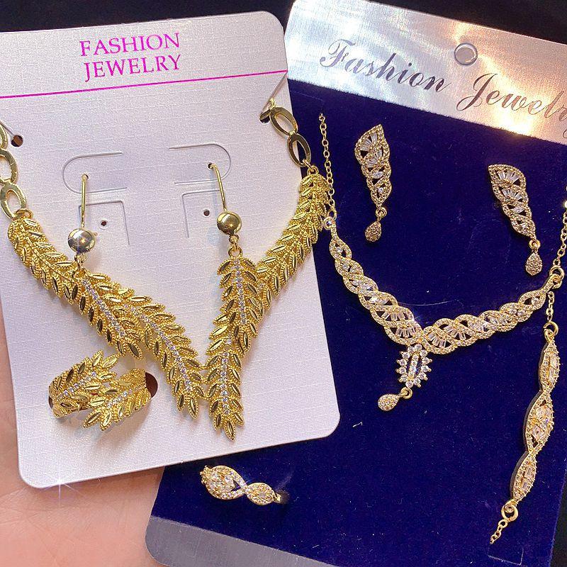 Esta área es un conjunto de tres piezas de aretes + collar + anillo, y también hay un conjunto de cuatro piezas con una pulsera.Los estilos son básicamente de una sola capa con colgantes.Son collares mayormente cortos, chapados en oro real para preservar el color, con buen efecto de retención del color. La mano de obra y la calidad de los productos son muy de alta gama, adecuados para la venta minorista en vivo y las ventas transfronterizas.