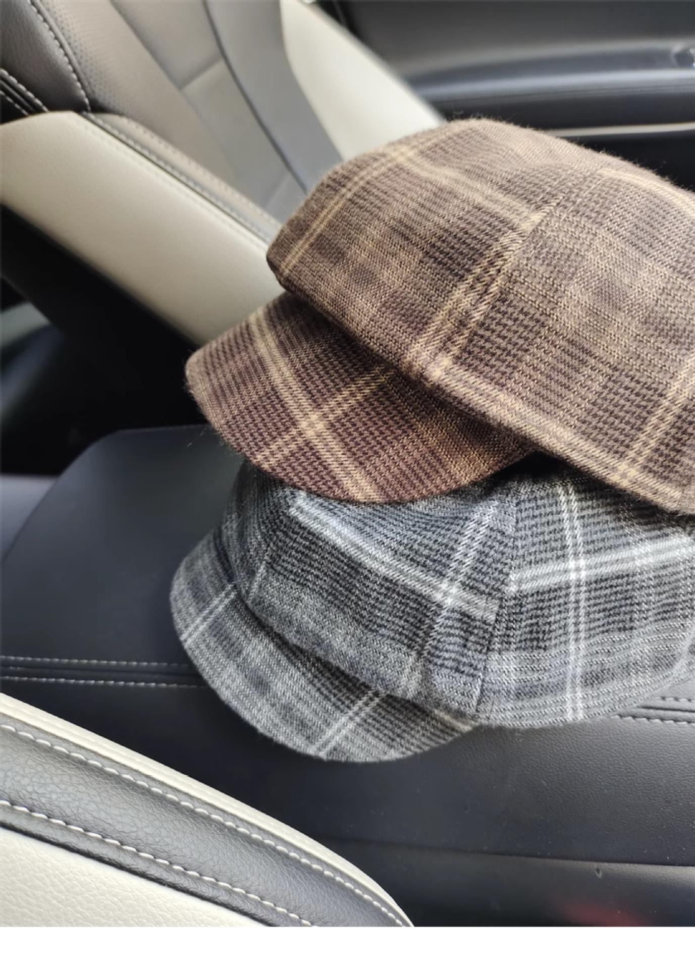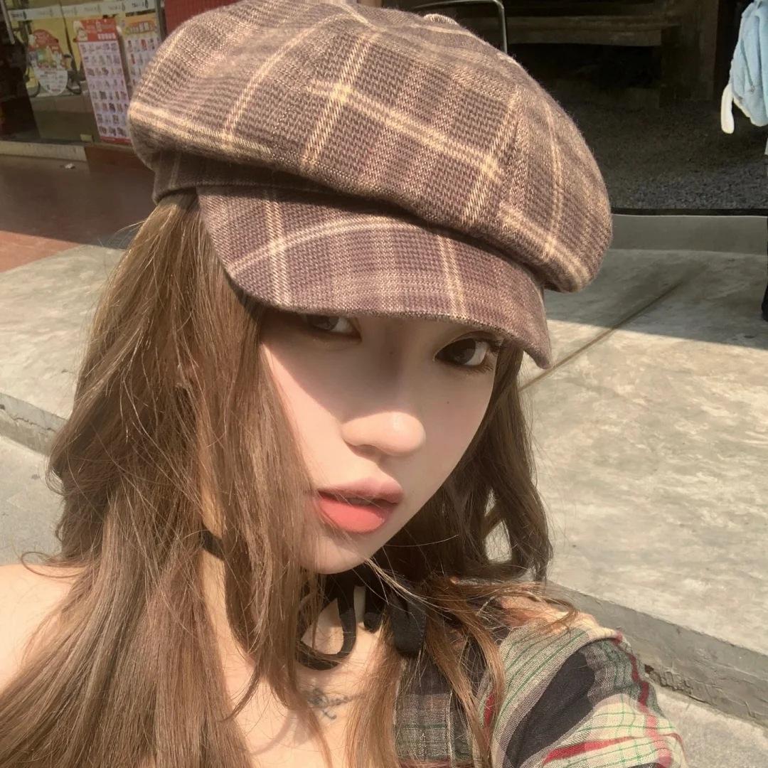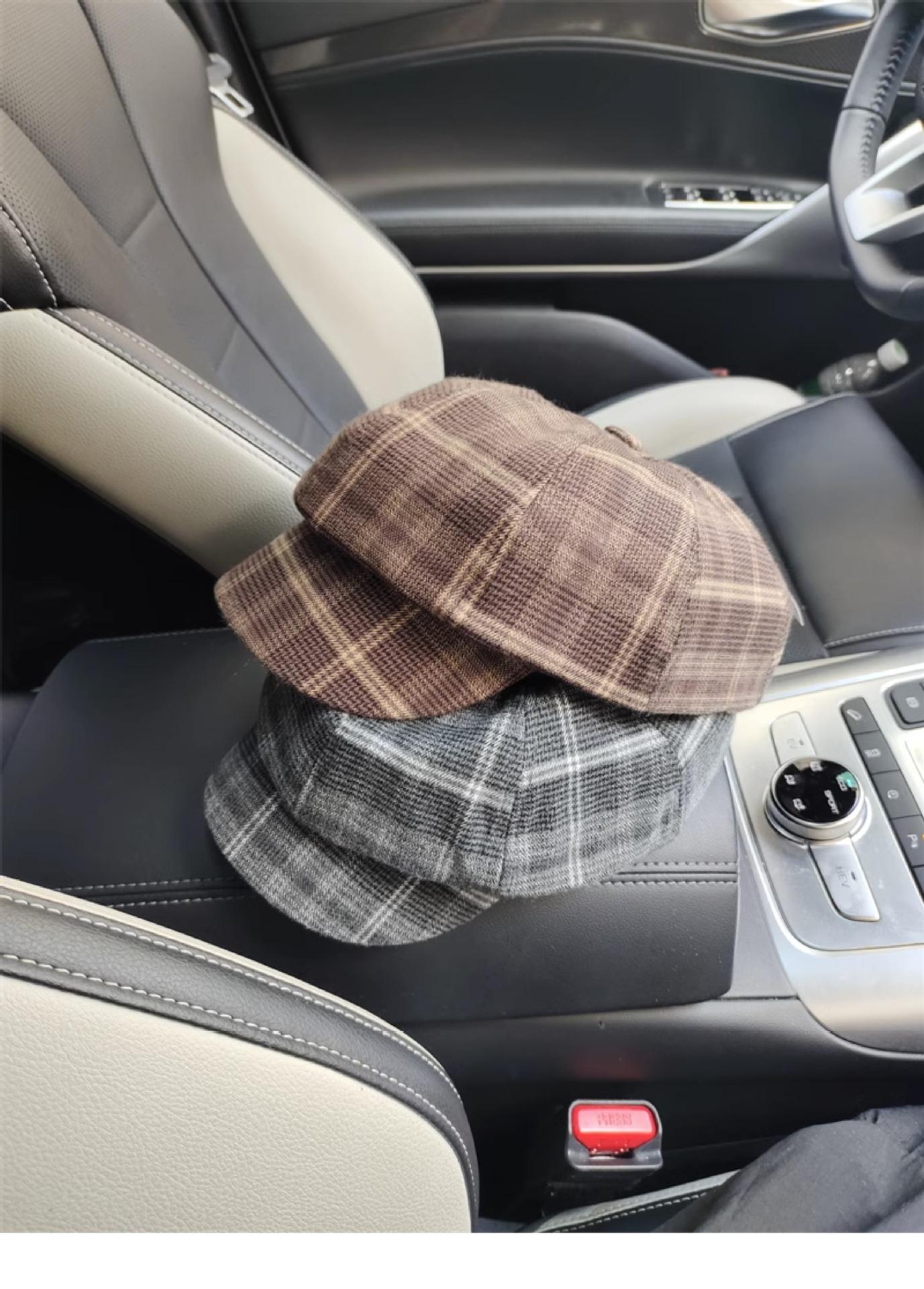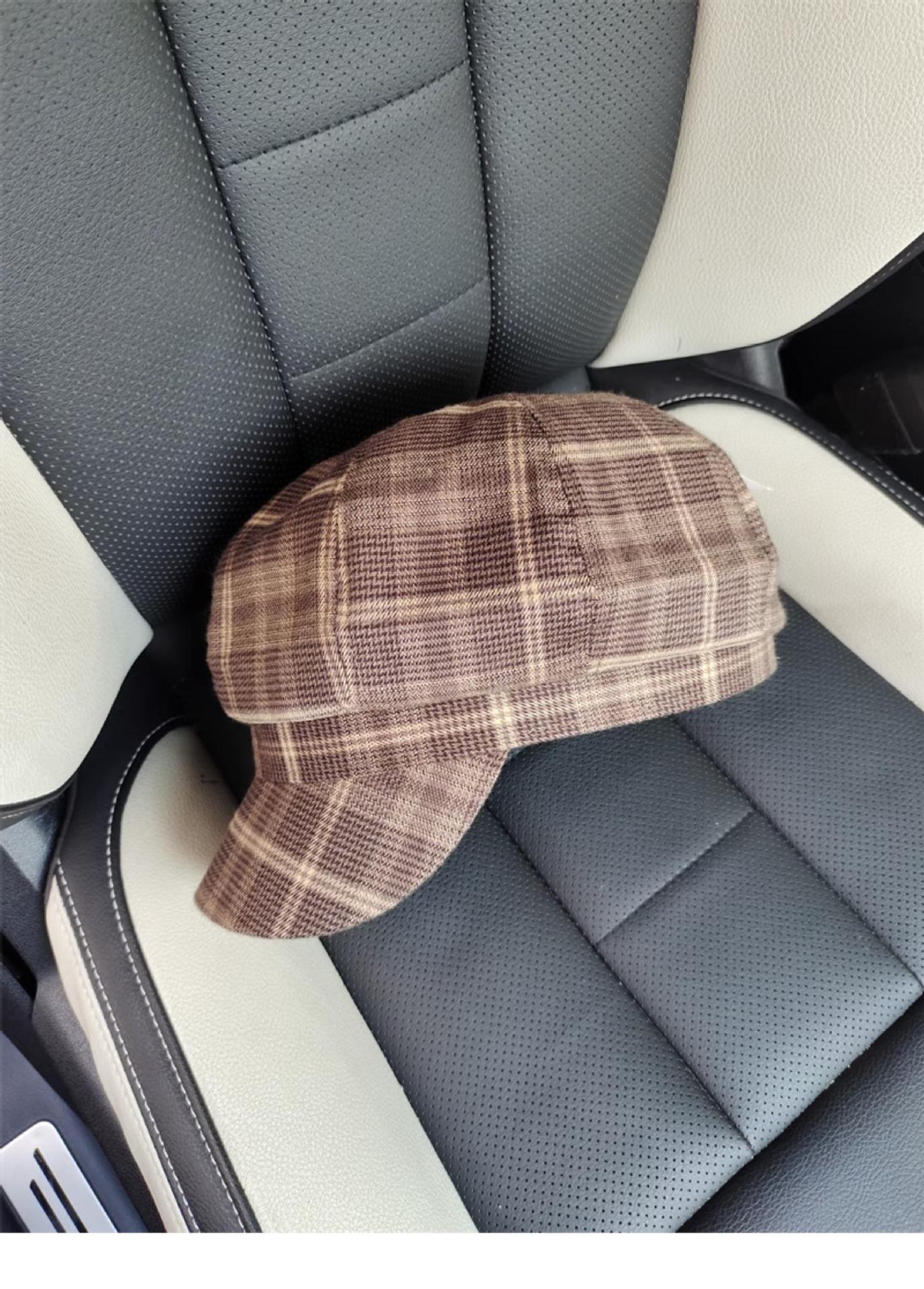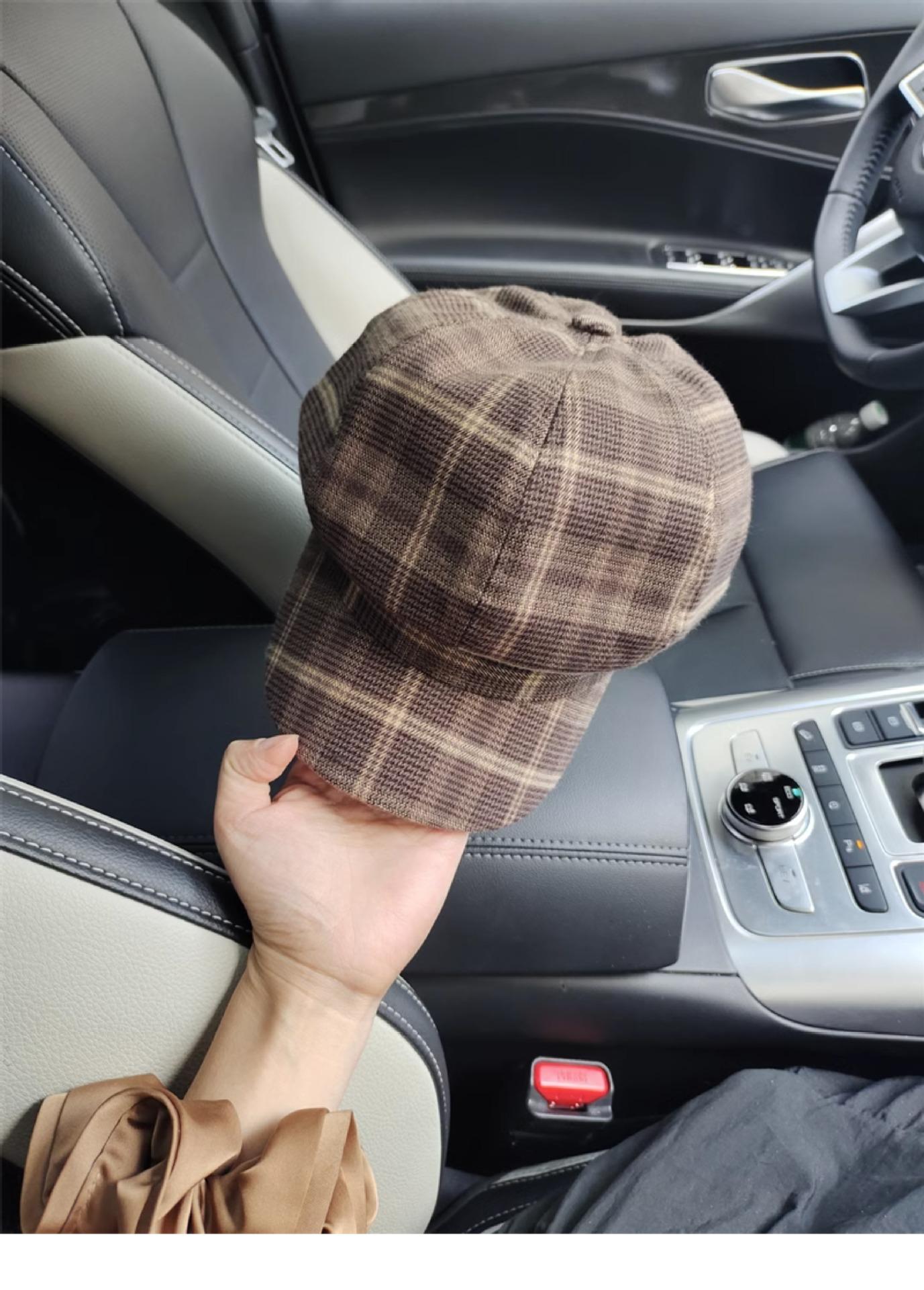 Nuevo sombrero octogonal marrón de estilo japonés para primavera y otoño. Nuevo sombrero de pintor a cuadros, sombrero británico, boina retro de nicho para mujer.