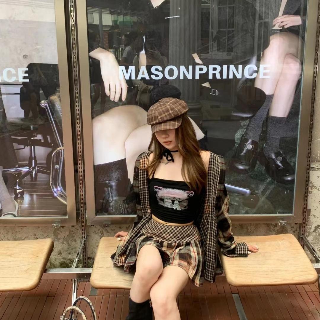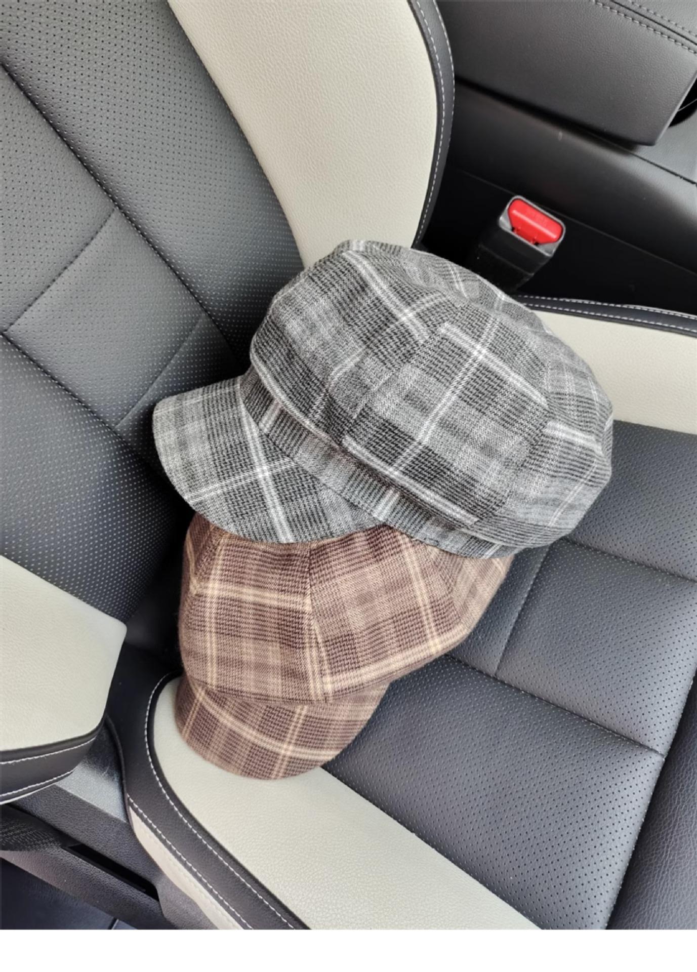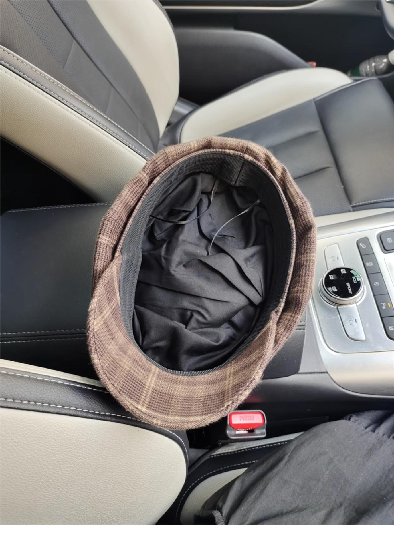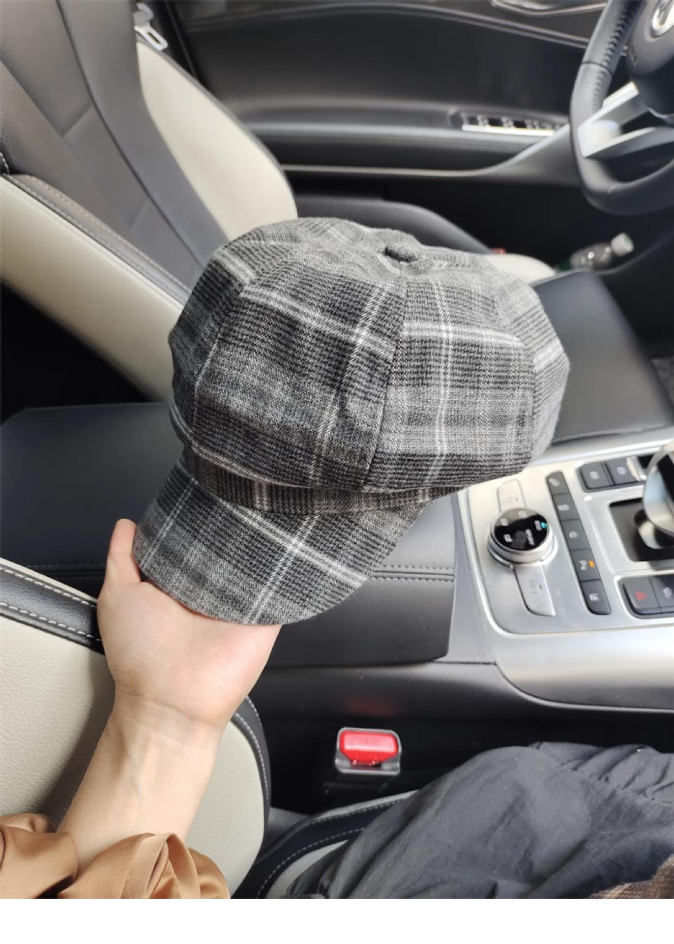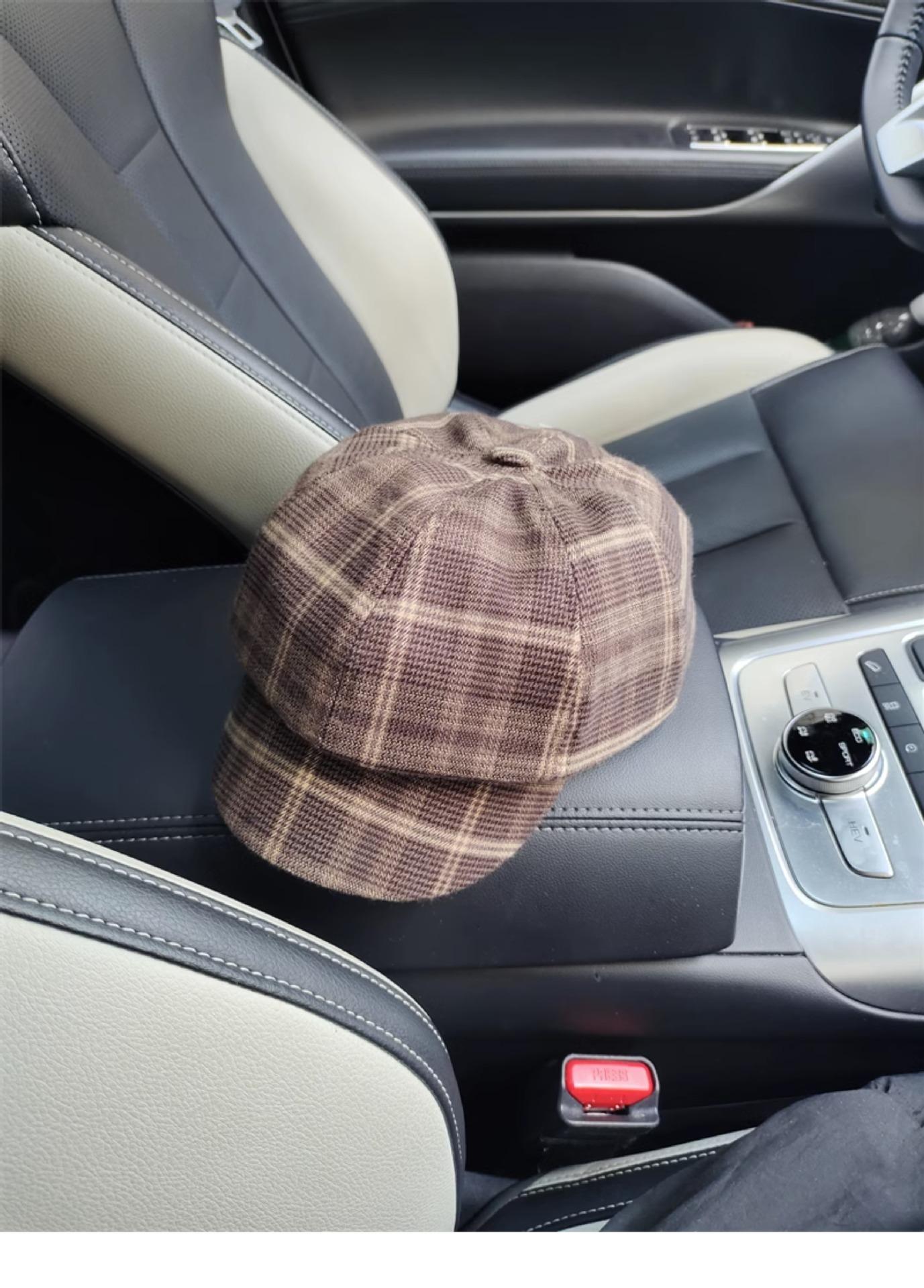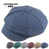 Nuevo sombrero octogonal marrón de estilo japonés para primavera y otoño. Nuevo sombrero de pintor a cuadros, sombrero británico, boina retro de nicho para mujer.