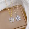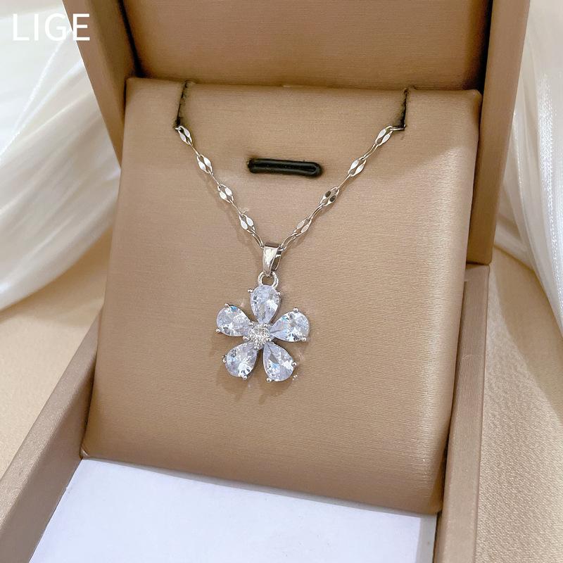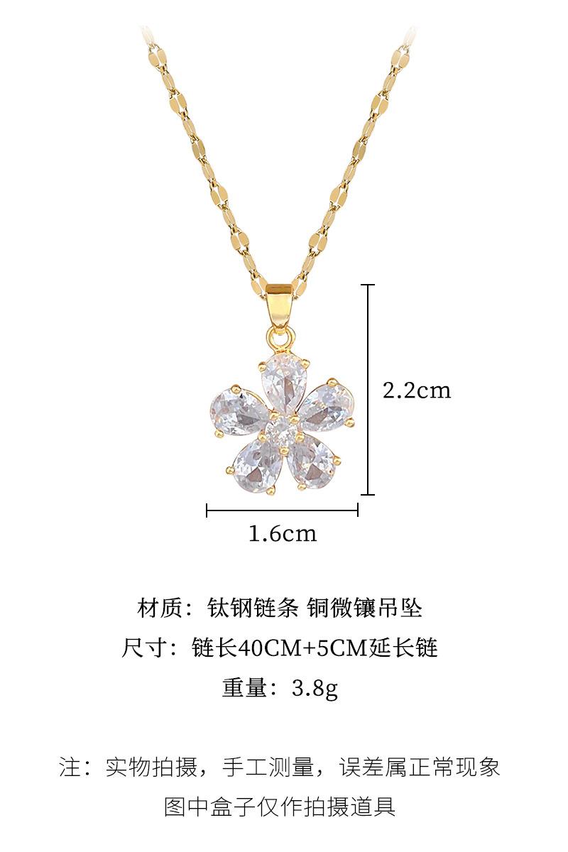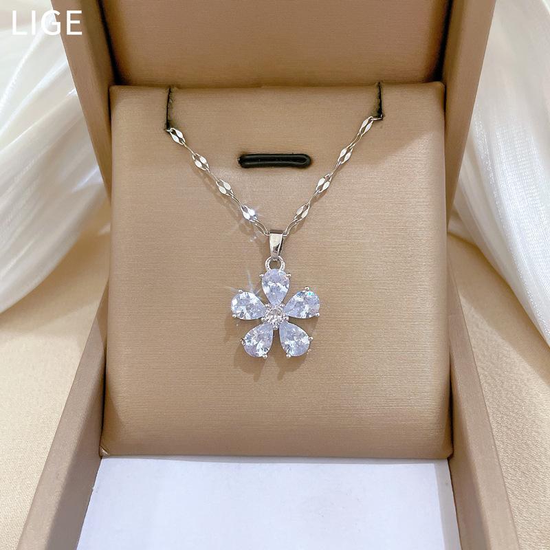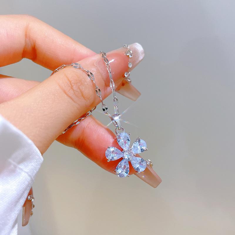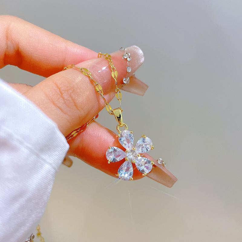 [Acero de Titanio] Flor de Cinco Pétalos Lujo Accesible Elegante Precioso Collar de Diamantes Completos Femenino Celebridad de Internet Versátil Cadena para Clavícula Cadena de Acero de Titanio