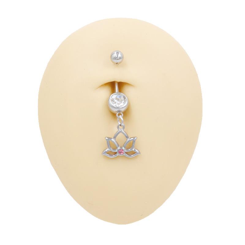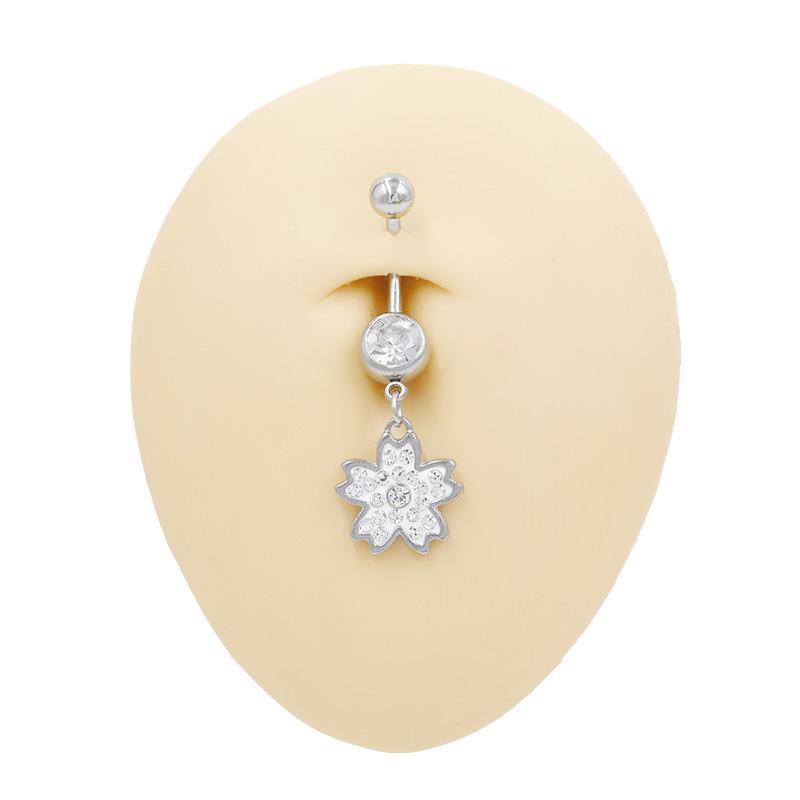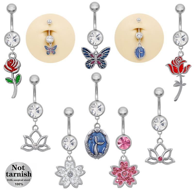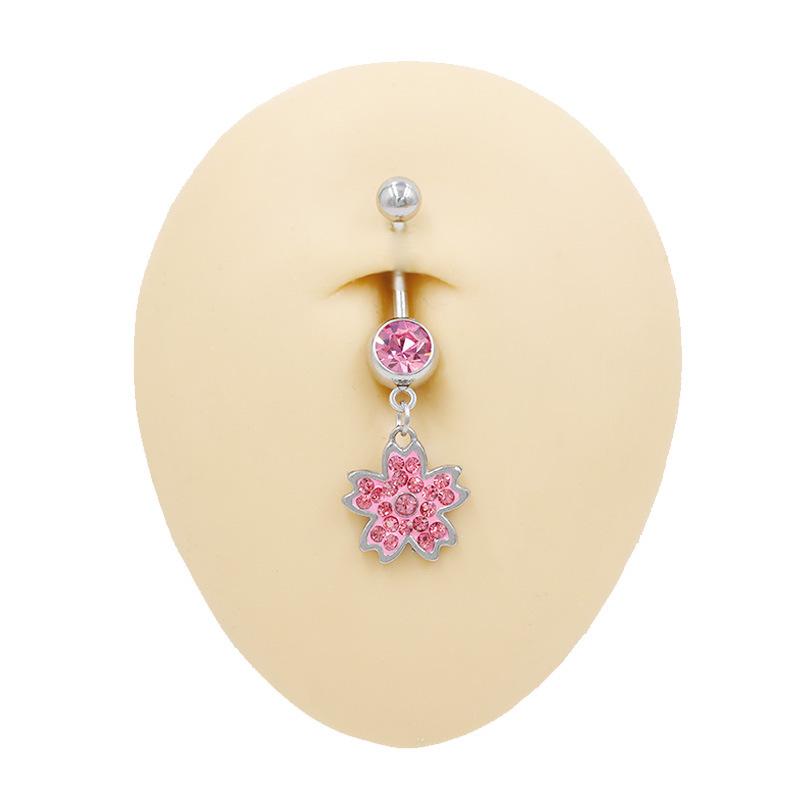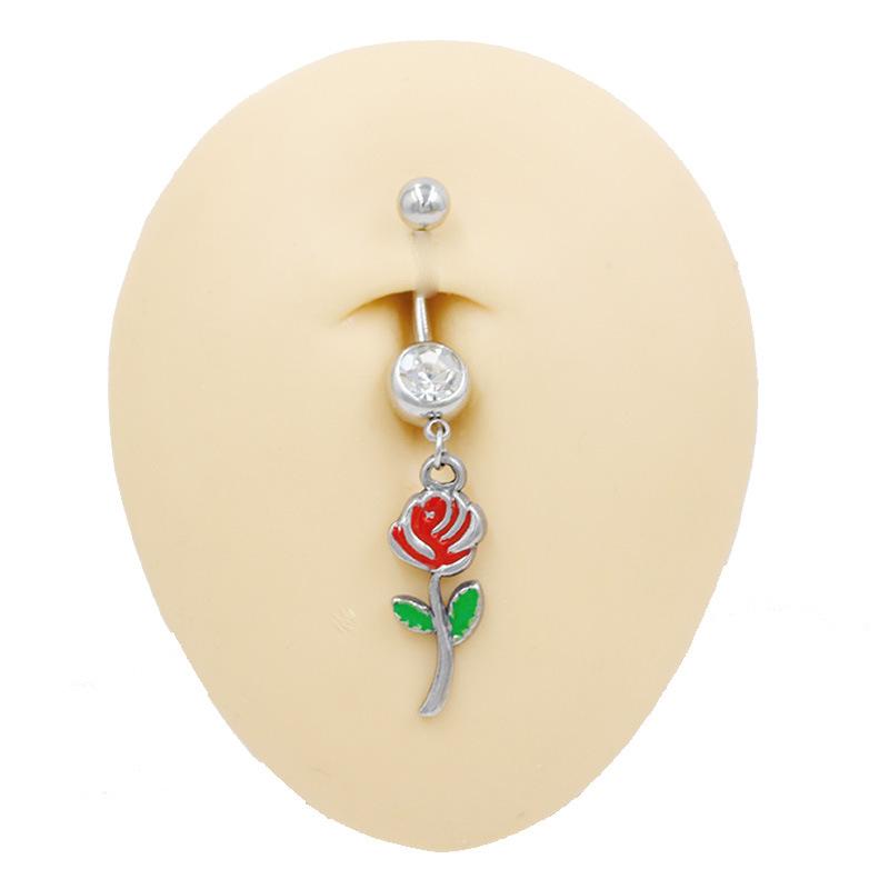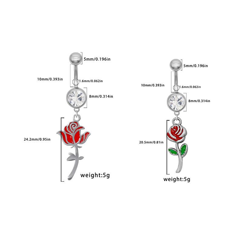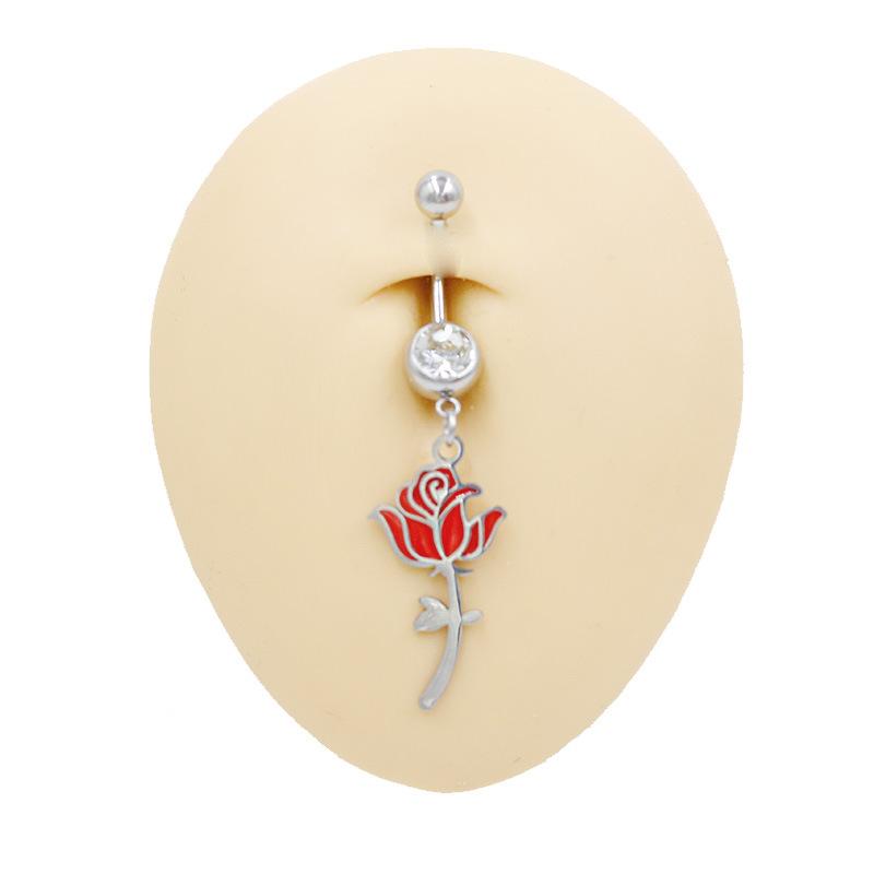 Gebe Piercing de Ombligo Europeo y Americano Transfronterizo de Acero Inoxidable con Colgante de Rosa Roja Joyería Perforante Uña para Ombligo Anillo para Ombligo