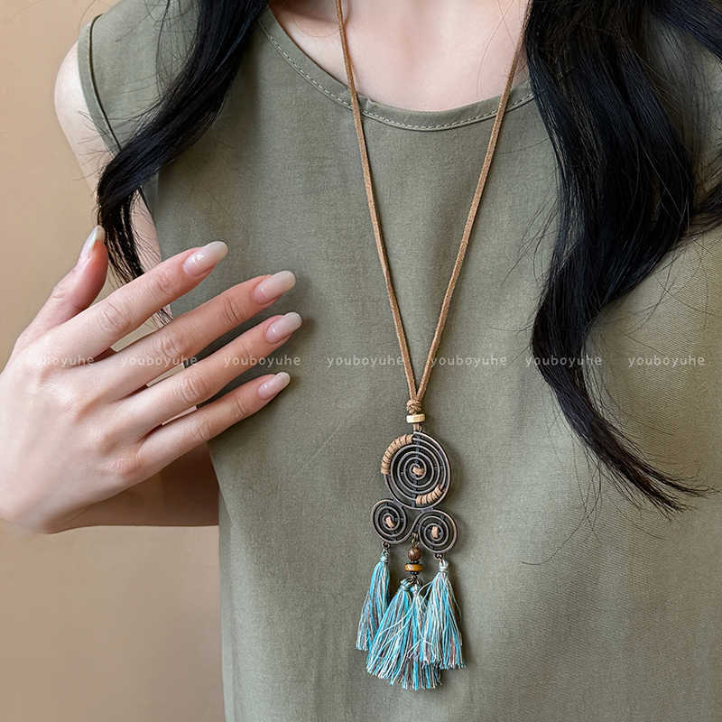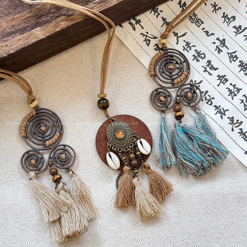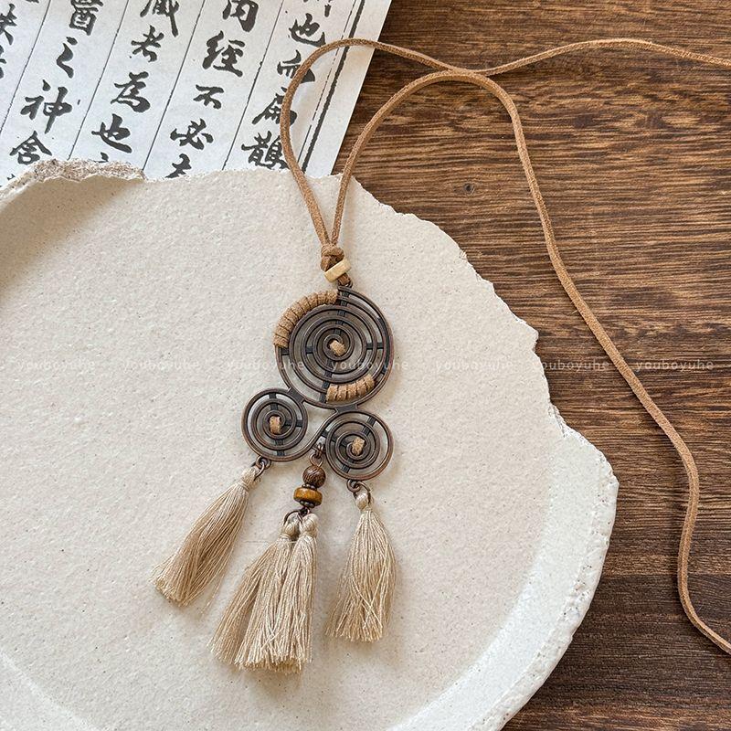 Collar con Colgante de Borla Redonda de Cuero Estilo Étnico Retro Cadena Clavicular Nicho Versátil Joyería de Moda al Por Mayor