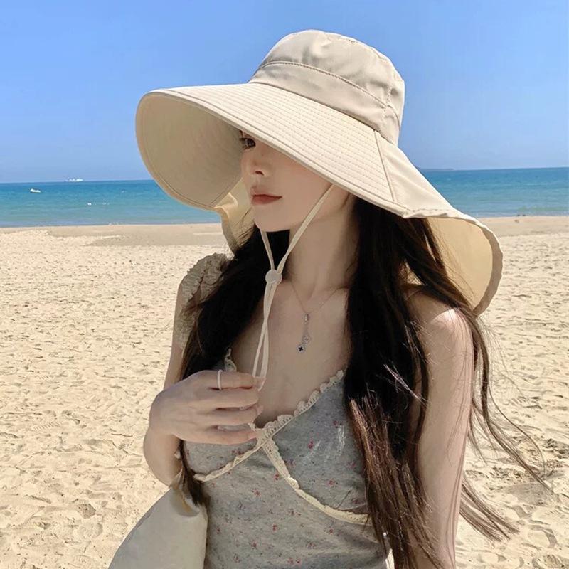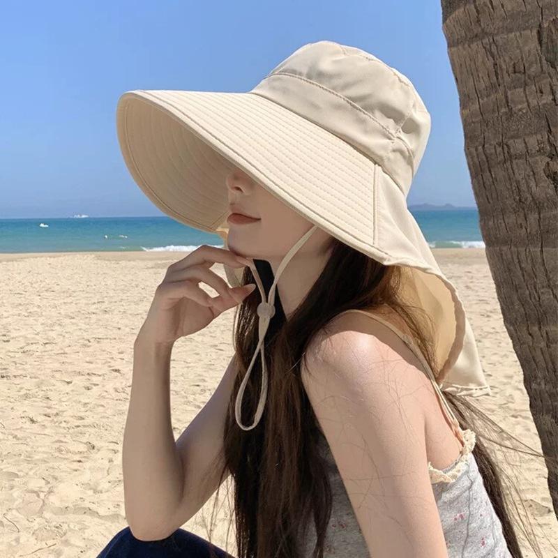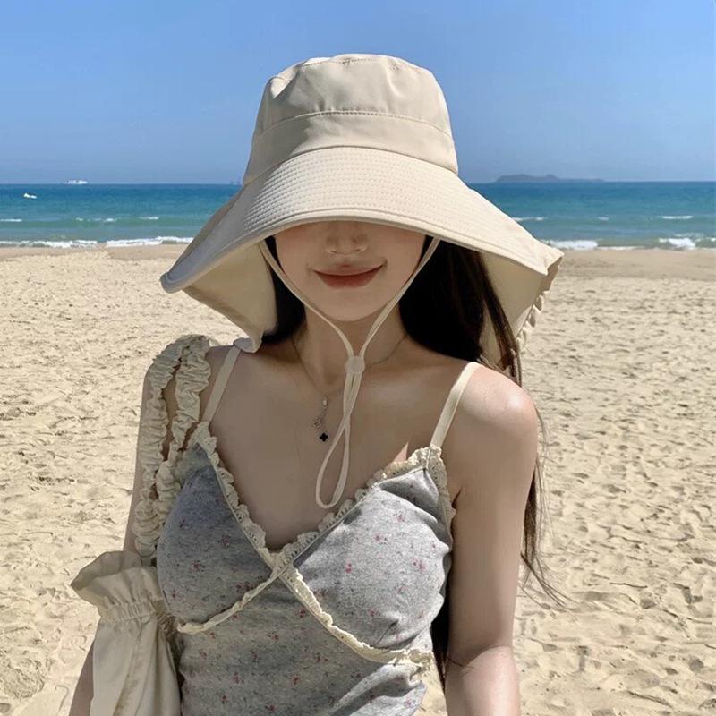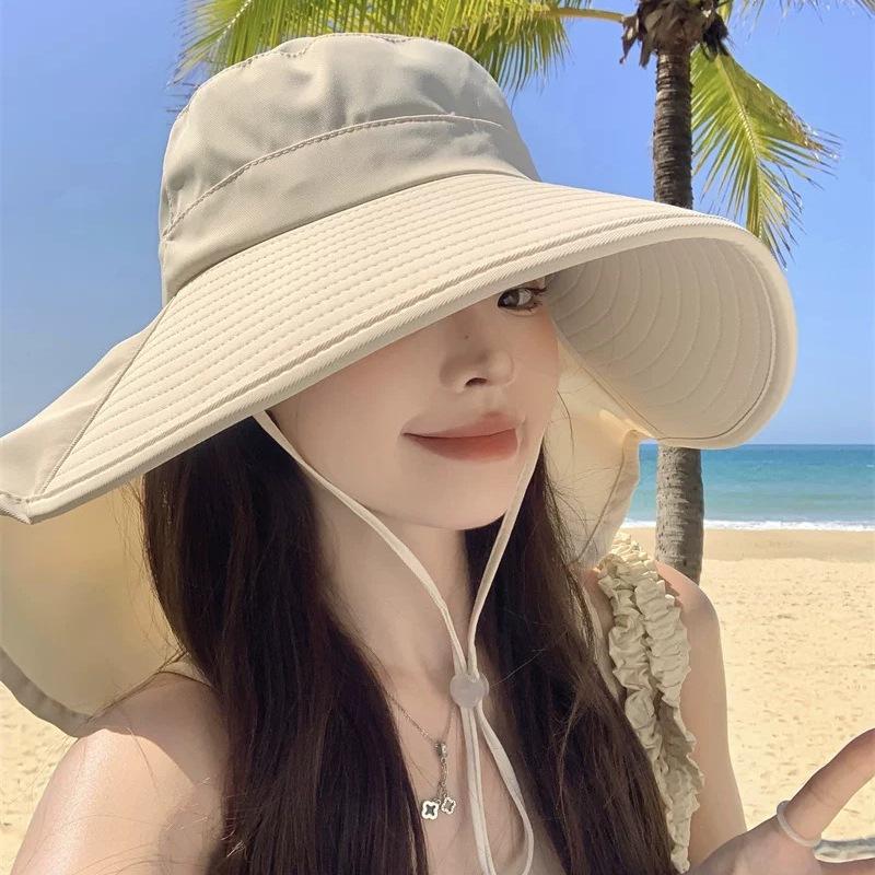 Sombrero de Pescador para Mujer Verano Ala Ancha Protección Solar y Sombrero de Sombra Viaje al Aire Libre Protección UV Sombrero para el Sol Protección de Cuello Sombrero Cubeta
