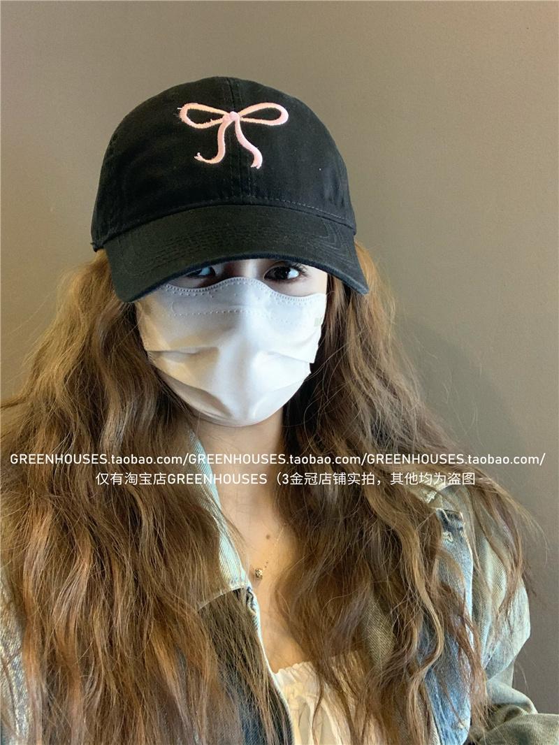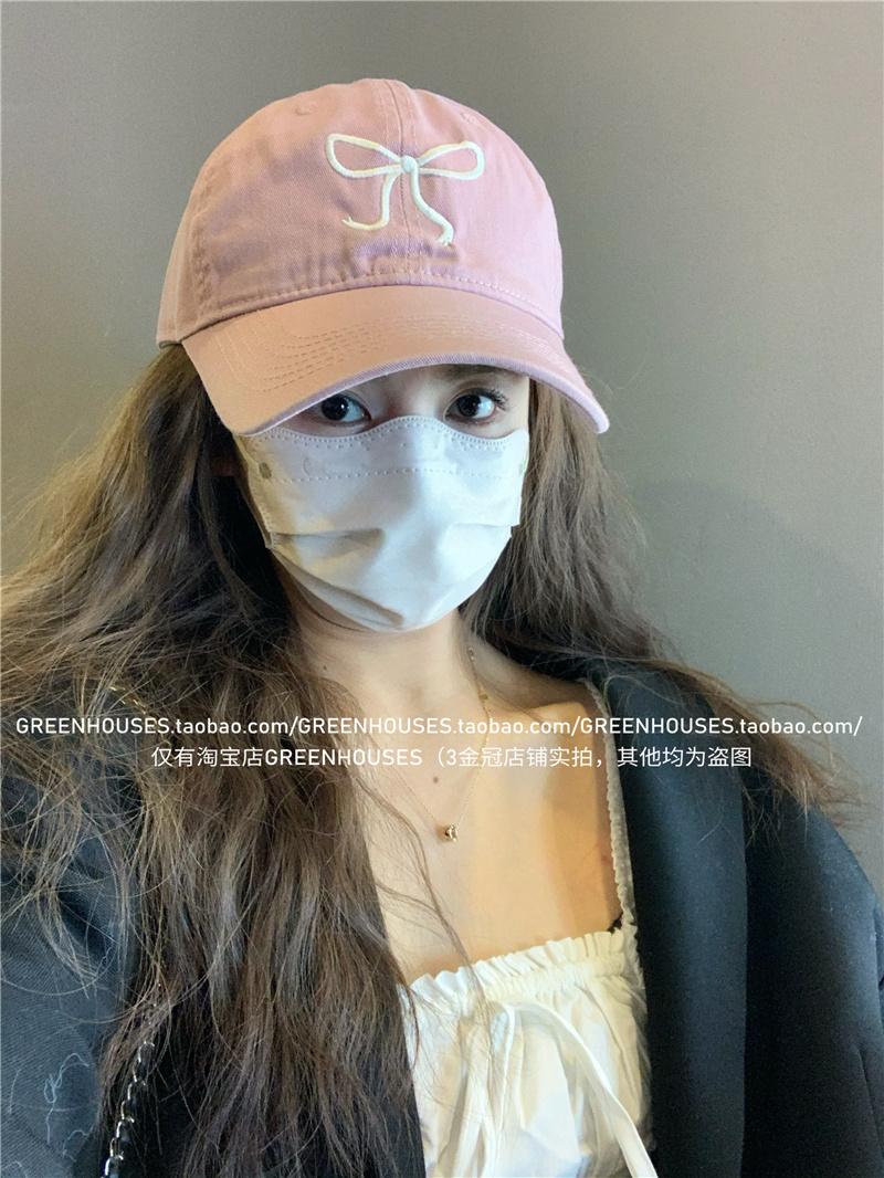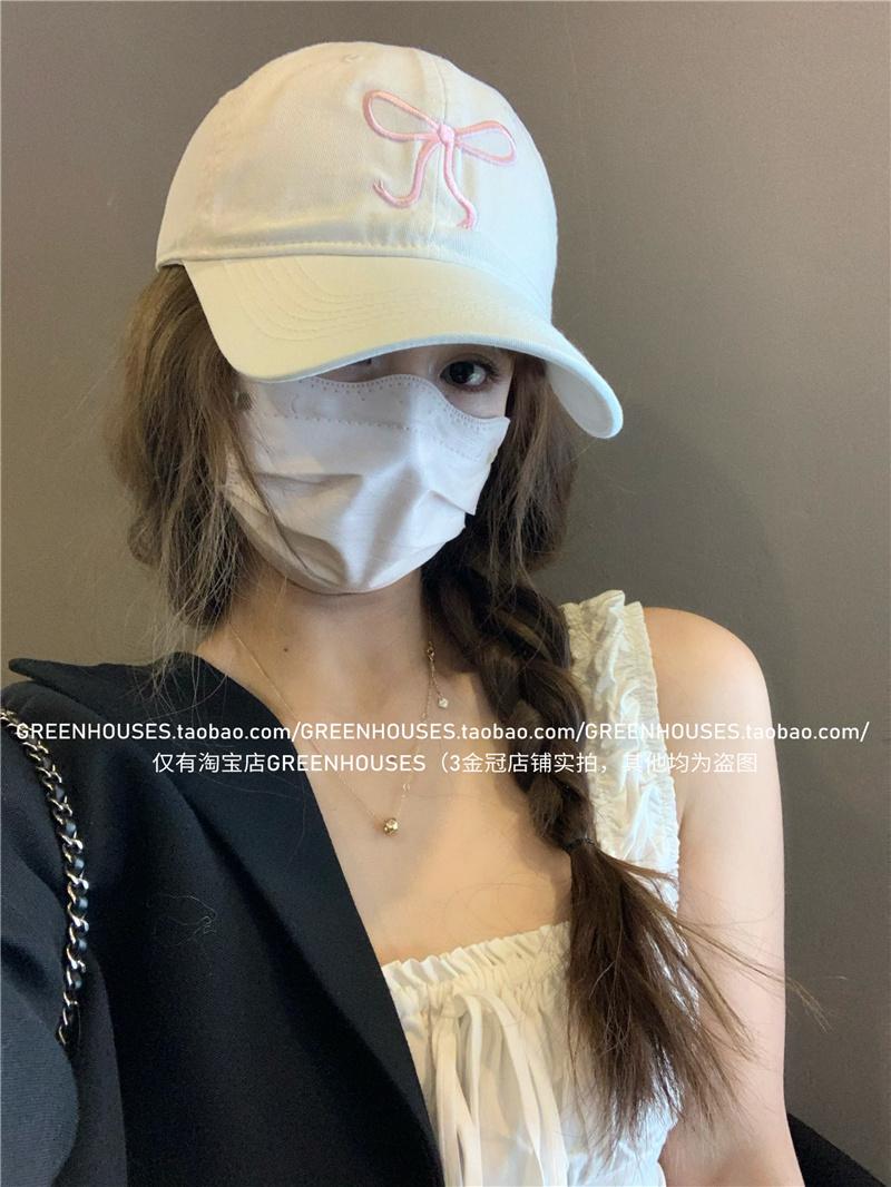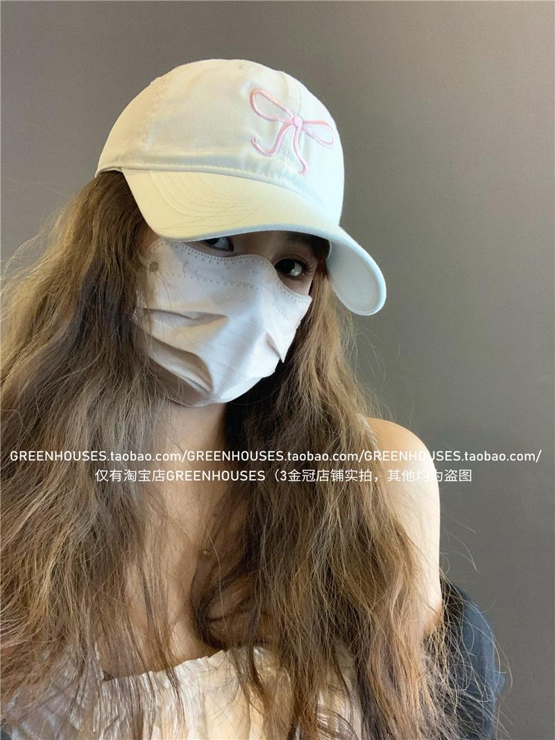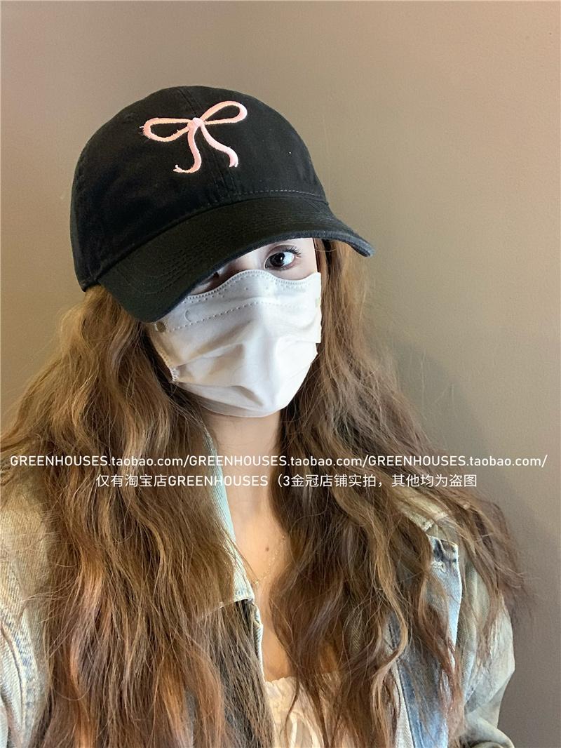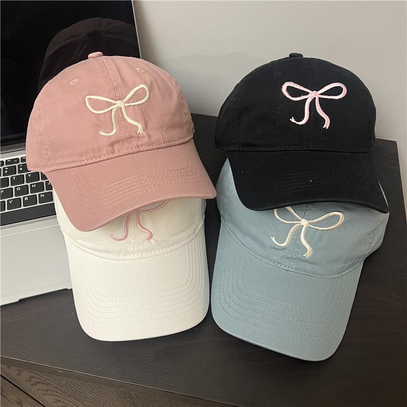 Gorra de béisbol bordada con lazo estilo ins de Corea del Sur para mujer primavera y verano nuevo dulce protección solar sombrero para el sol gorra con visera marea