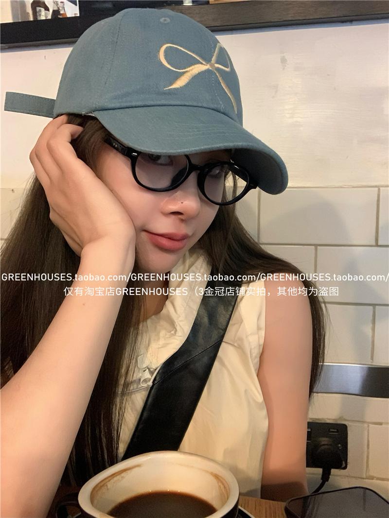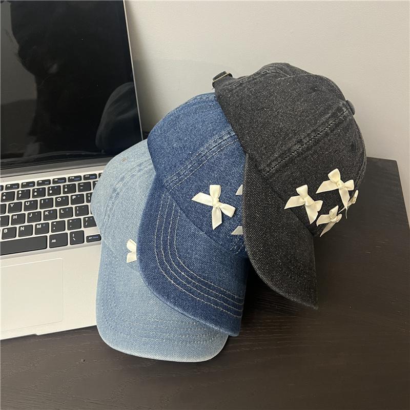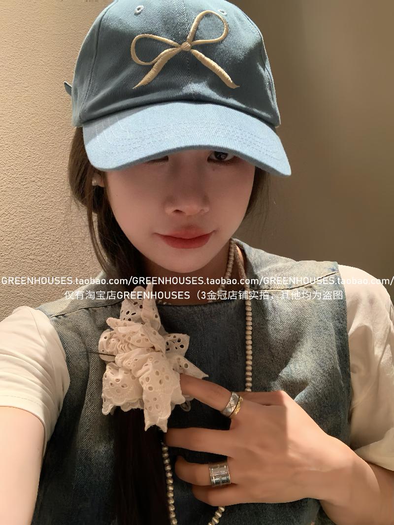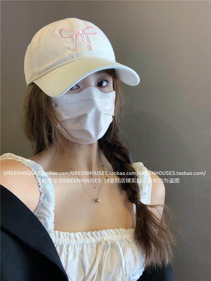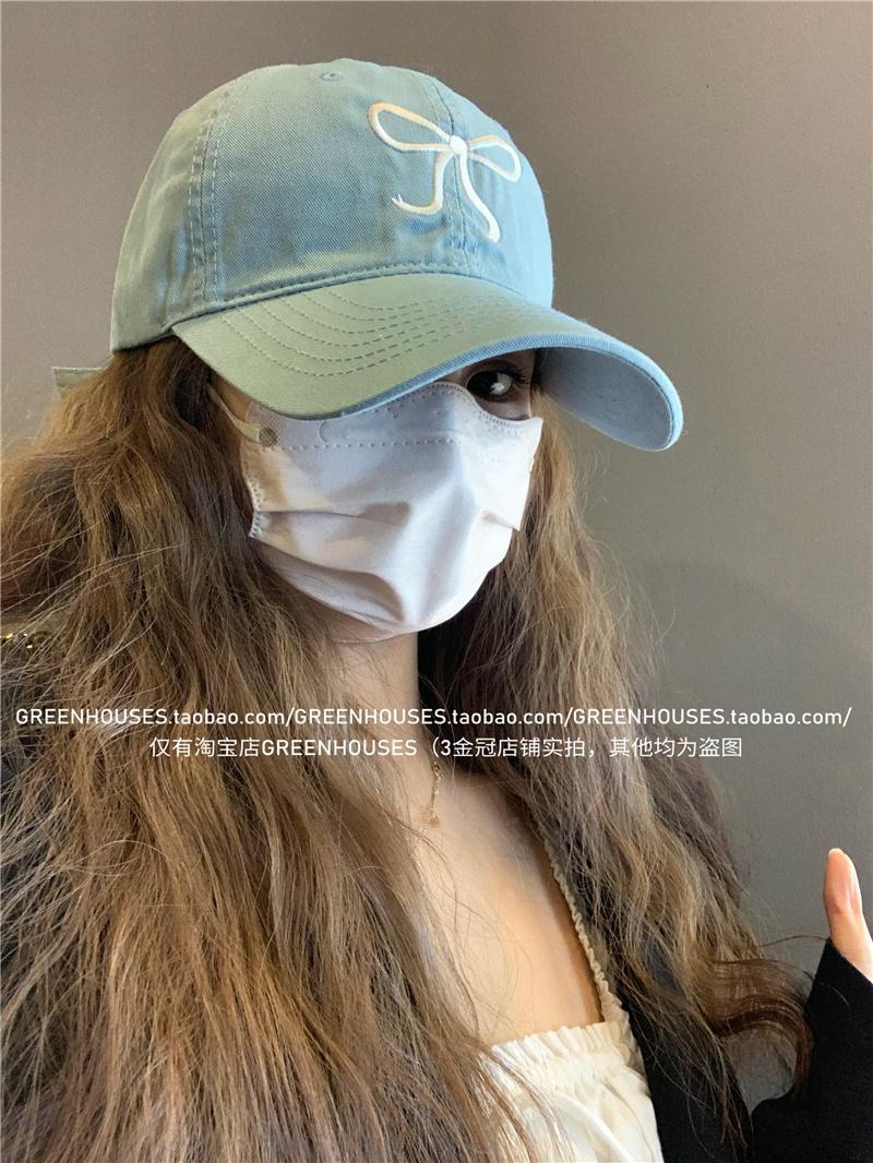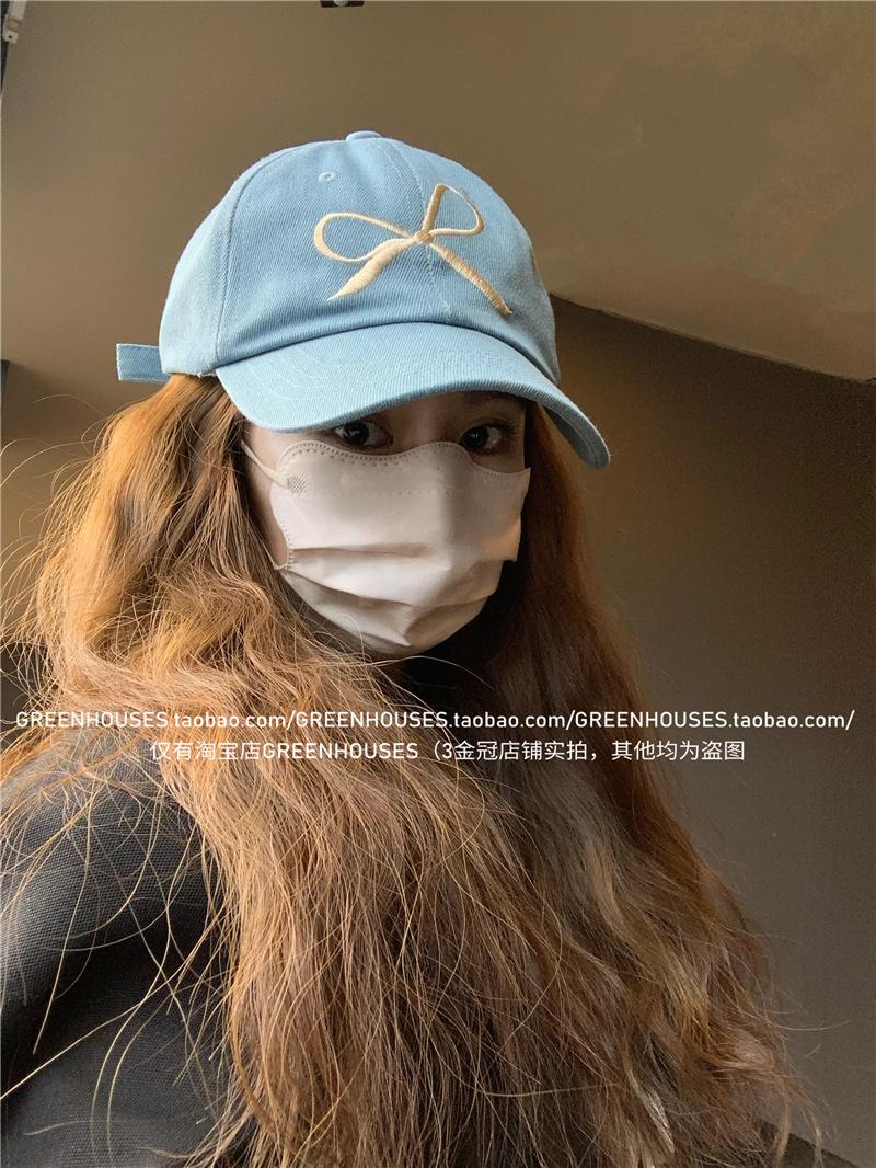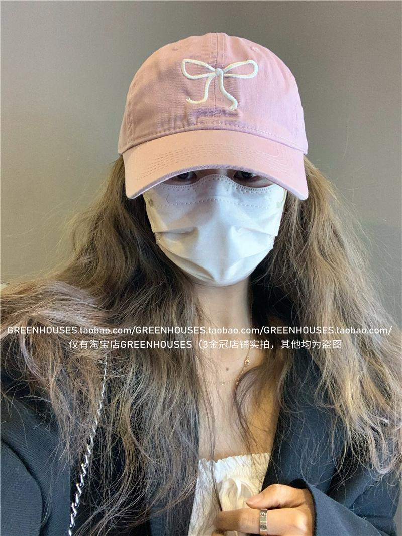 Gorra de béisbol bordada con lazo estilo ins de Corea del Sur para mujer primavera y verano nuevo dulce protección solar sombrero para el sol gorra con visera marea