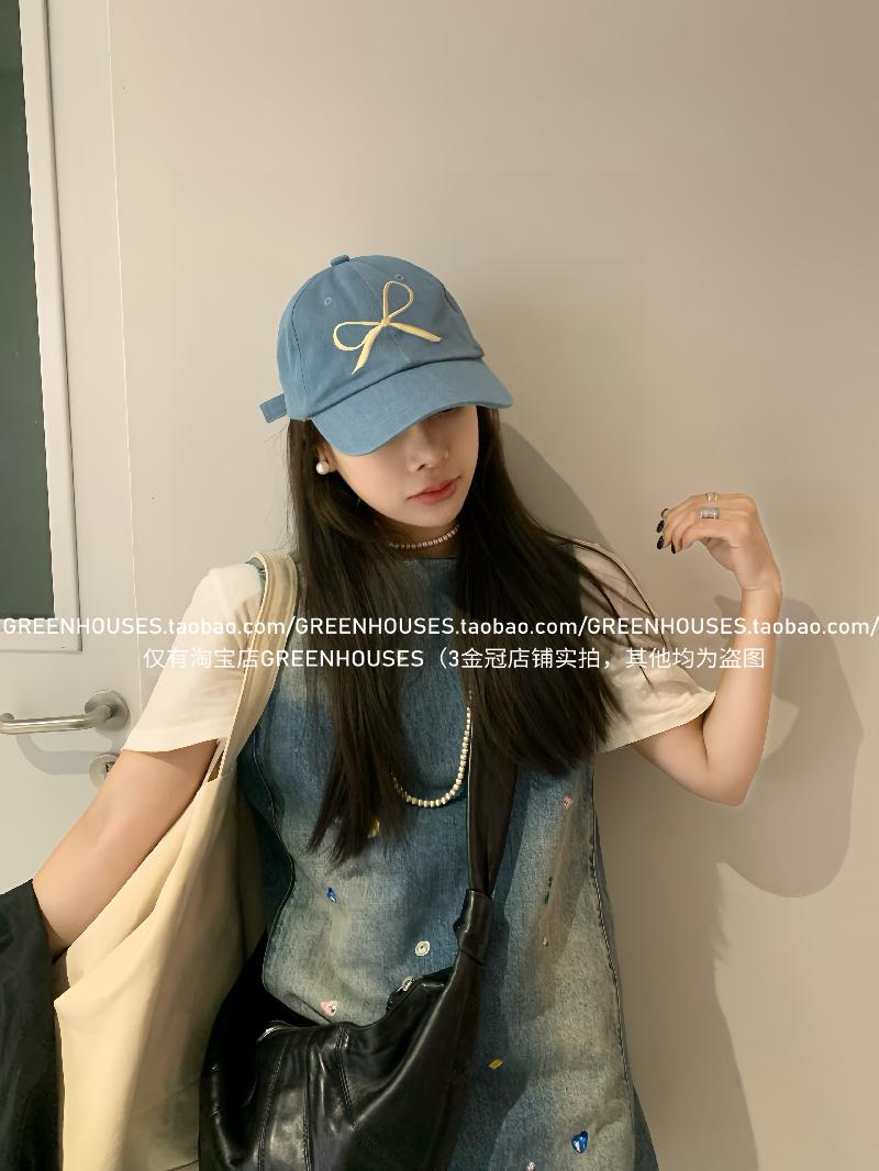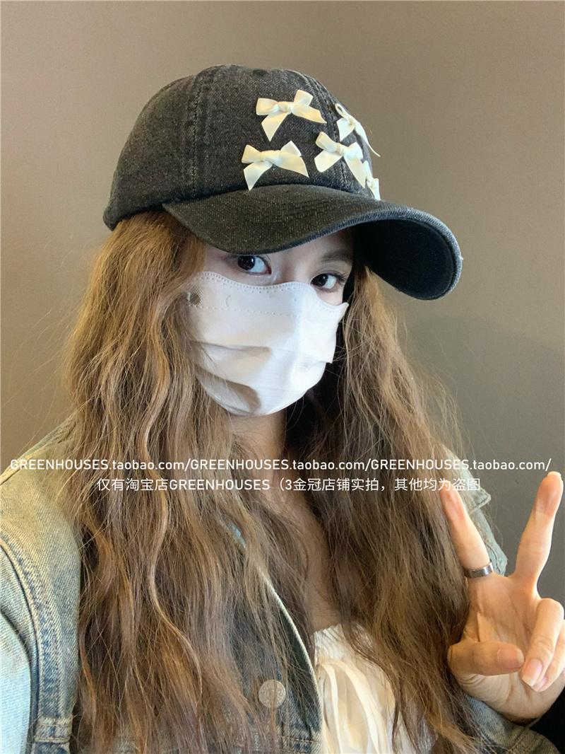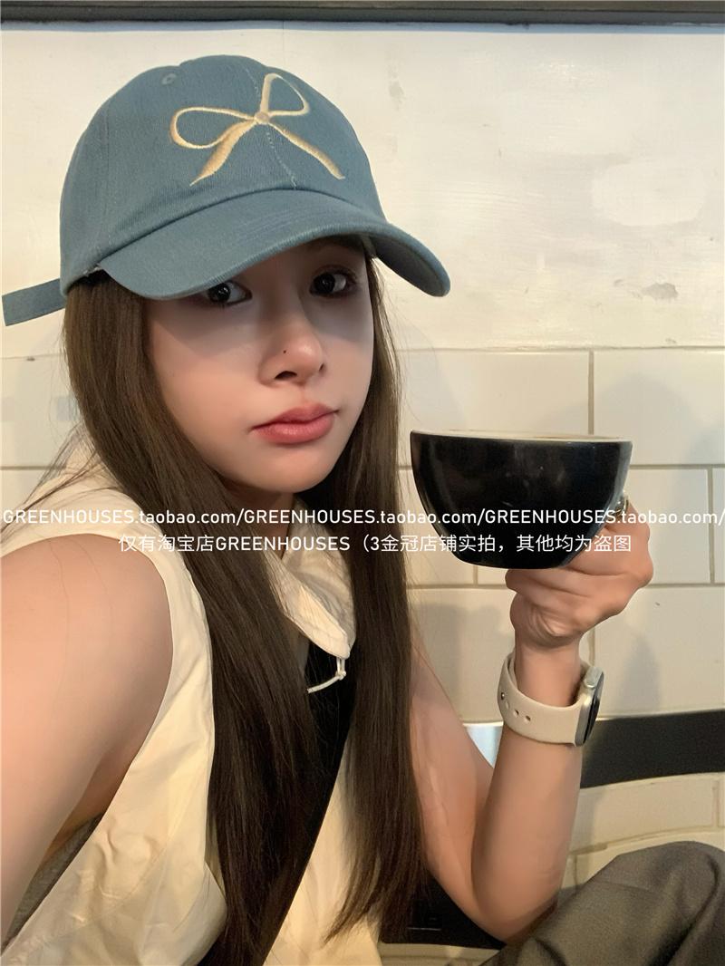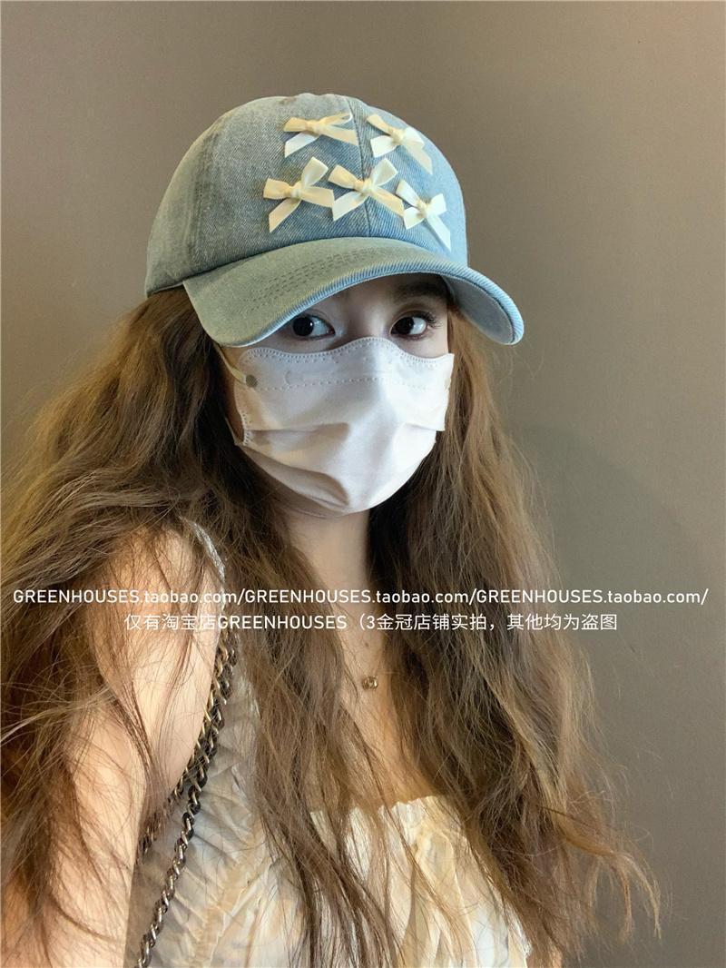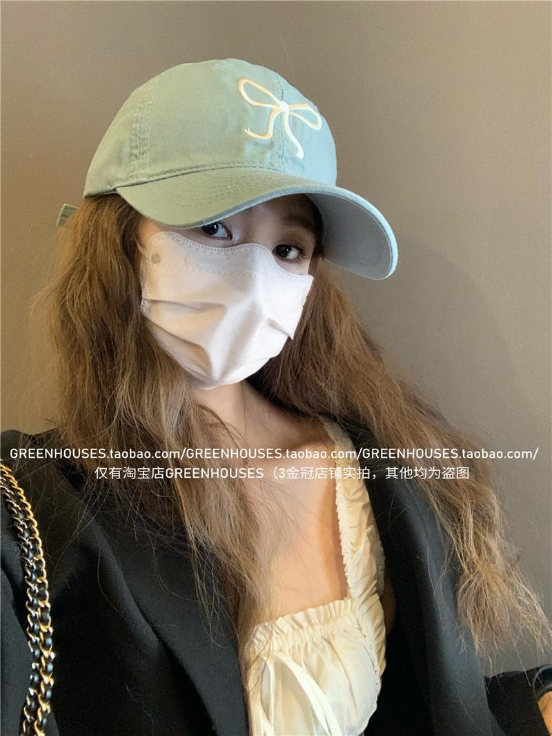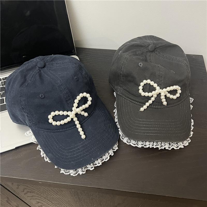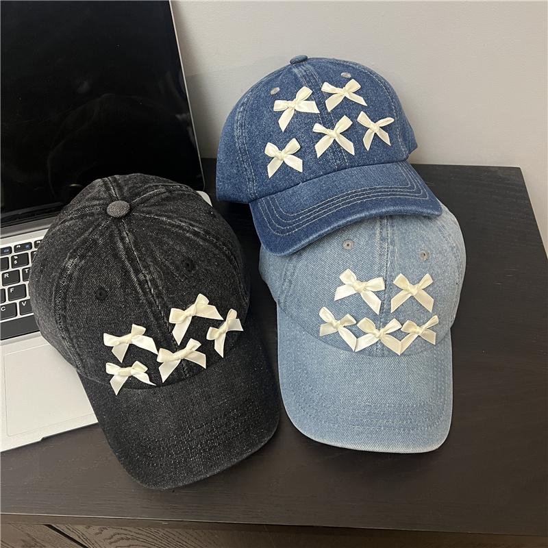 Gorra de béisbol bordada con lazo estilo ins de Corea del Sur para mujer primavera y verano nuevo dulce protección solar sombrero para el sol gorra con visera marea