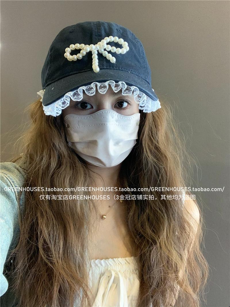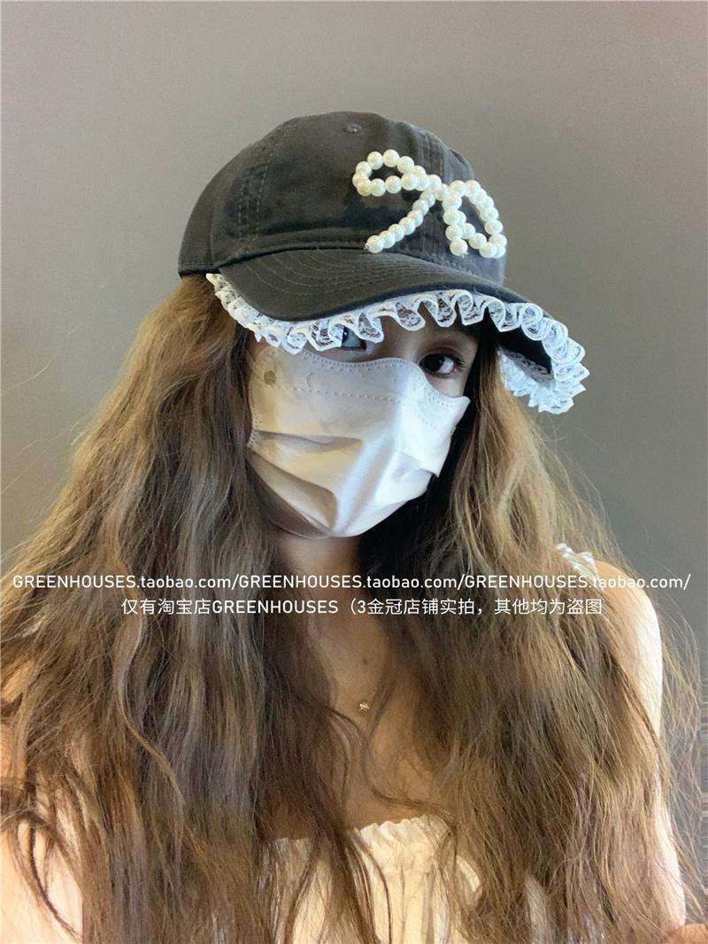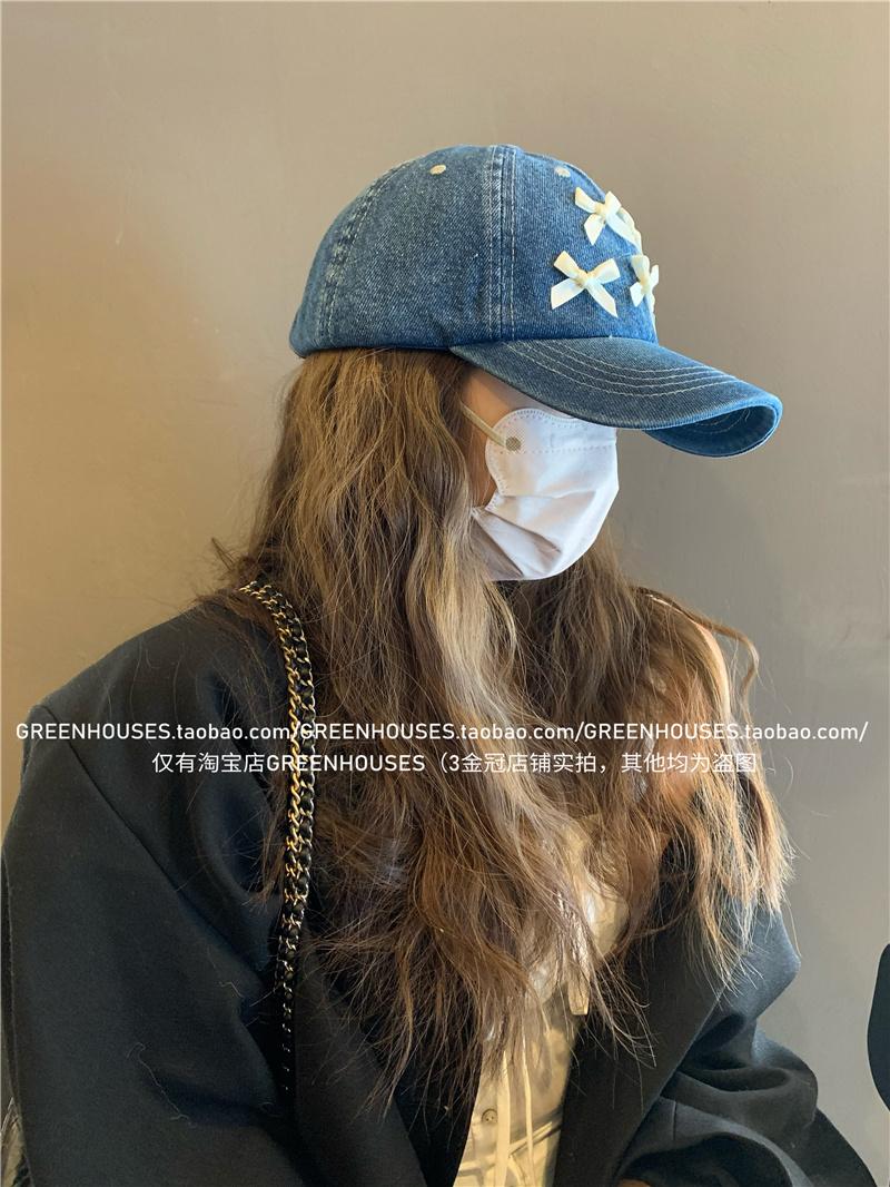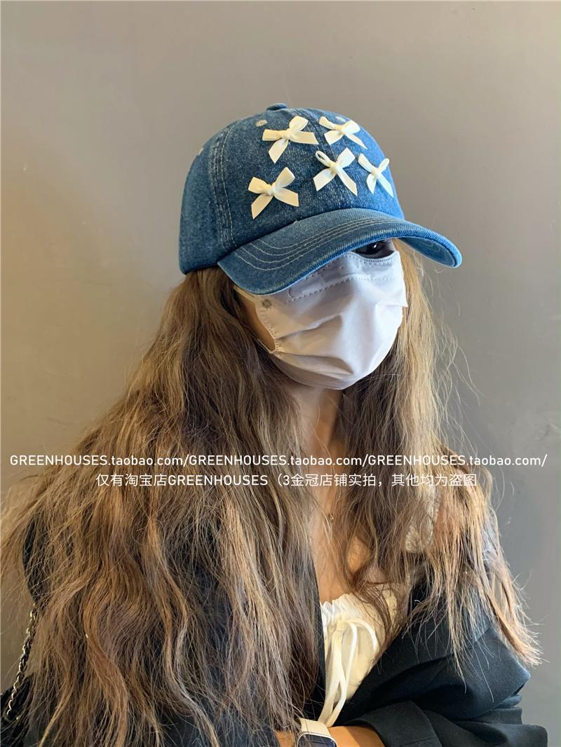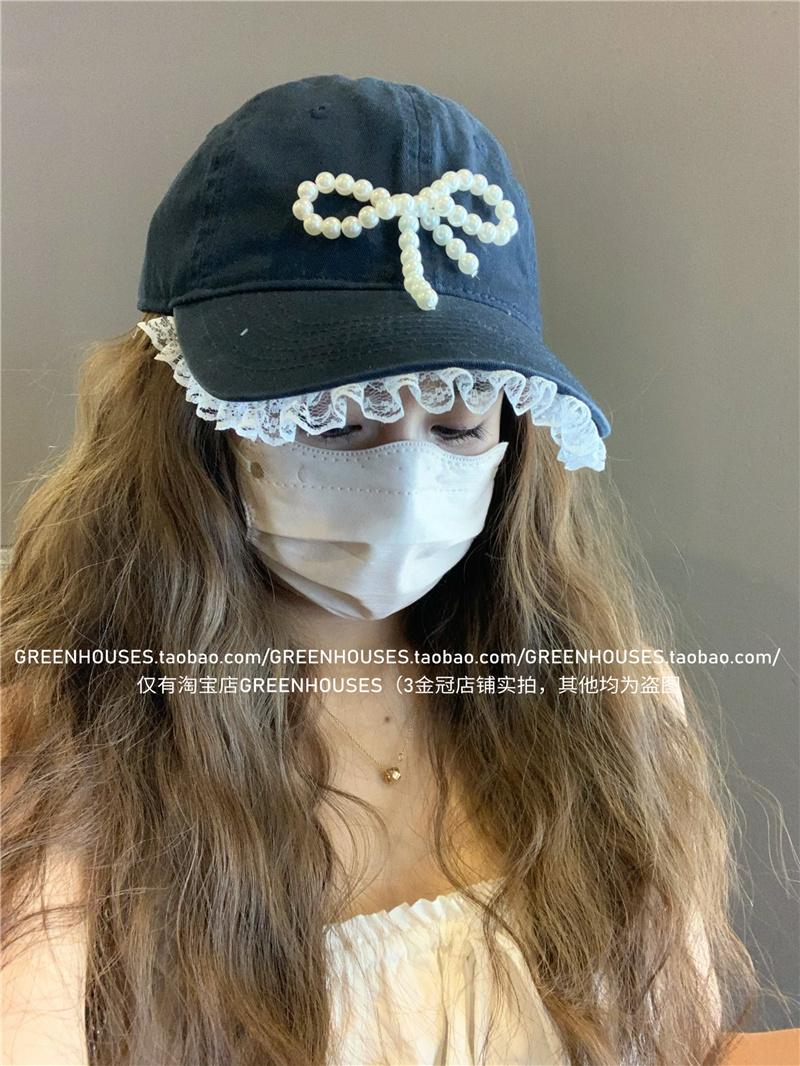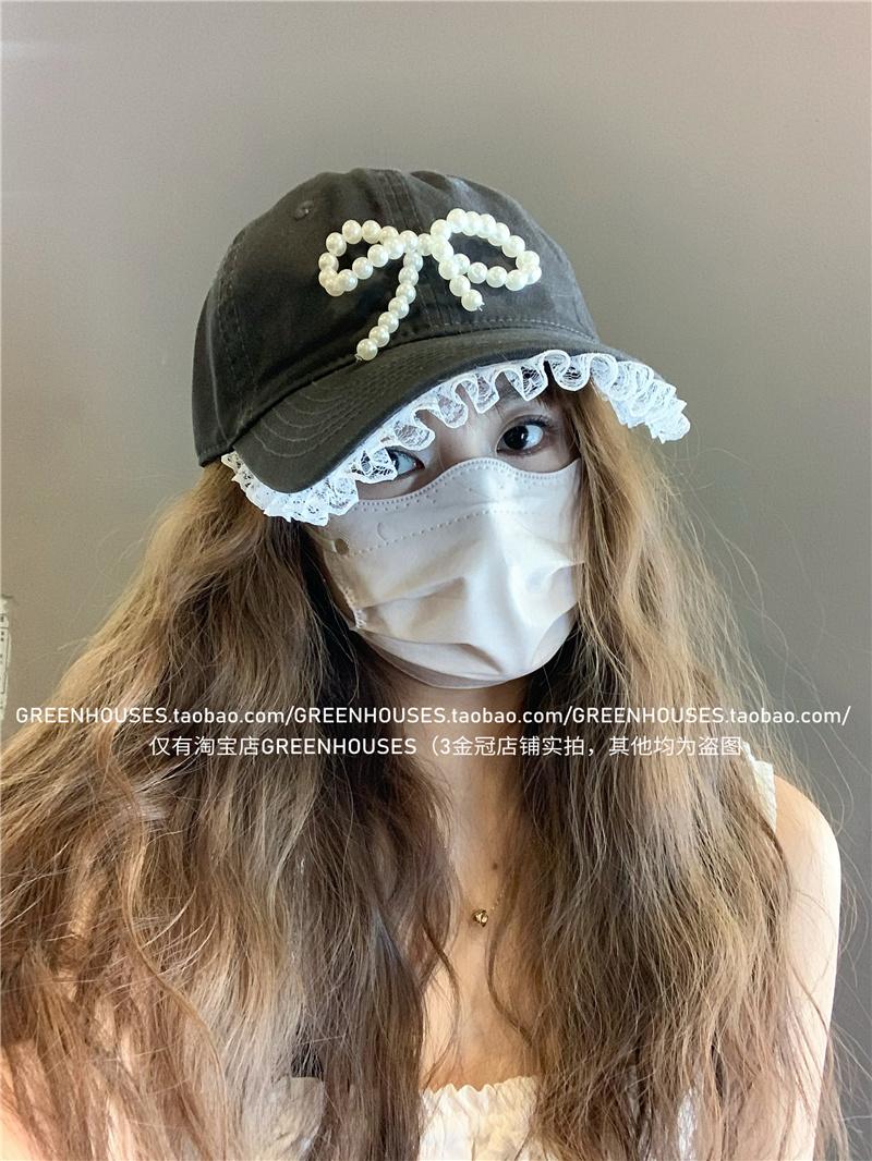 Gorra de béisbol bordada con lazo estilo ins de Corea del Sur para mujer primavera y verano nuevo dulce protección solar sombrero para el sol gorra con visera marea