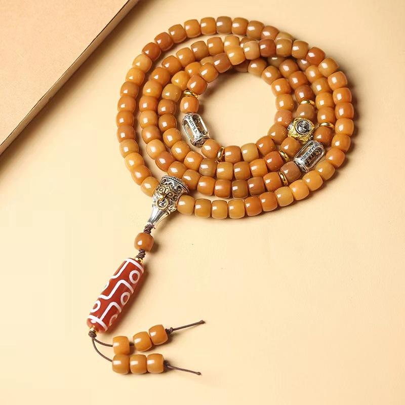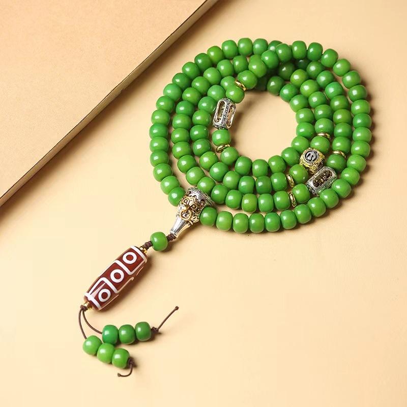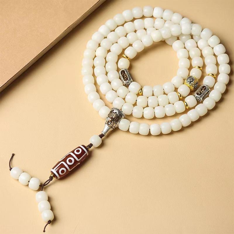 Pulsera multicapa de raíz de Bodhi de jade blanco con 108 cuentas budistas, pulsera de semillas de Bodhi de loto, cuentas de oración de juguete cultural, collar de los cinco elementos