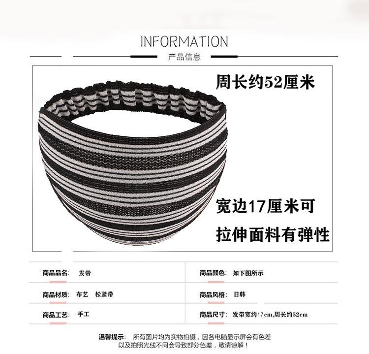 Tela rayada borde ancho cubriendo canas cabello roto elástico banda para el cabello celebridad de internet lavado de cara simple para presionar el cabello tocado pañuelo para la cabeza para mujeres