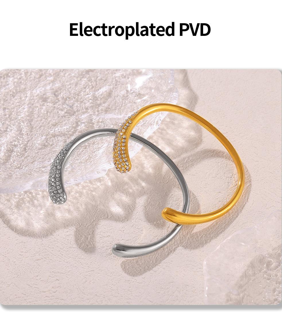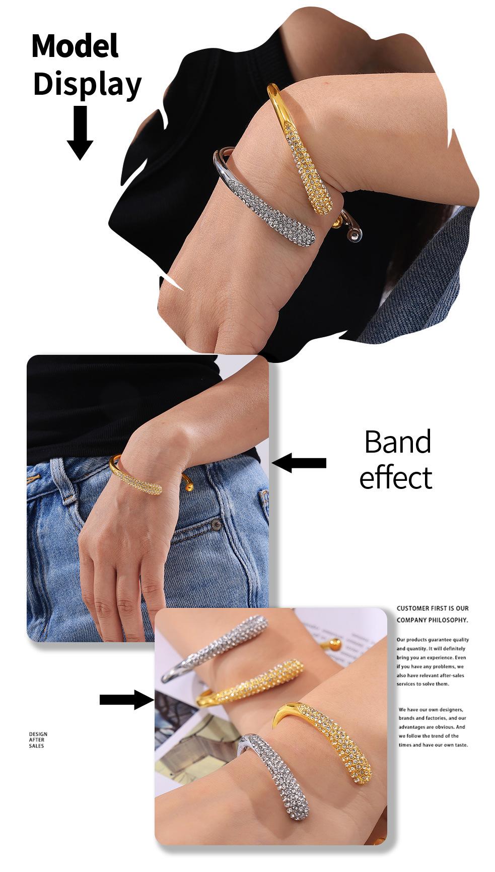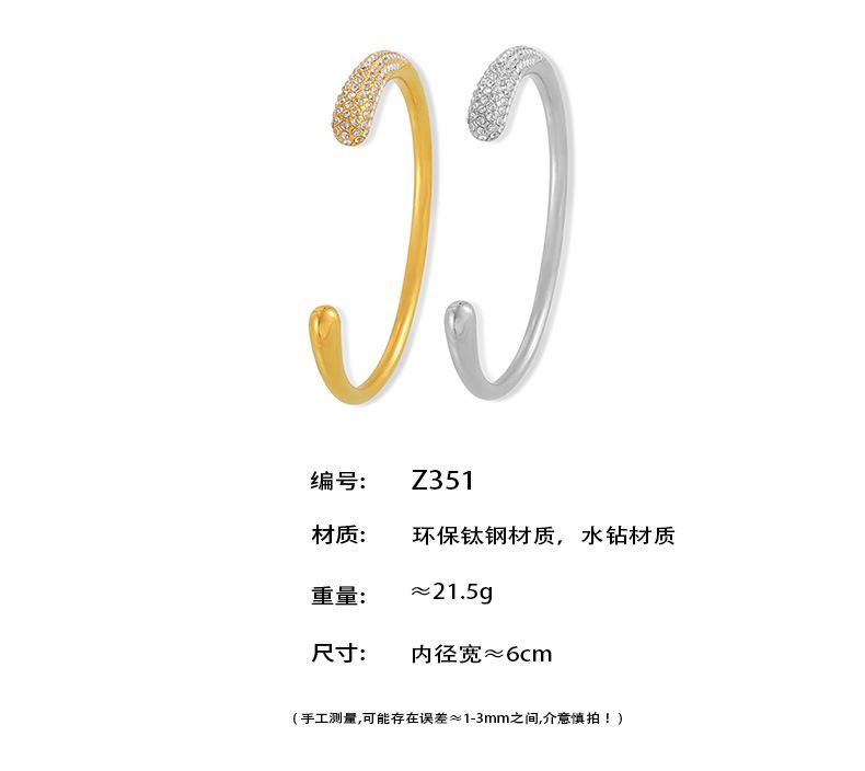 Pulsera abierta transfronteriza de moda de Europa y Estados Unidos con micro incrustaciones calientes de circonita, diseño de alta gama, acero de titanio chapado en oro de 18k.
