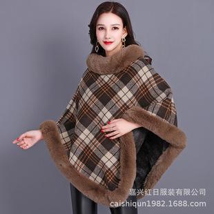 2025 Adelgazante Imitación Piel para Mujer Nuevo Cuello Redondo a Cuadros Sin Mangas Abrigo Europeo y Americano Chal Elegante de Piel de Conejo Rex con Forro Polar para Mujer
