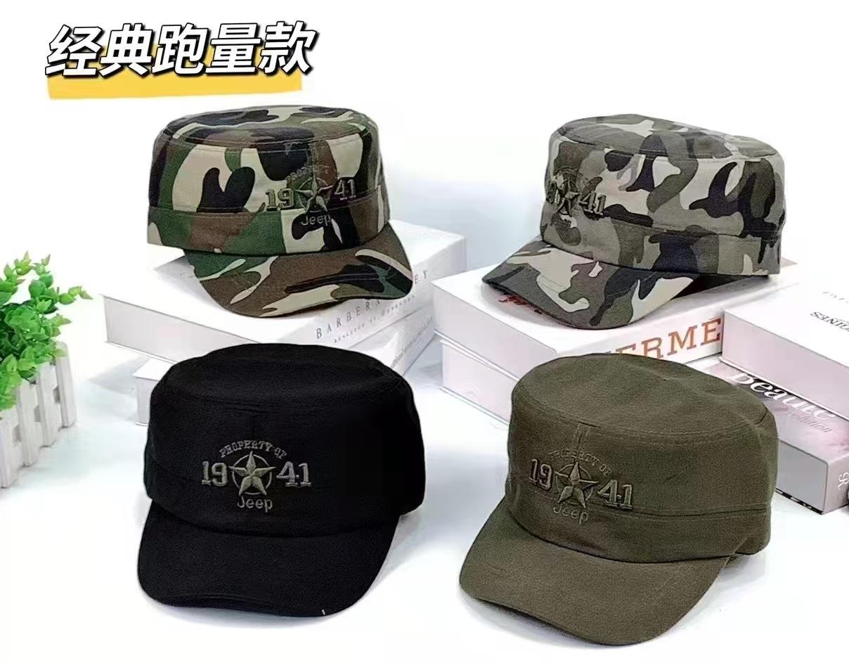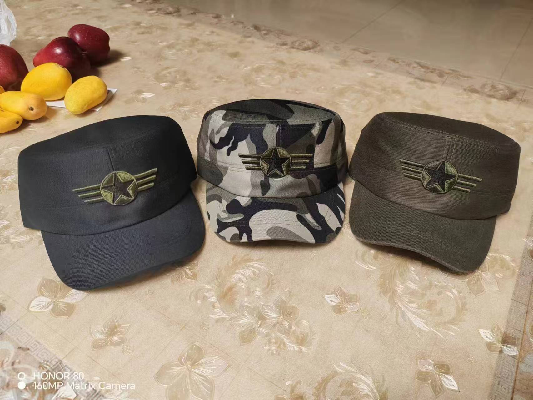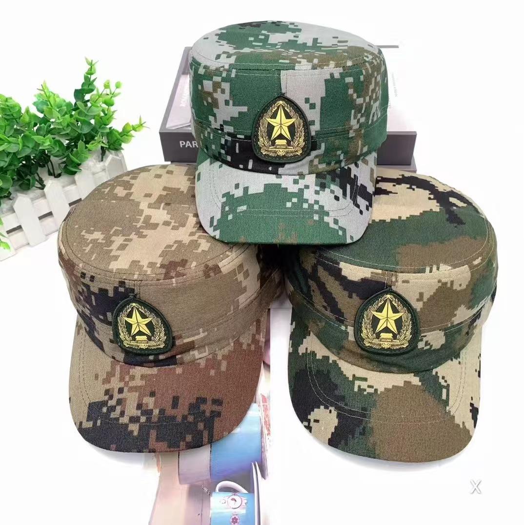 Gorra Plana de Volumen para Correr de Primavera y Otoño Camuflaje Bordada Estrella de Cinco Puntas Gorra para Hombre Algodón Puro Comercio Exterior Venta al por Mayor Volumen